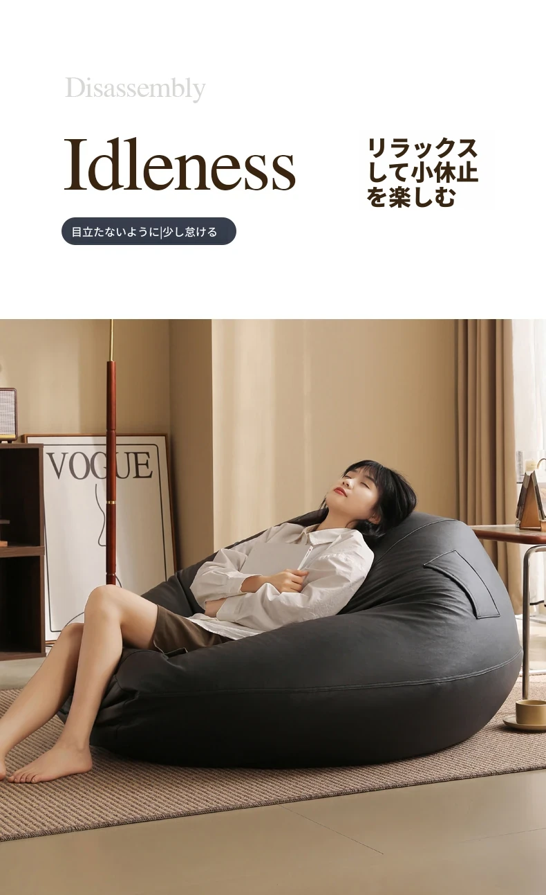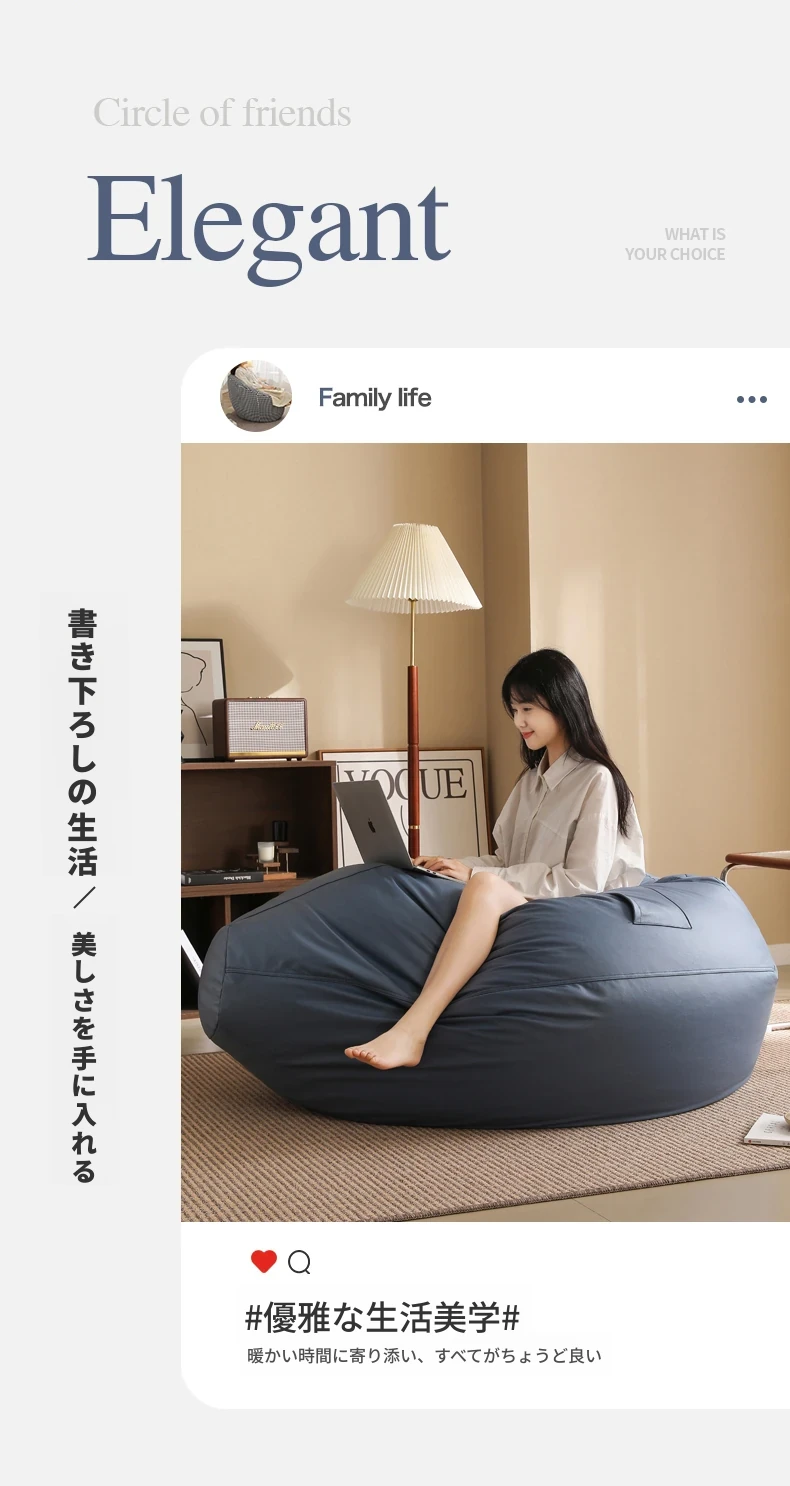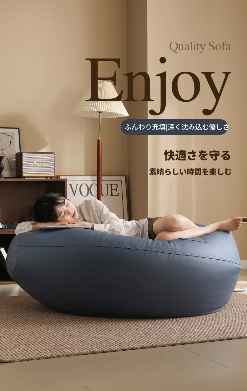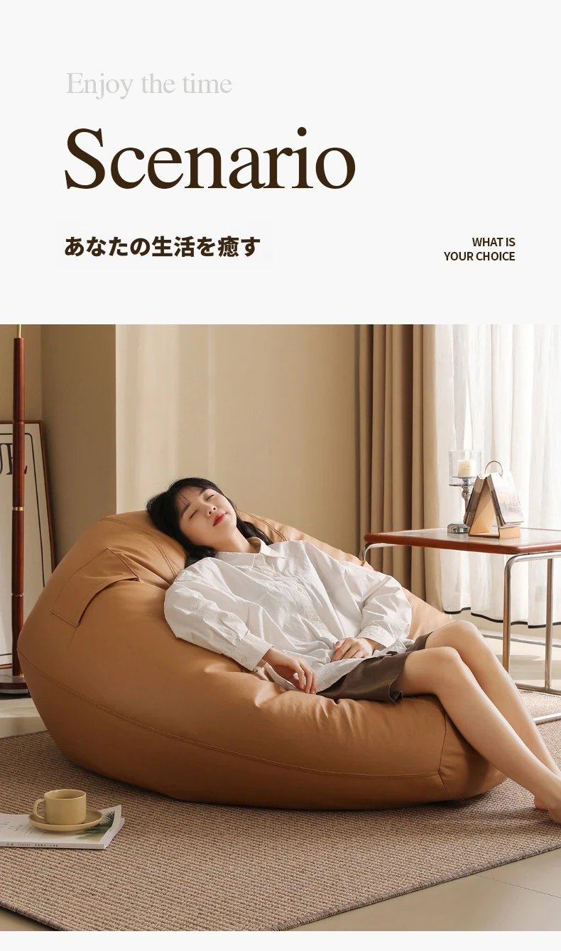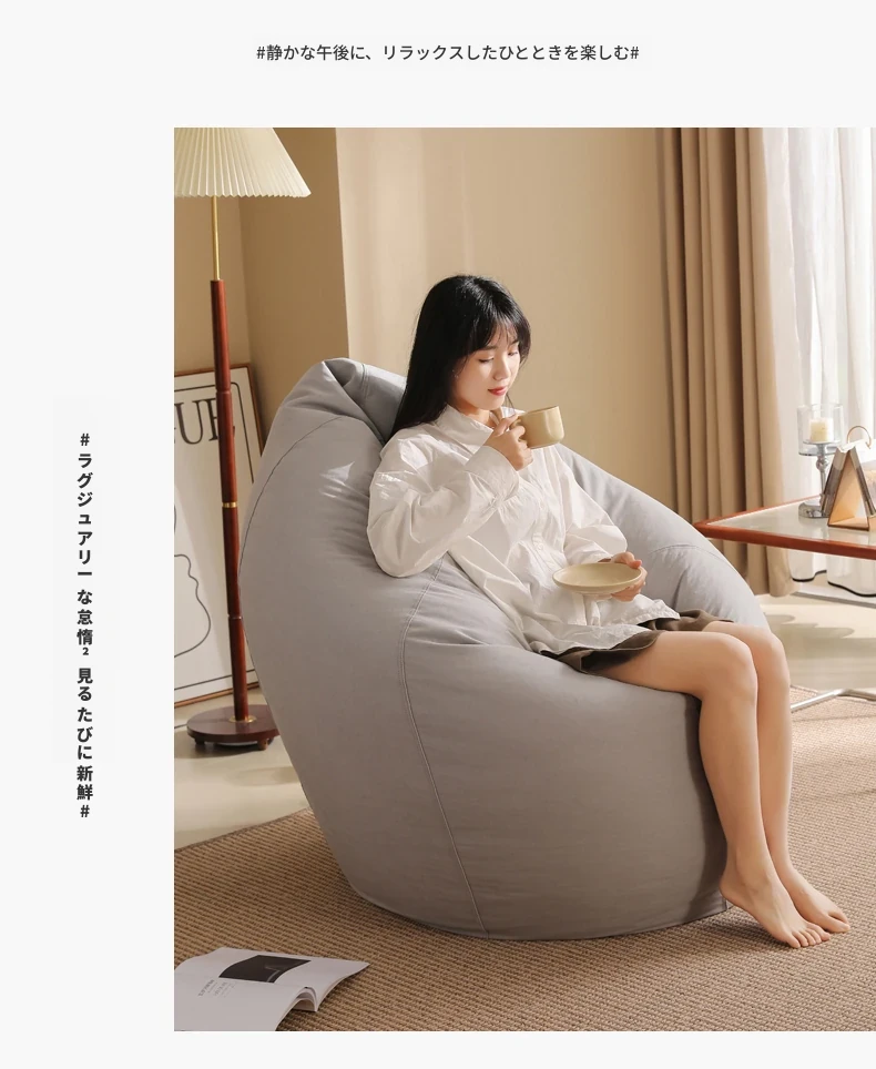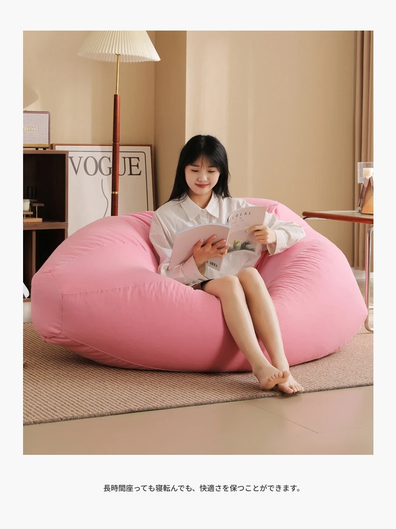 特大サイズのリラックス豆袋ソファ!寝転んでリラックス、タタミスタイルのインテリアにぴったり。インスタ風のおしゃれなデザインで、寝室やバルコニー、リビングに最適な読書用チェア。心地よい時間をお楽しみください!