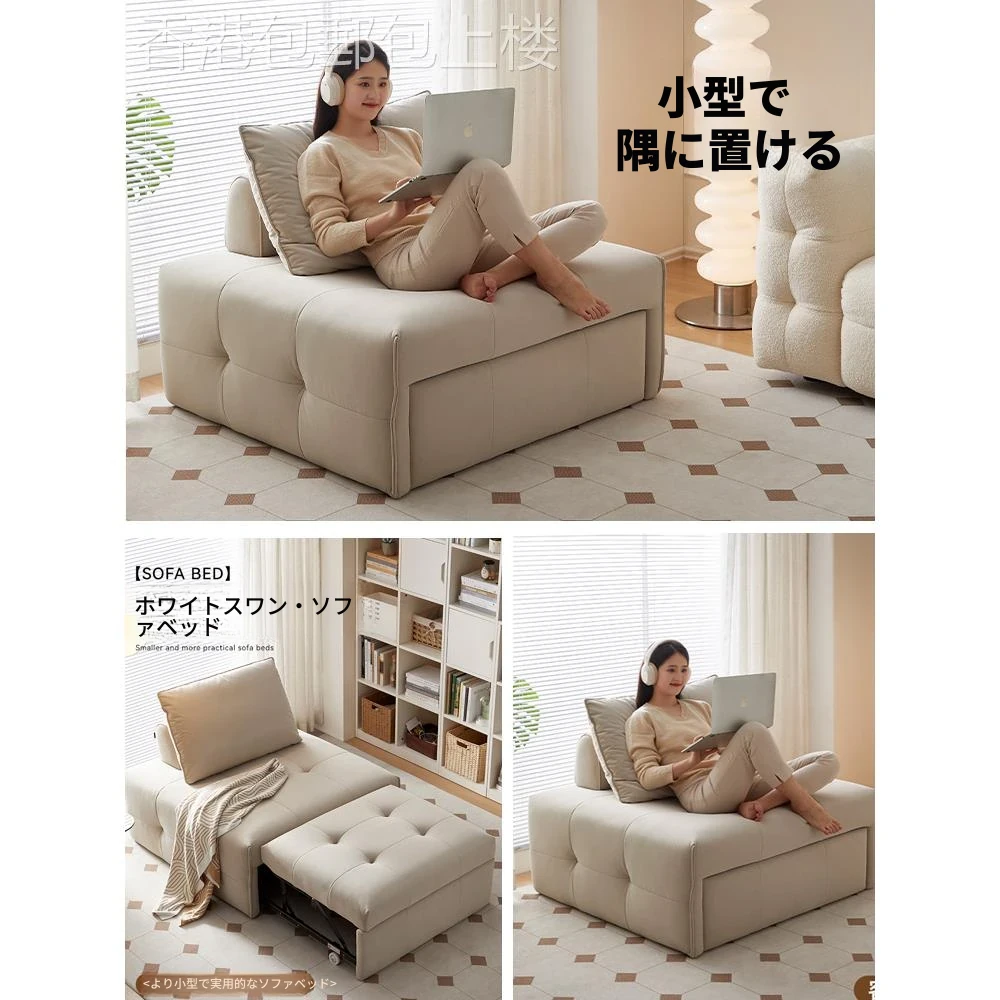 【香港送料無料】一人用ソファベッド 折りたたみ式 多機能パフクリームデザイン 小型スペースに最適 バルコニーにもぴったり!