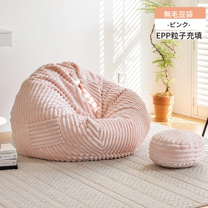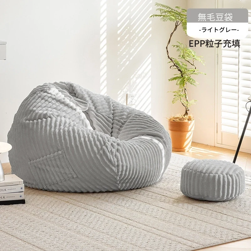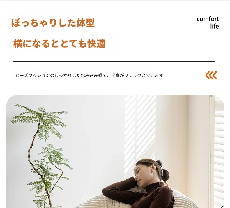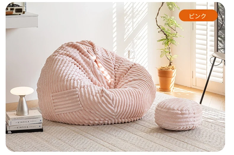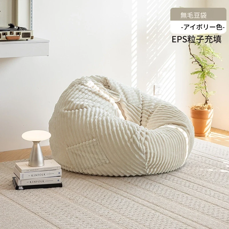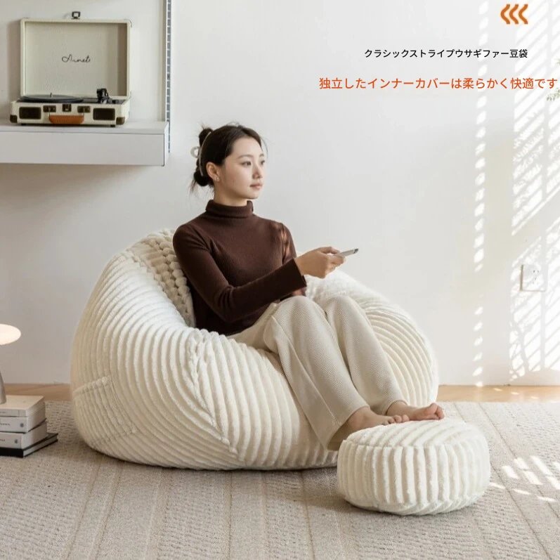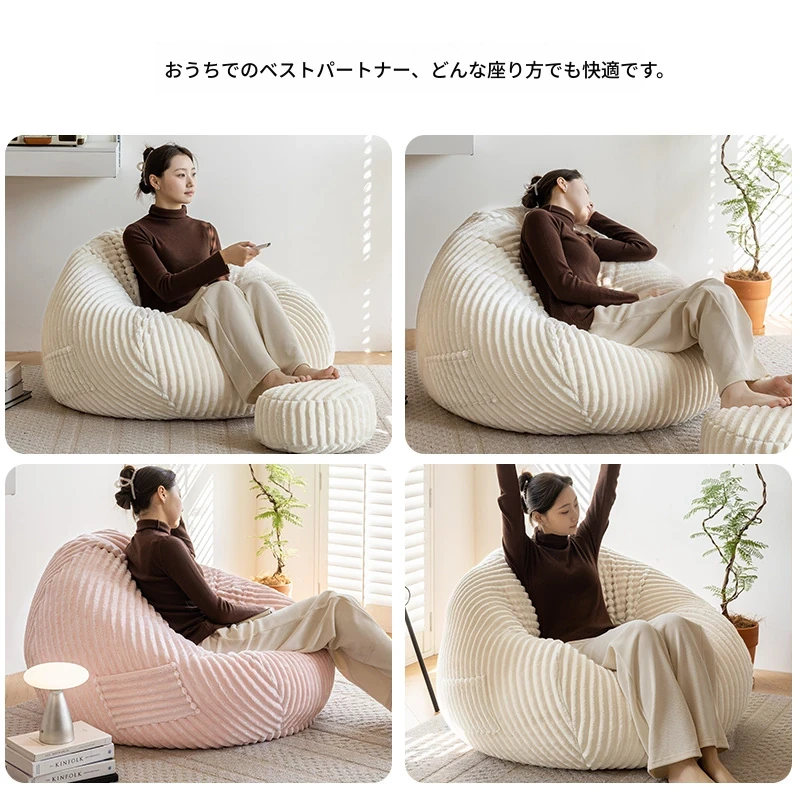 和風ウサギ毛フロッキーリラックスソファビーンバッグ - 寝転んでもOK!バルコニーや畳で使えるシンプルなデザインのリクライニングチェア。心地よいくつろぎのひと時をあなたに。