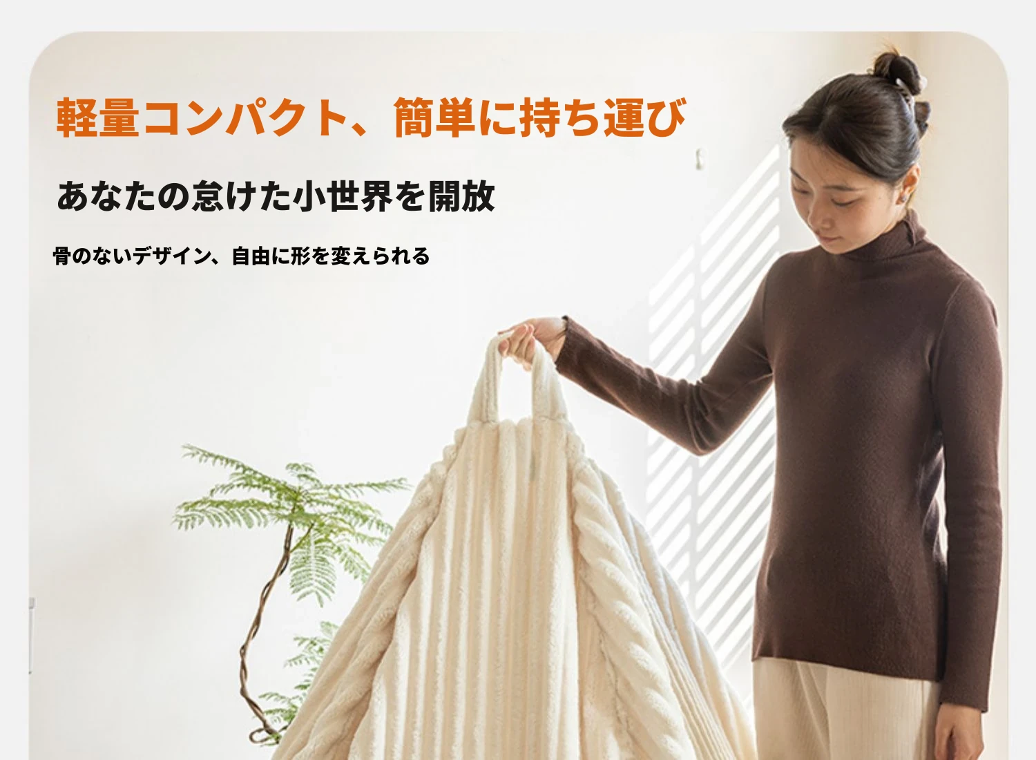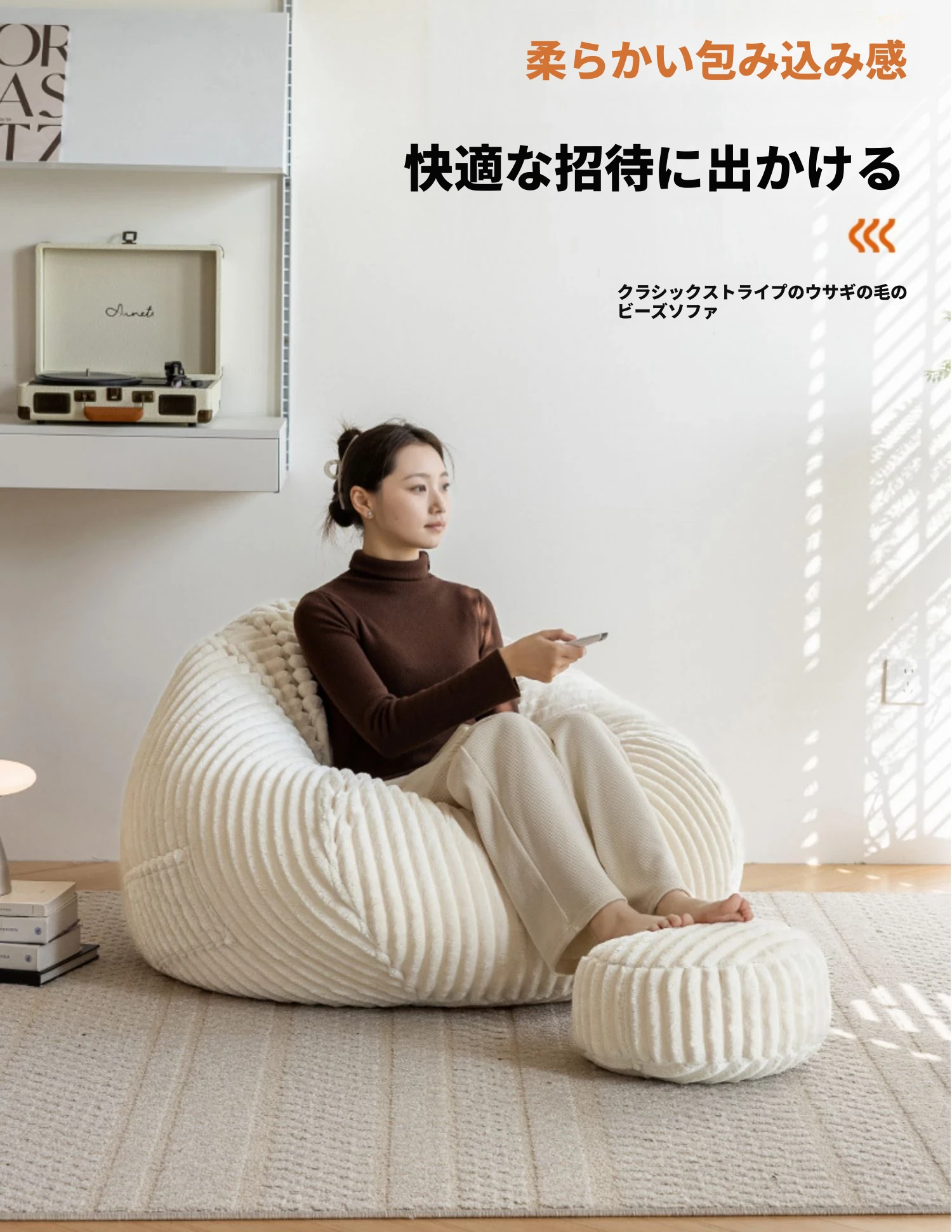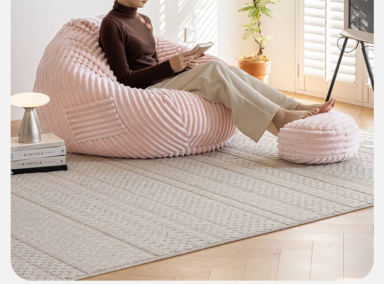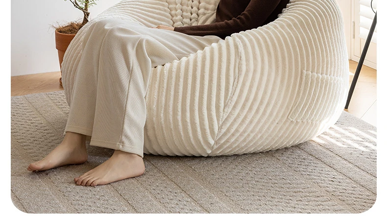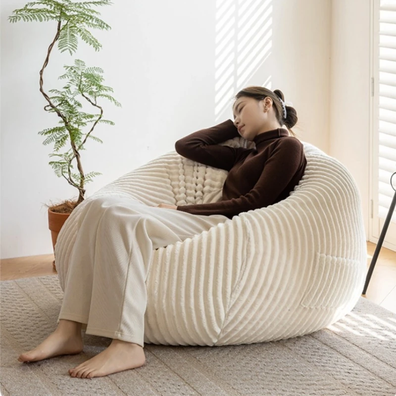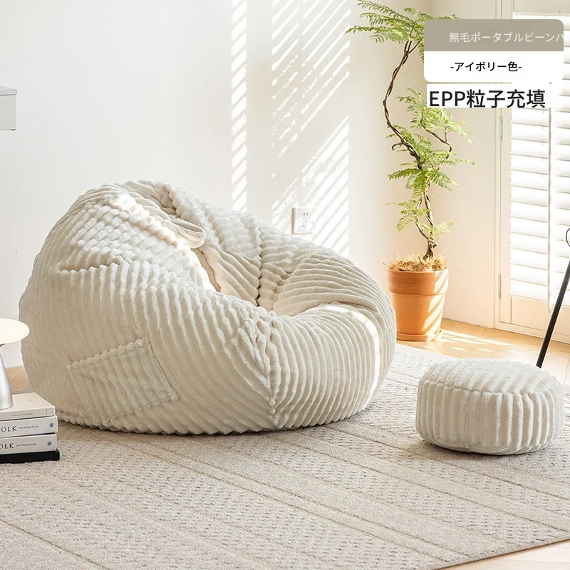 和風ウサギ毛フロッキーリラックスソファビーンバッグ - 寝転んでもOK!バルコニーや畳で使えるシンプルなデザインのリクライニングチェア。心地よいくつろぎのひと時をあなたに。