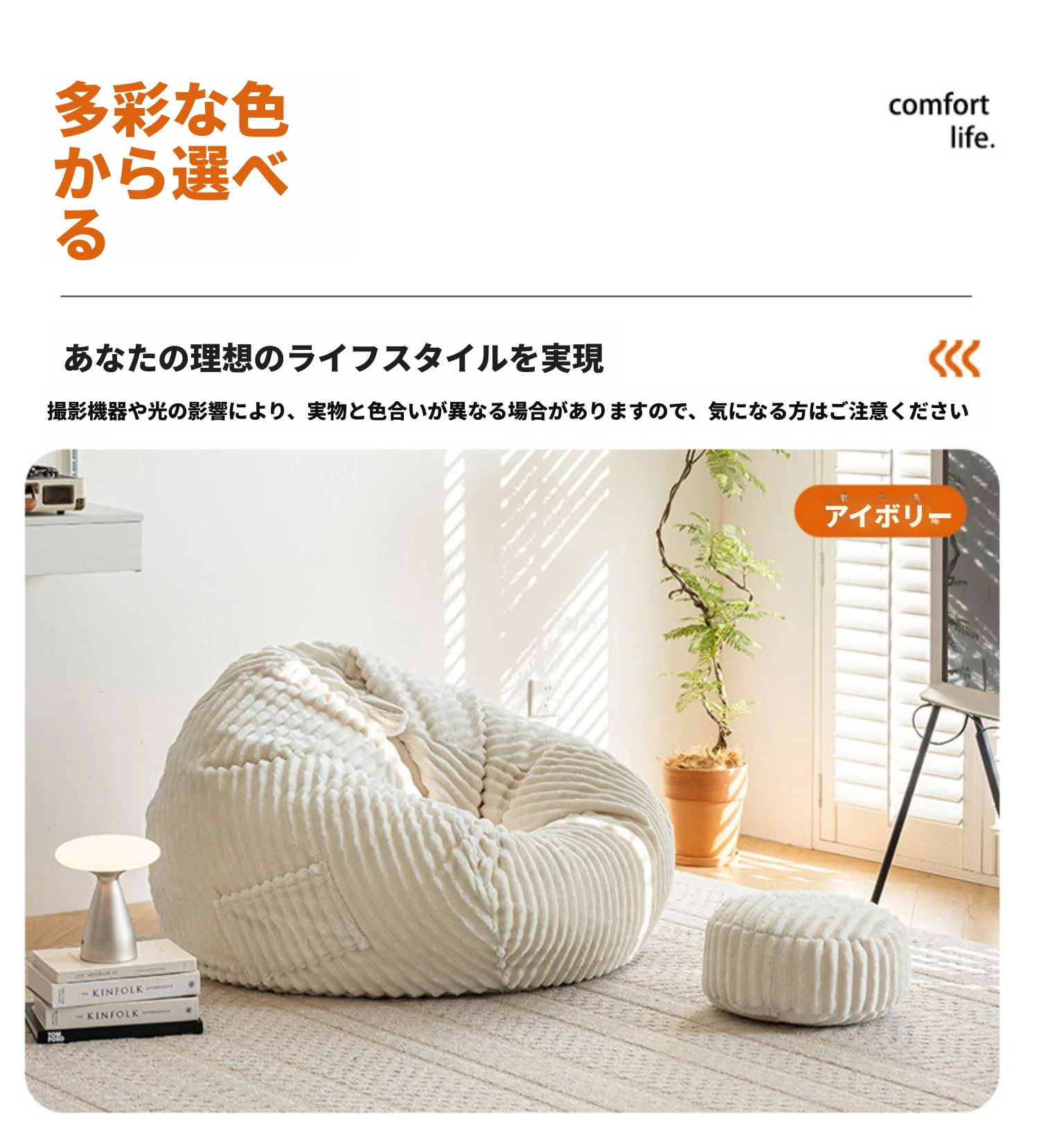 アイボリーソファ+フットスツール(アップグレードEPP粒子充填)