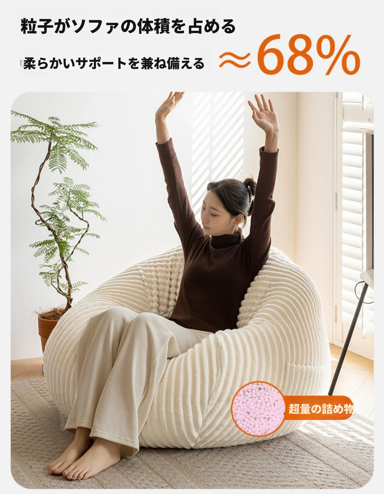 アイボリーソファ+フットスツール(EPS粒子充填)