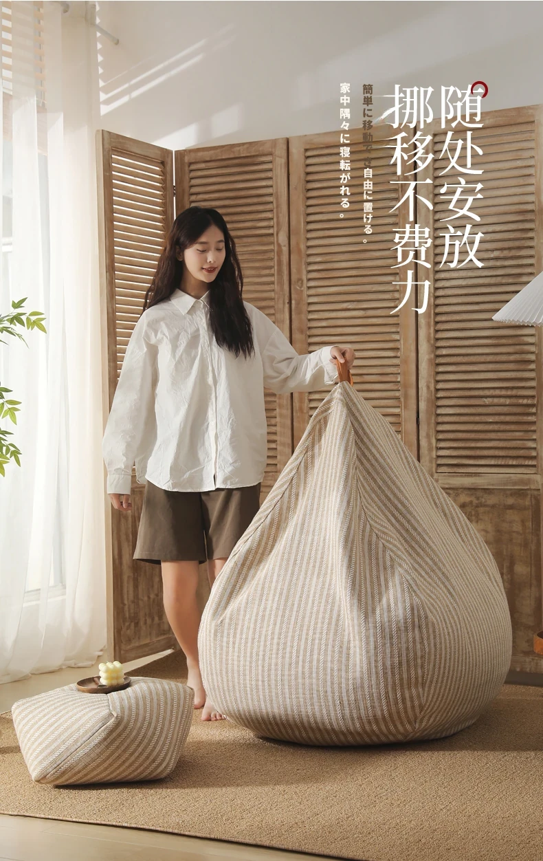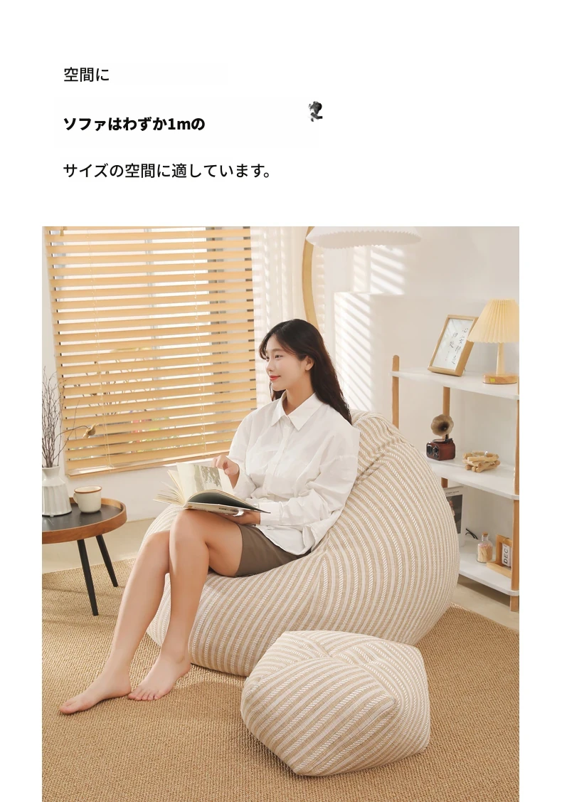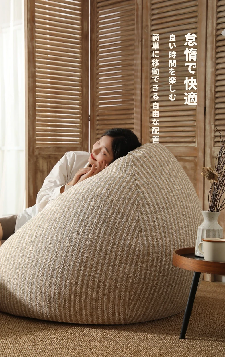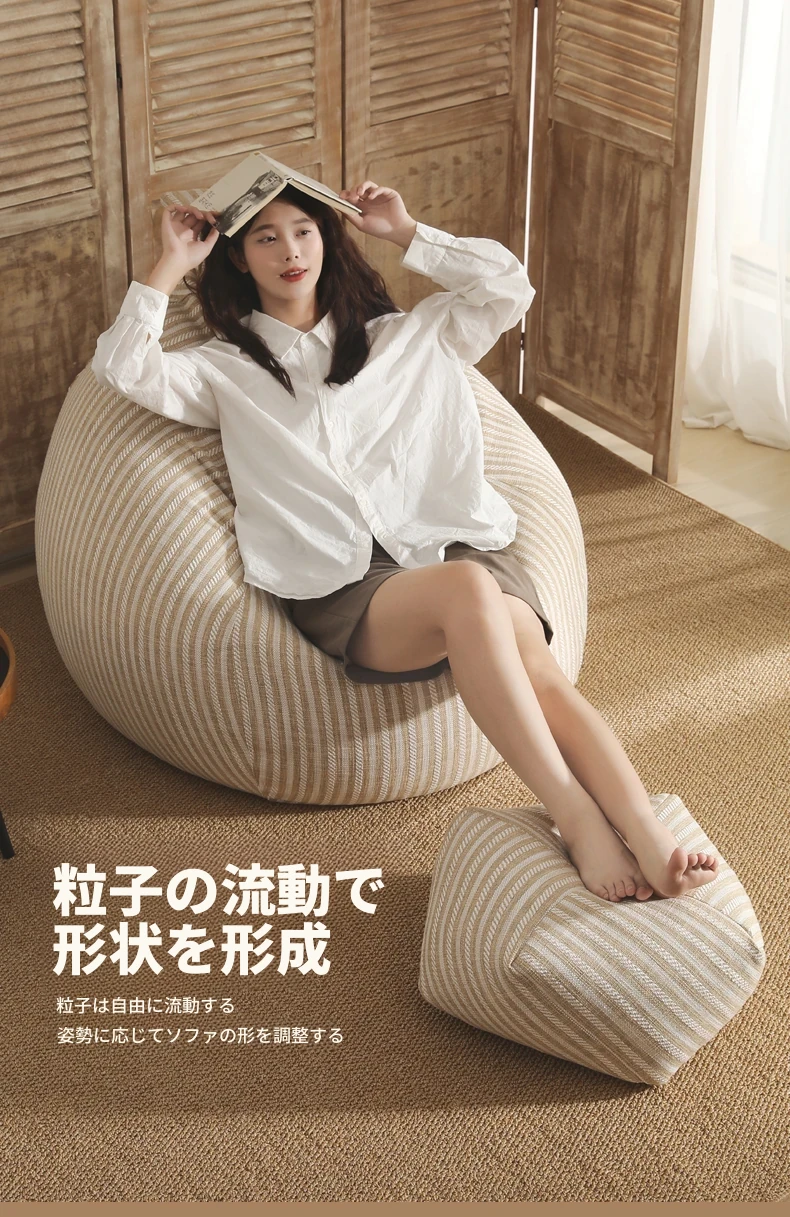 リラックスソファー豆袋クッション - 寝転がれる!寝室やバルコニーに最適なシンプルな一人掛けソファ。お家でのくつろぎタイムにぴったりの多機能アイテム!