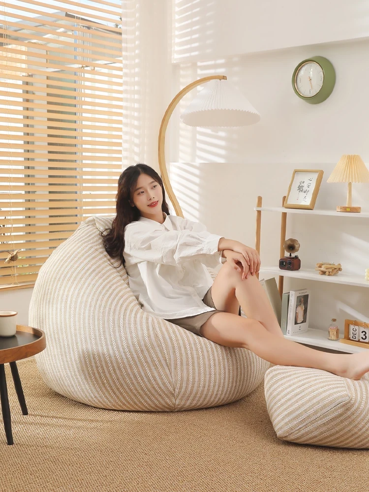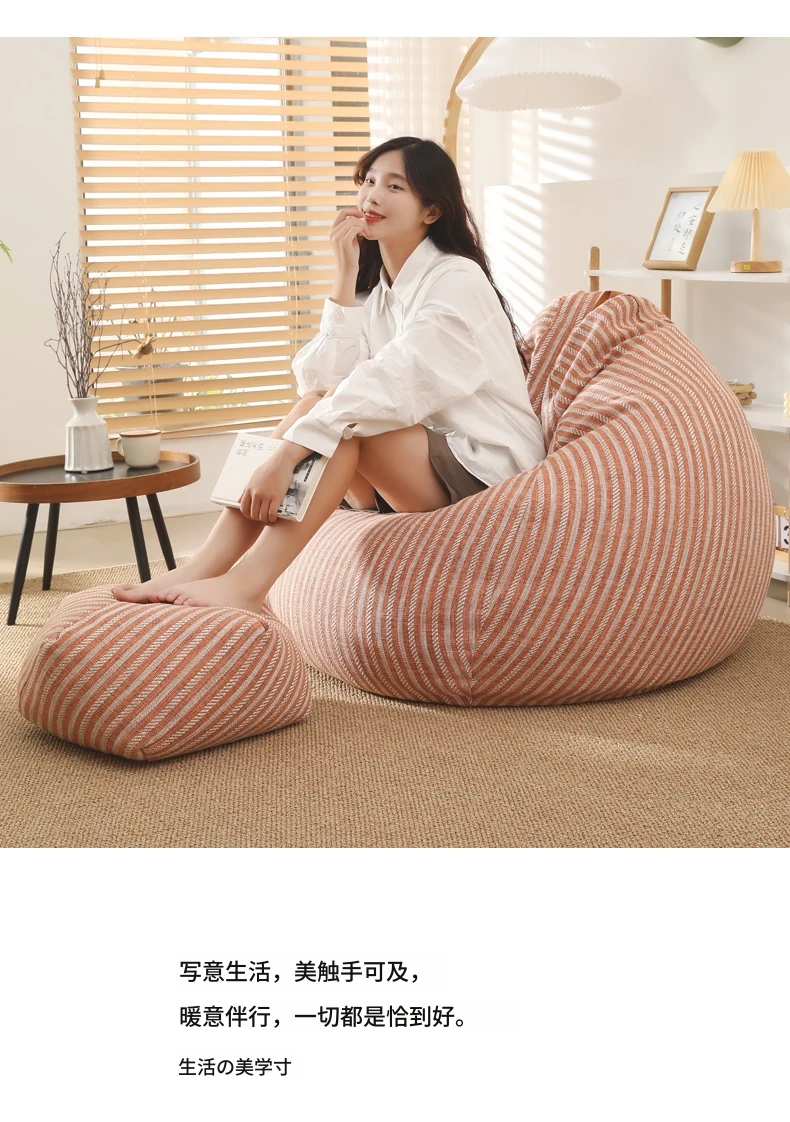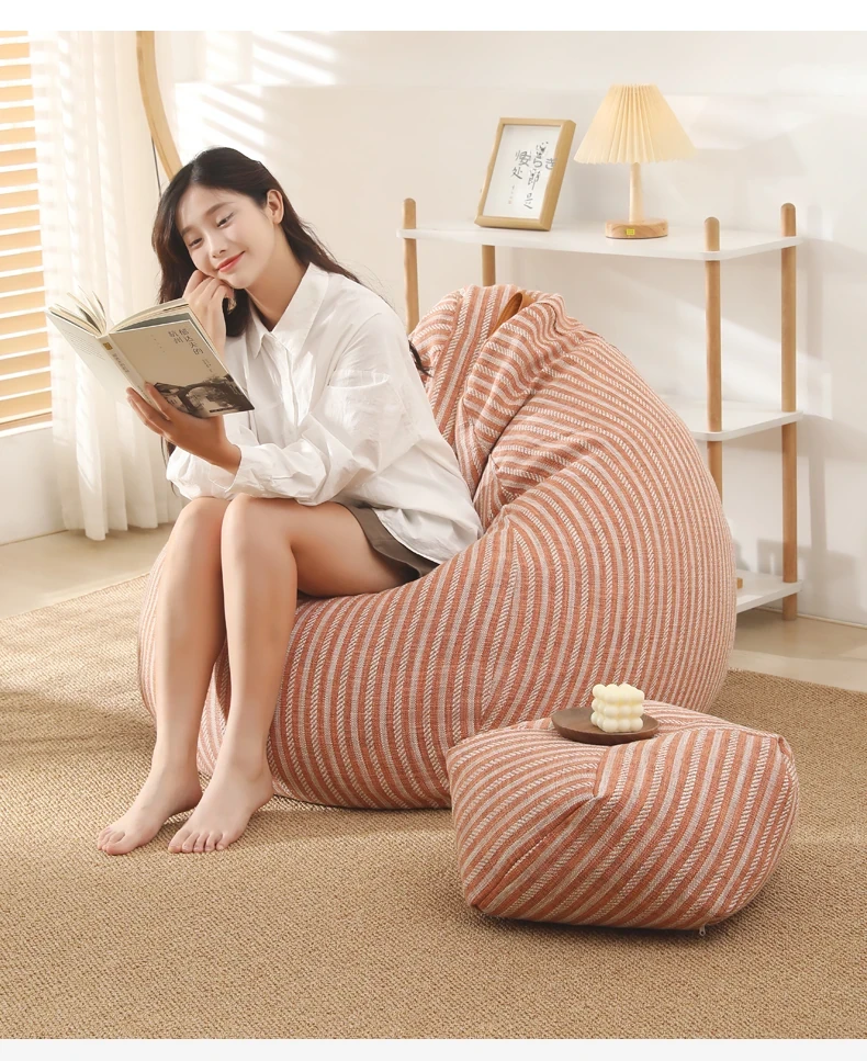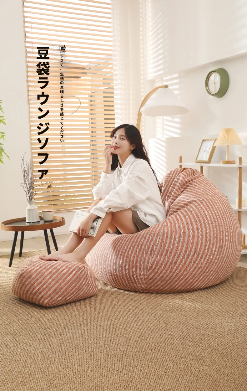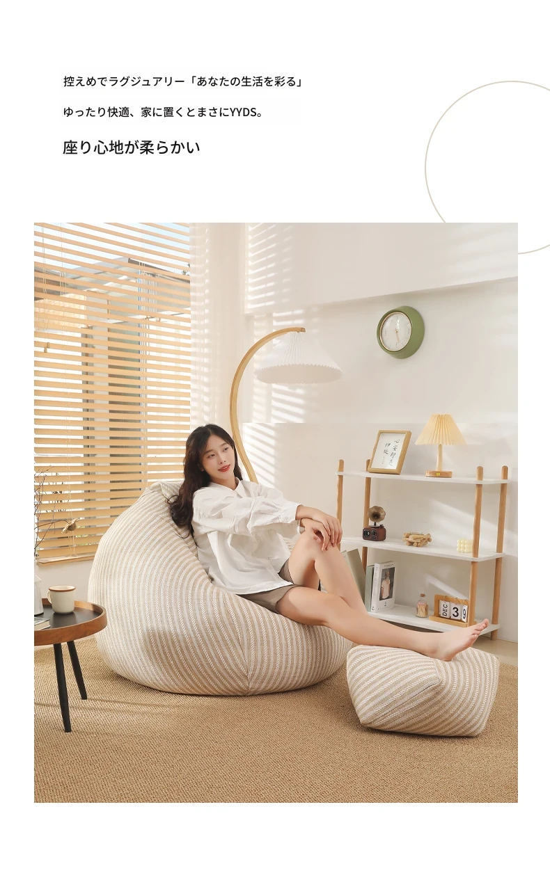 リラックスソファー豆袋クッション - 寝転がれる!寝室やバルコニーに最適なシンプルな一人掛けソファ。お家でのくつろぎタイムにぴったりの多機能アイテム!