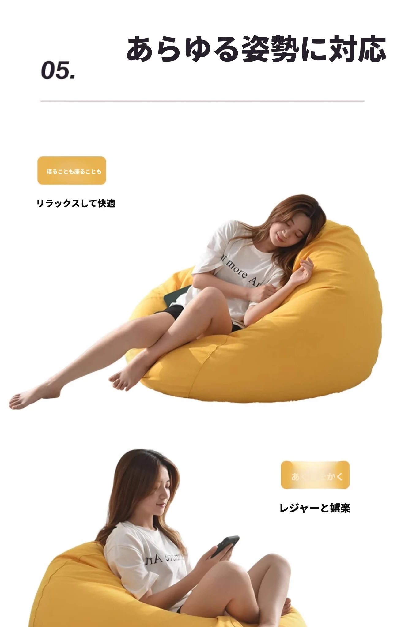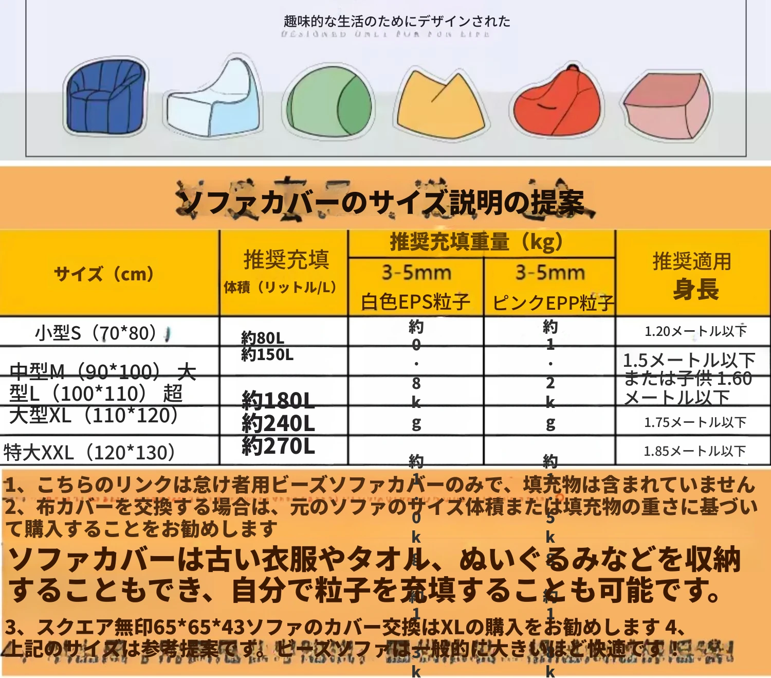 楽々リクライニングソファカバー - おしゃれな豆袋型カバー、取り外し可能で洗濯も簡単!新しいカバーでお部屋をリフレッシュし、快適なくつろぎタイムをお楽しみください。