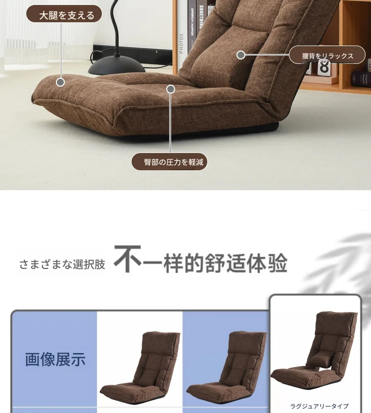 楽々リラックス!日本式畳ソファー、窓際チェアー、ベッド用背もたれ、学生寮向けの腰サポート、ゲーミングチェアとしても最適。快適さとスタイルを兼ね備えた一品!