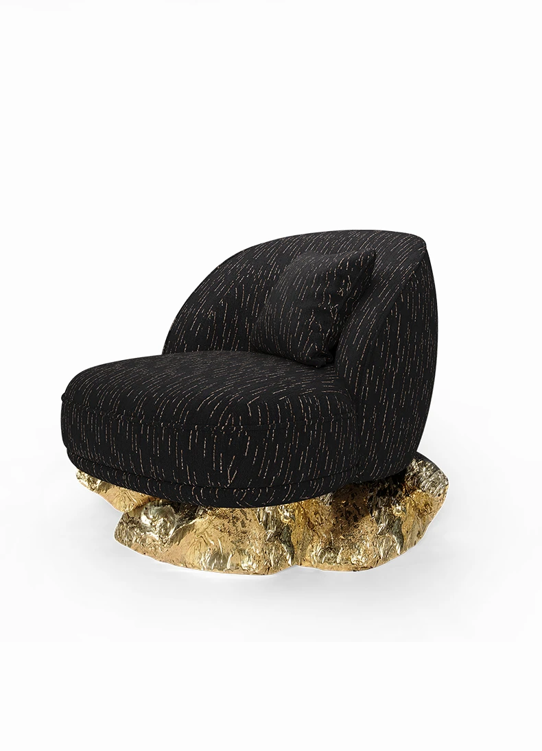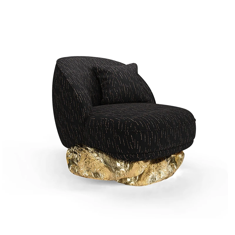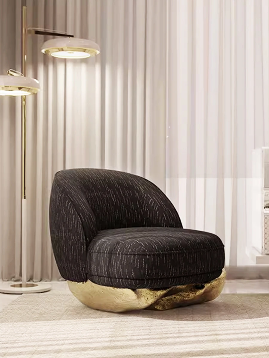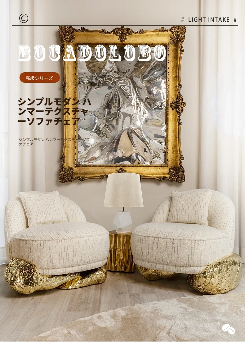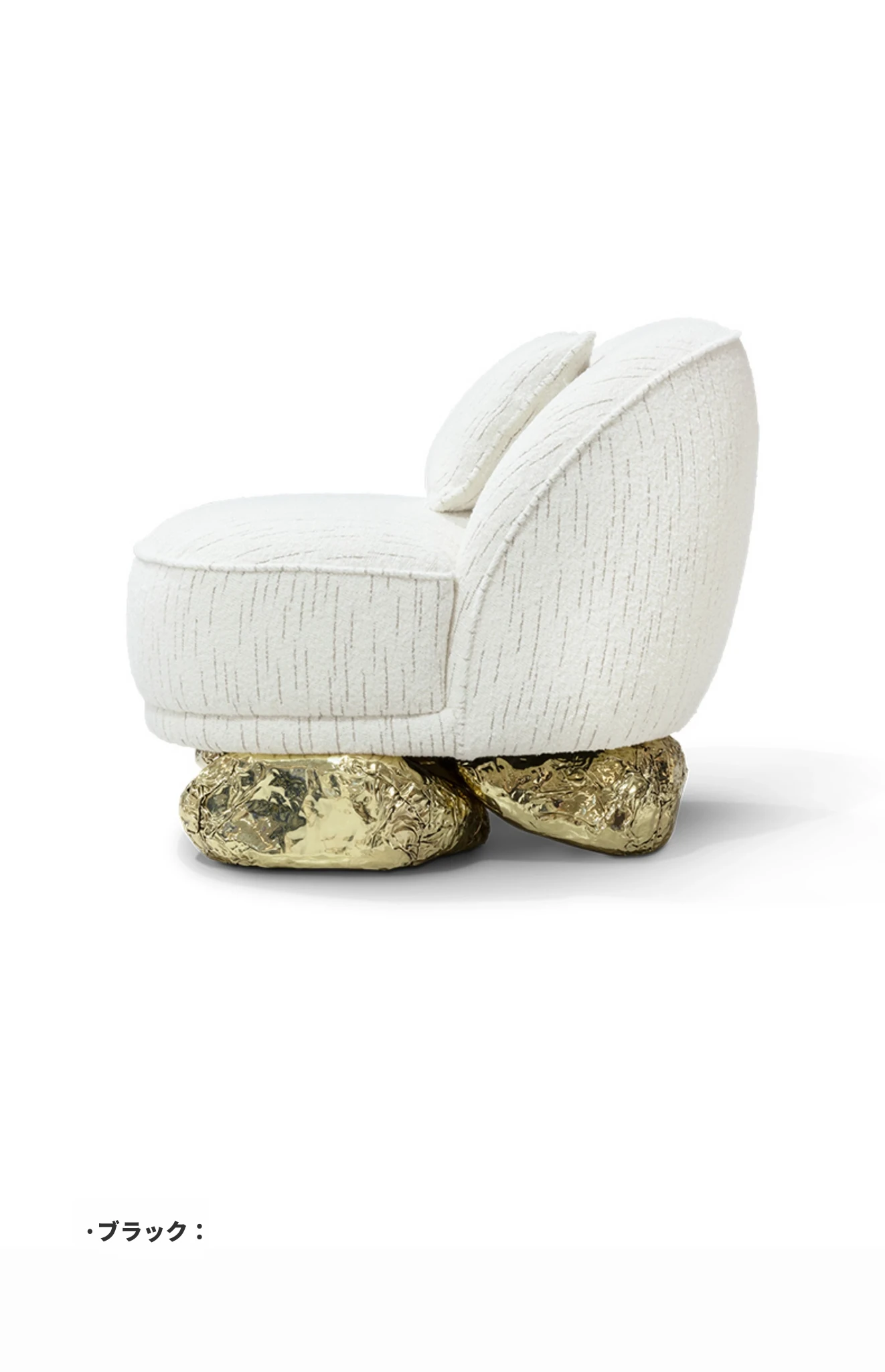 ポルトガルのリュクスなハンマーテクスチャーのアートデザインソファチェア|一人用の布製&本革|創造的で高級感溢れるユニークなリラックスチェアです!