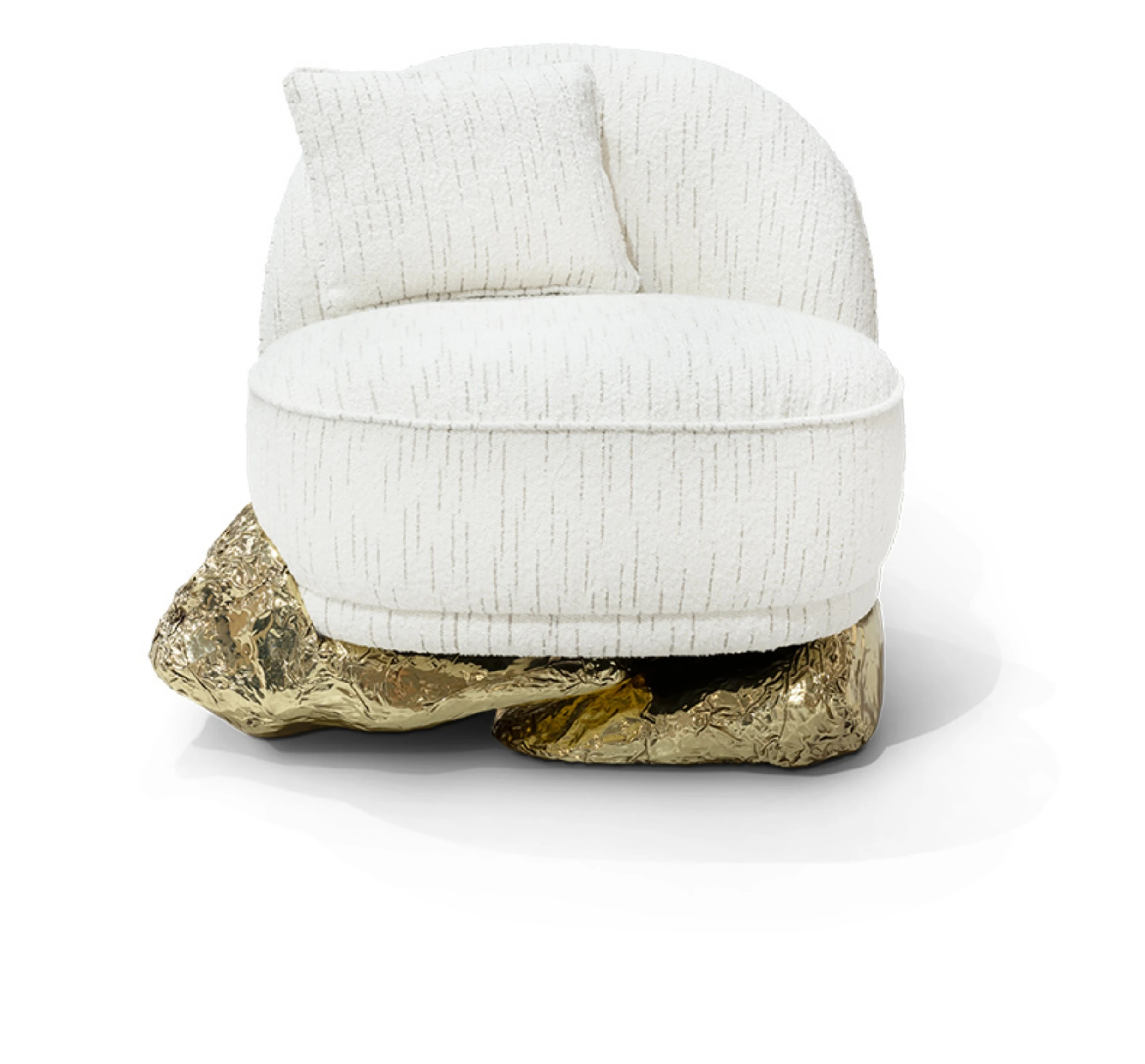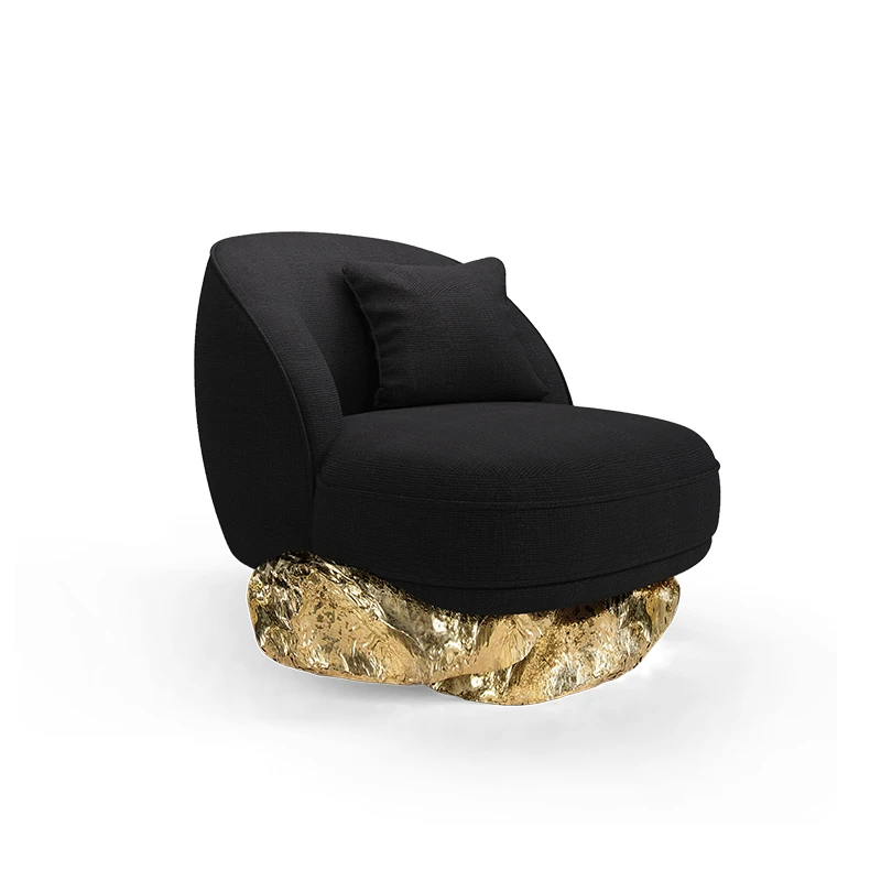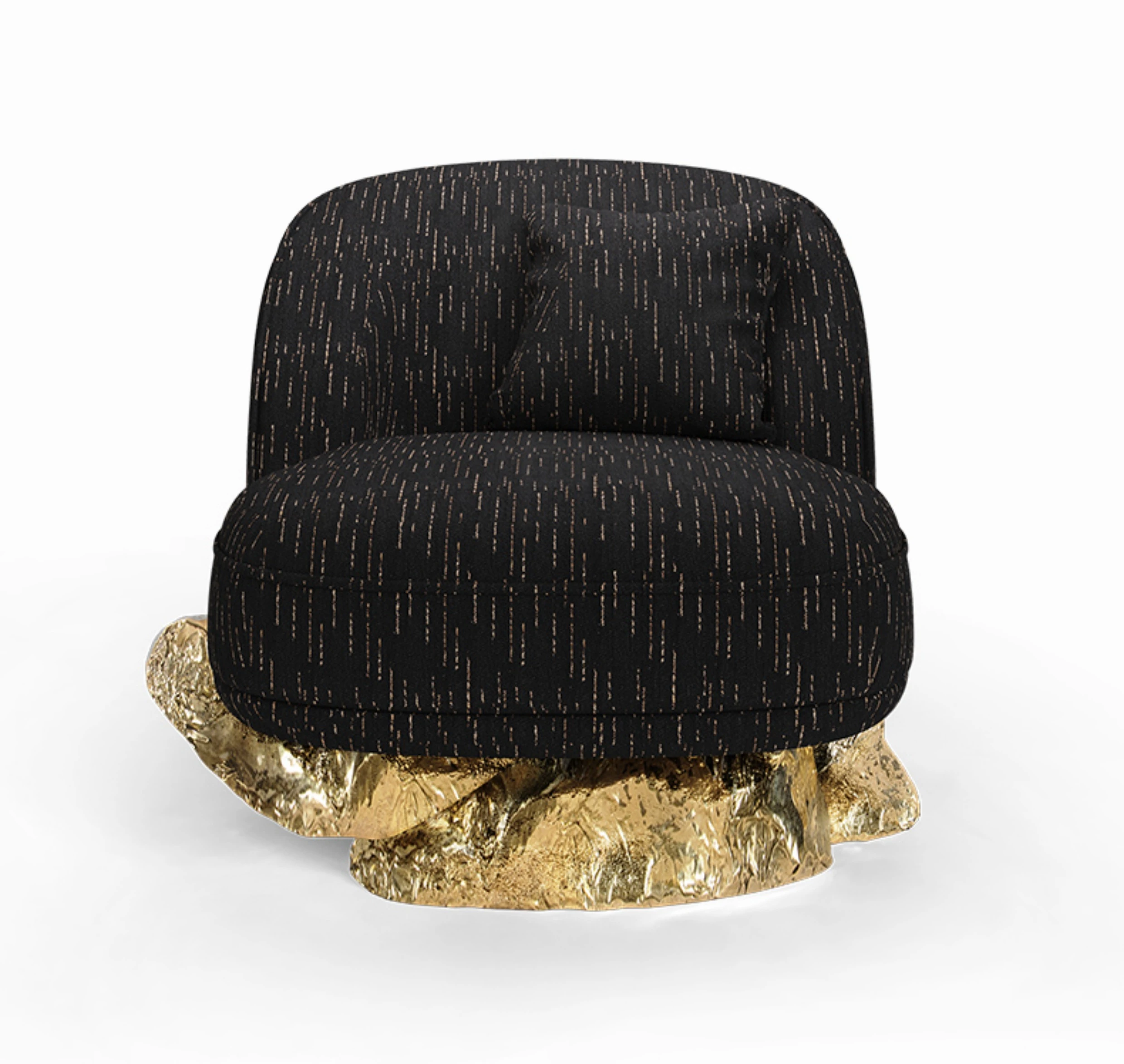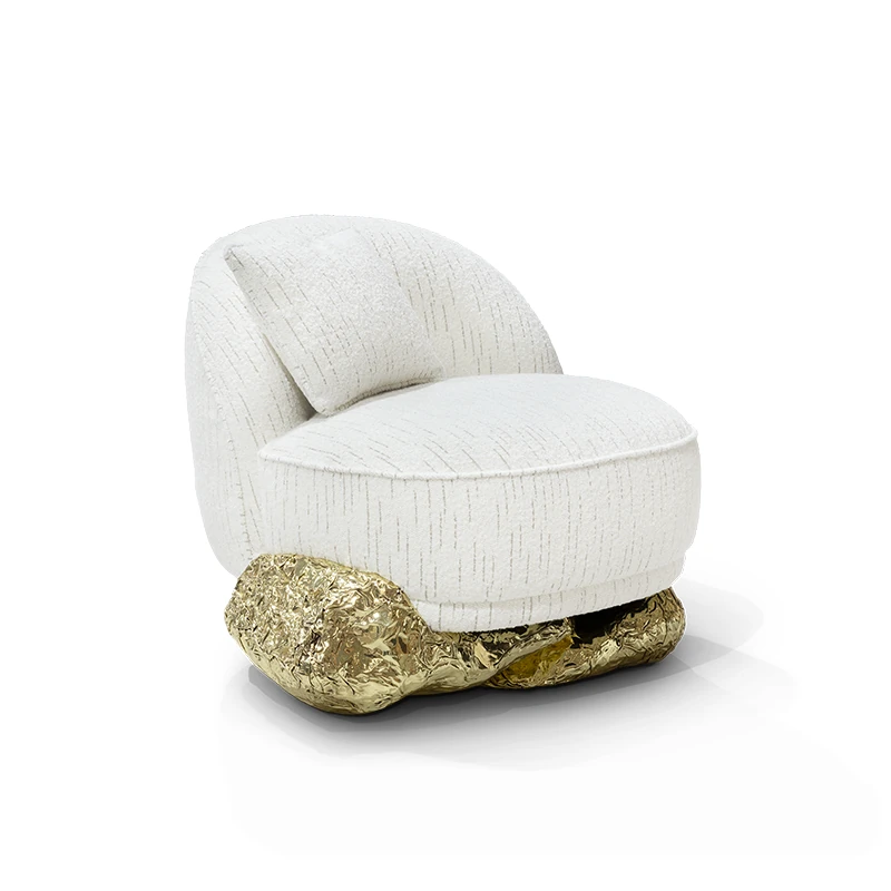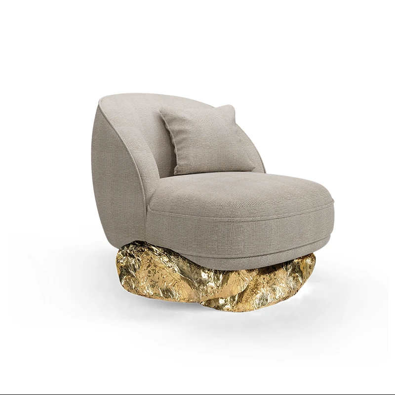 ポルトガルのリュクスなハンマーテクスチャーのアートデザインソファチェア|一人用の布製&本革|創造的で高級感溢れるユニークなリラックスチェアです!
