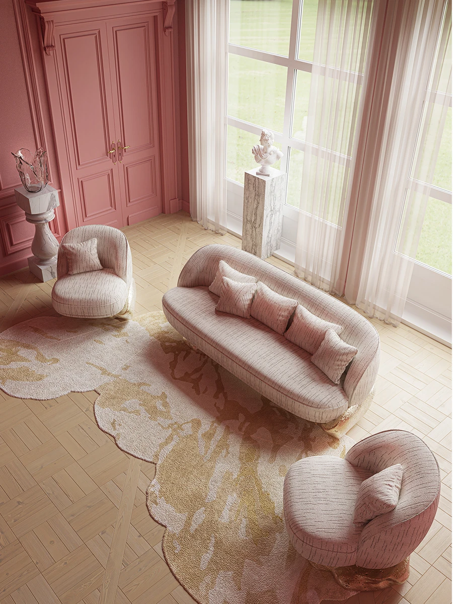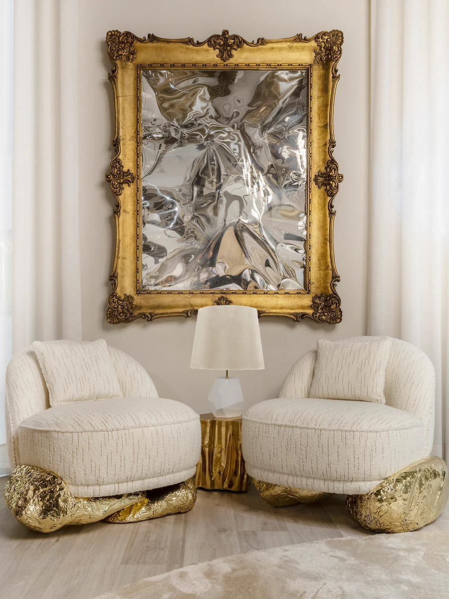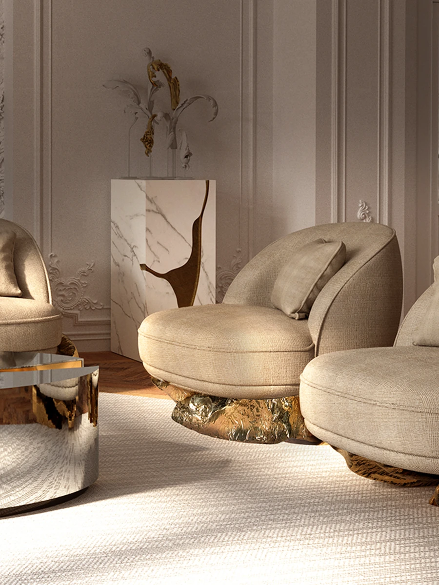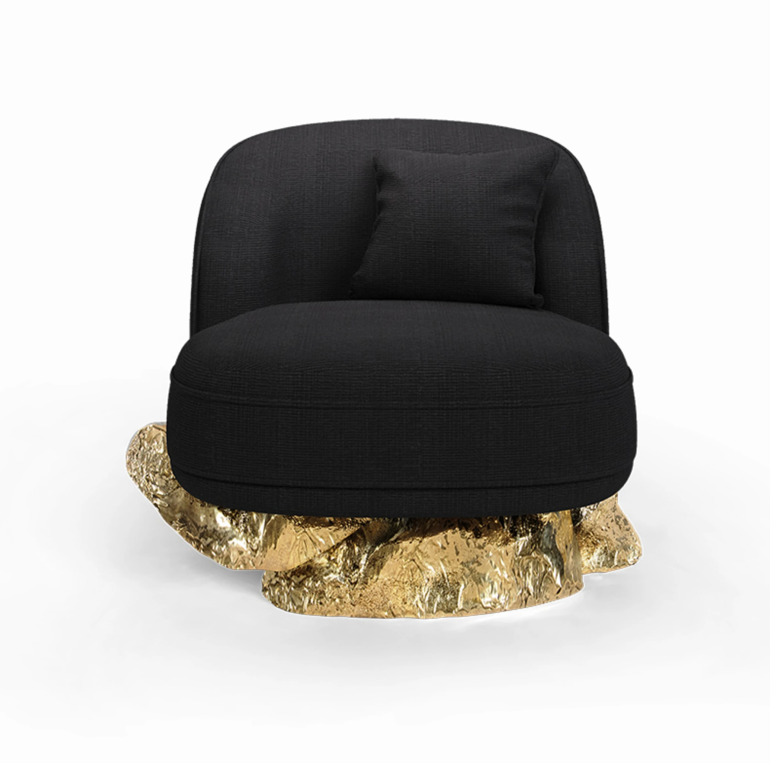 ポルトガルのリュクスなハンマーテクスチャーのアートデザインソファチェア|一人用の布製&本革|創造的で高級感溢れるユニークなリラックスチェアです!