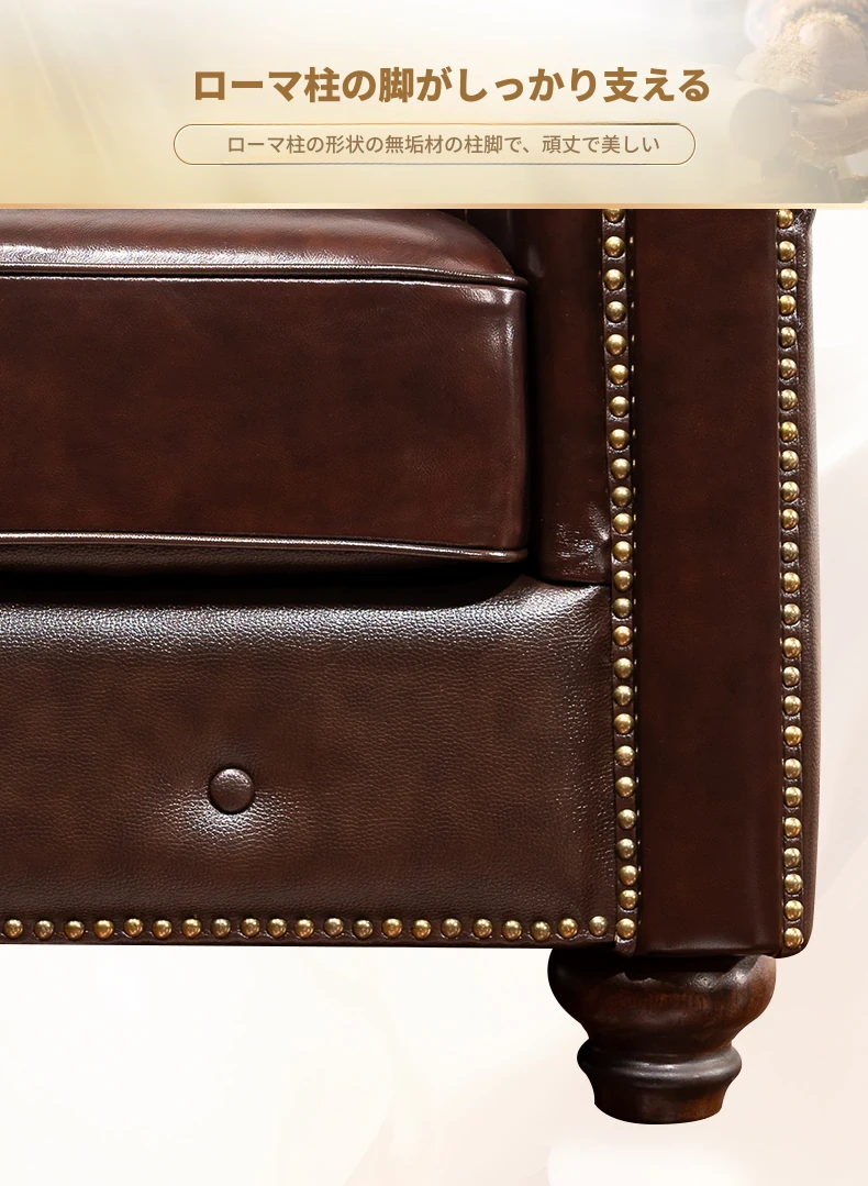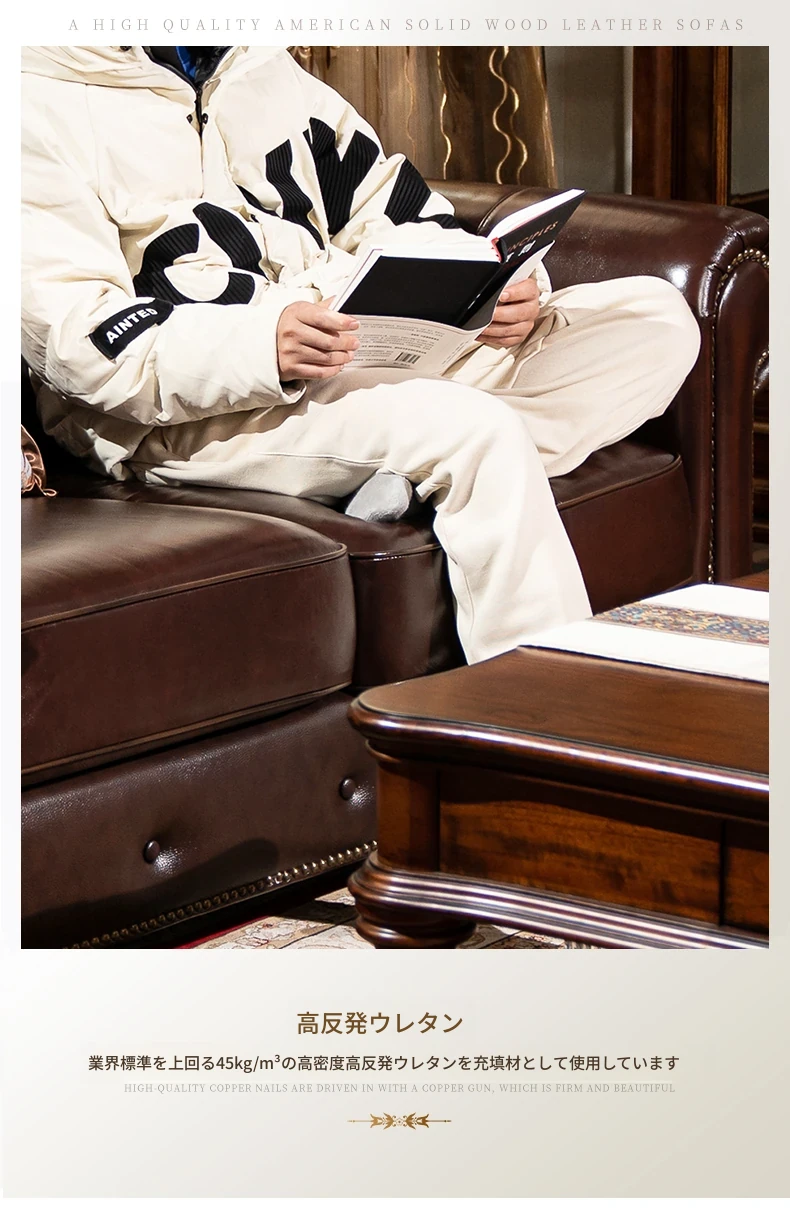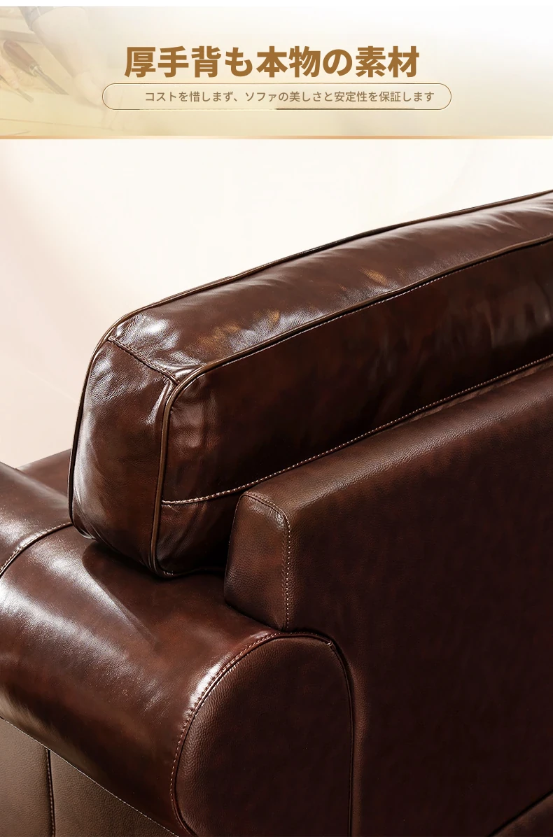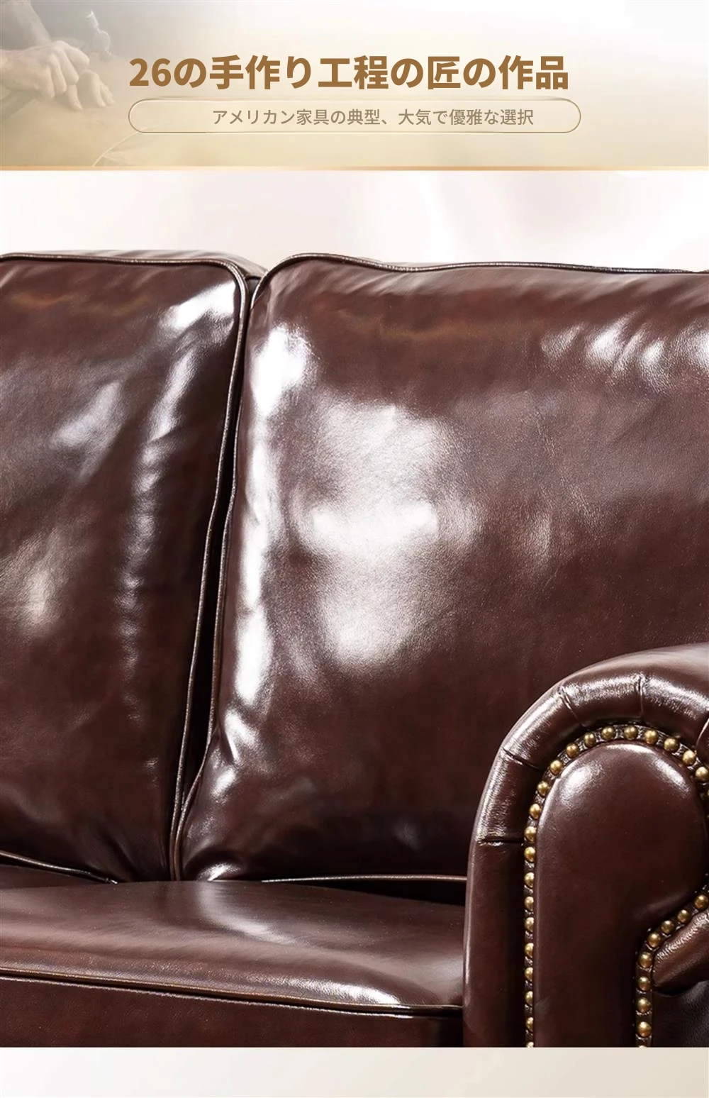 アメリカンスタイルのフルウッドソファ|広々としたリビングに最適|豪華な本革使用|上質な牛皮ソフトパッキングソファ|ヴィンテージ感漂うデザインで、お部屋を格上げ!