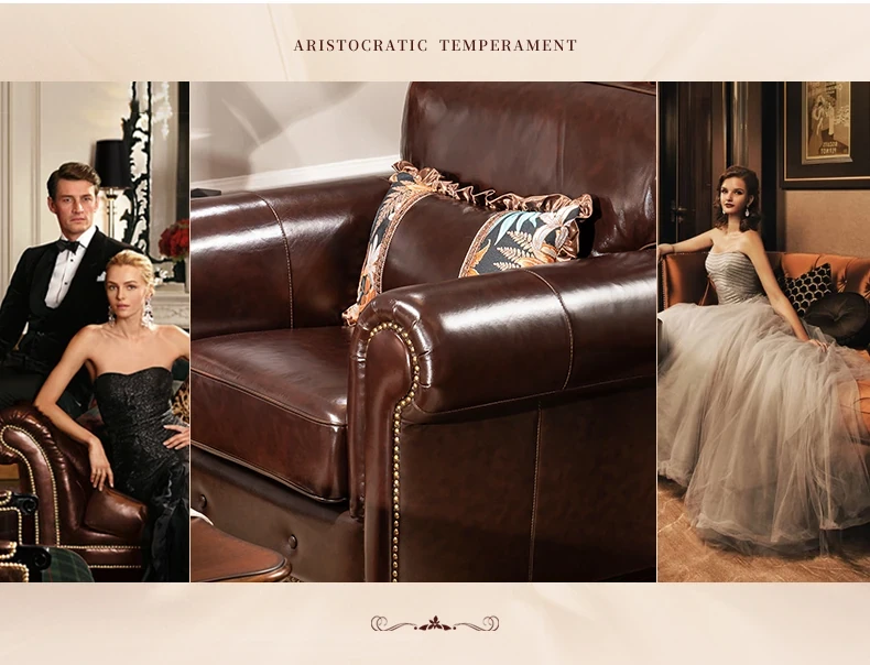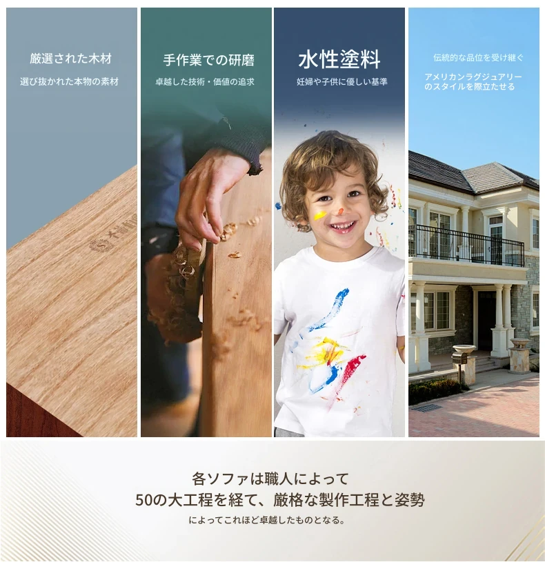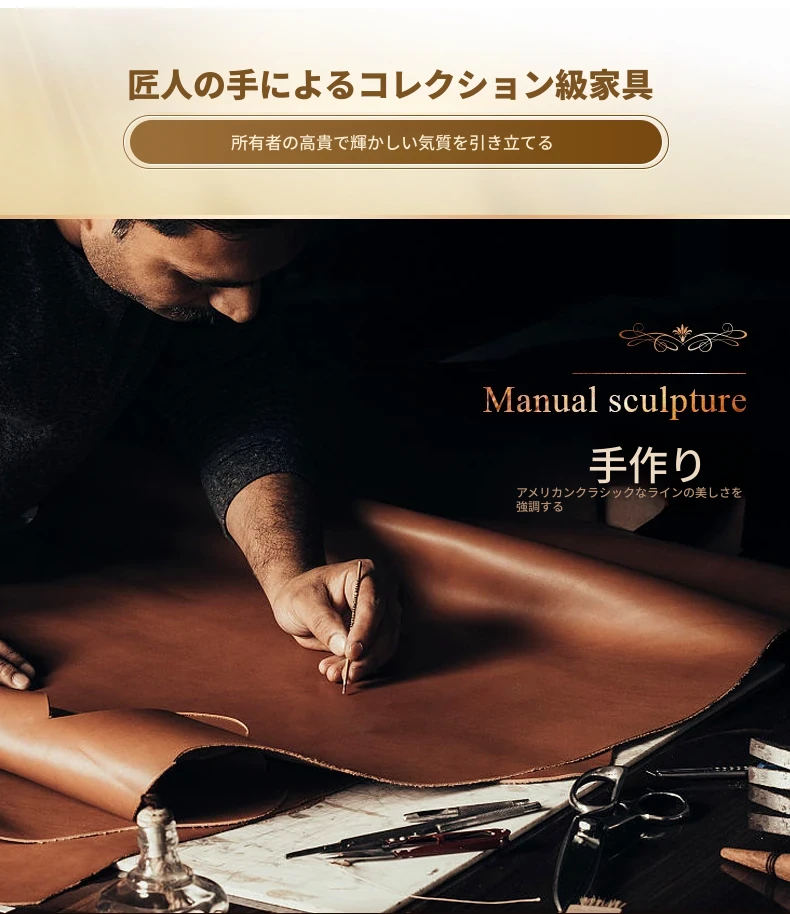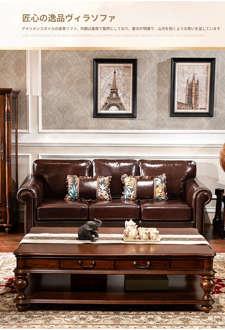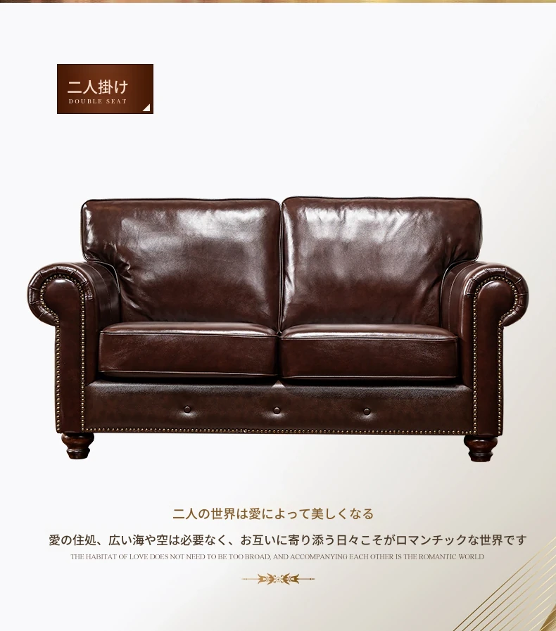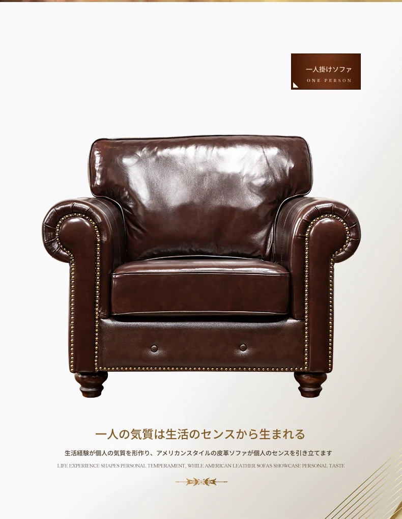 アメリカンスタイルのフルウッドソファ|広々としたリビングに最適|豪華な本革使用|上質な牛皮ソフトパッキングソファ|ヴィンテージ感漂うデザインで、お部屋を格上げ!