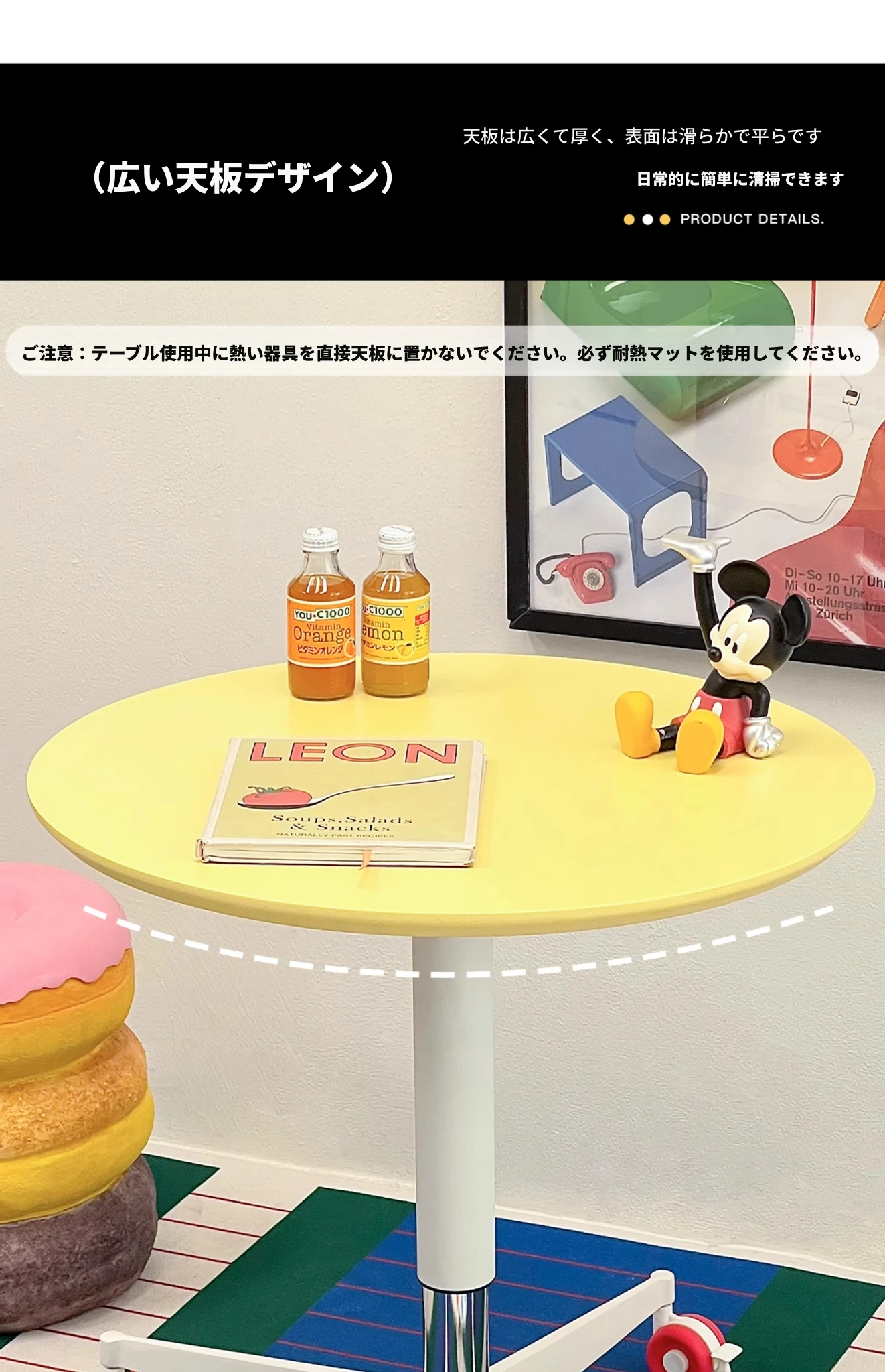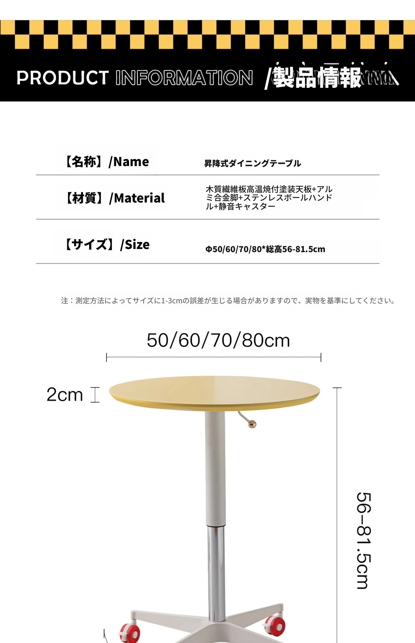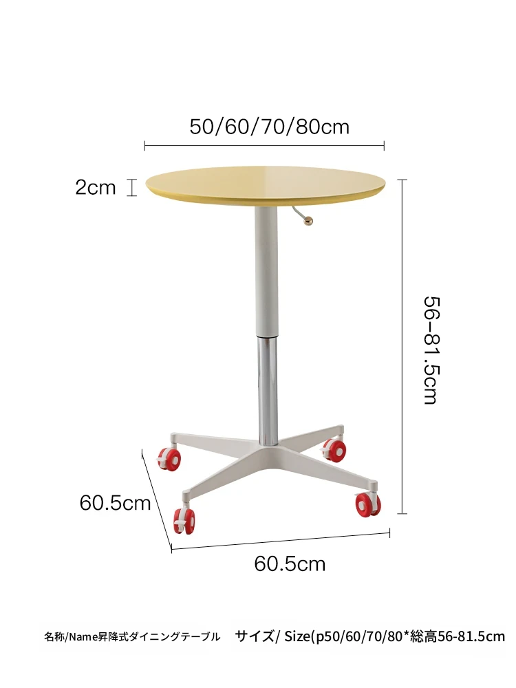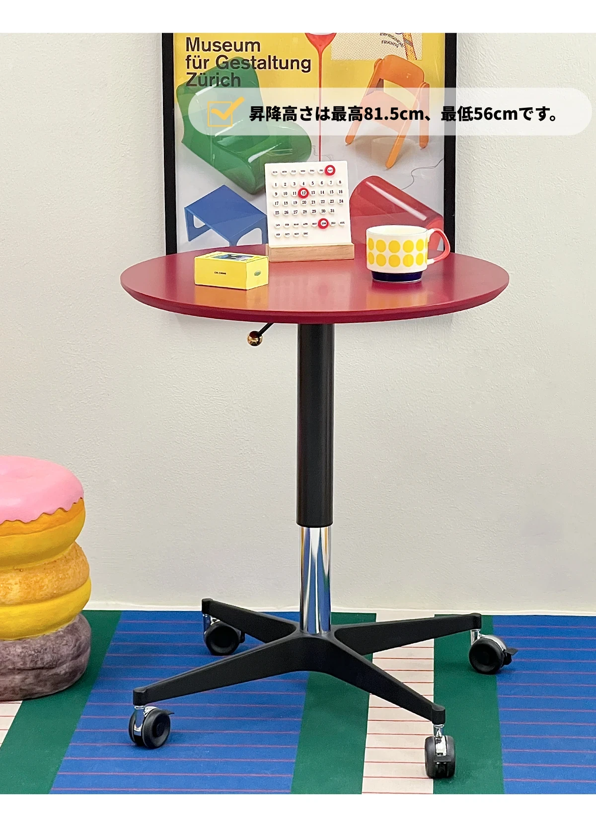 「シンプルでスタイリッシュな昇降式ダイニングテーブル - 小型住宅やバルコニーに最適!クリエイティブな移動可能な丸テーブルで、リラックスしたひとときをお楽しみください。」