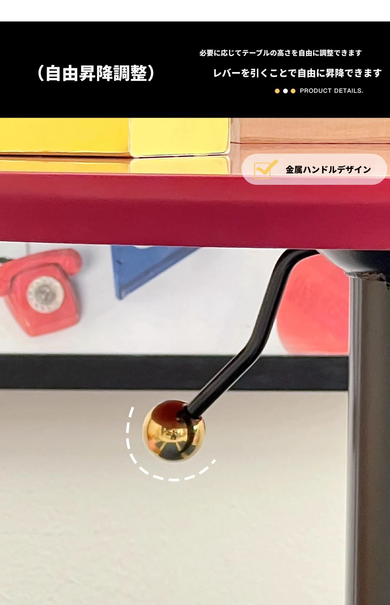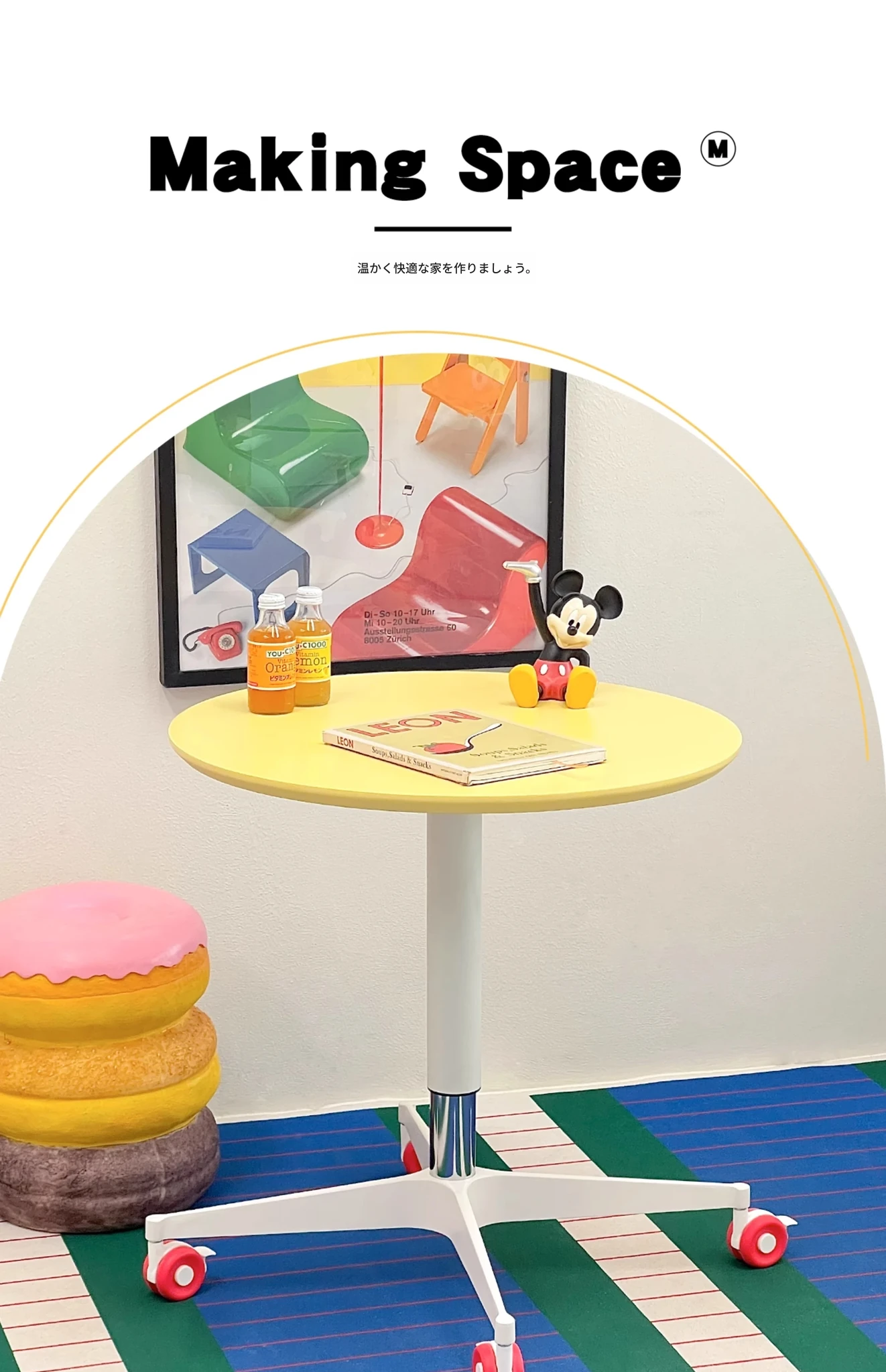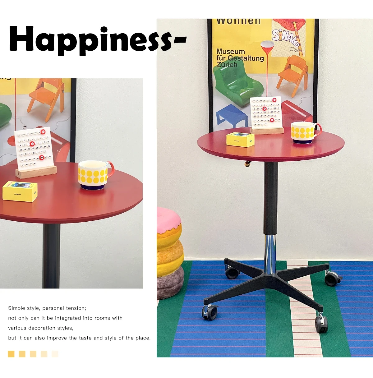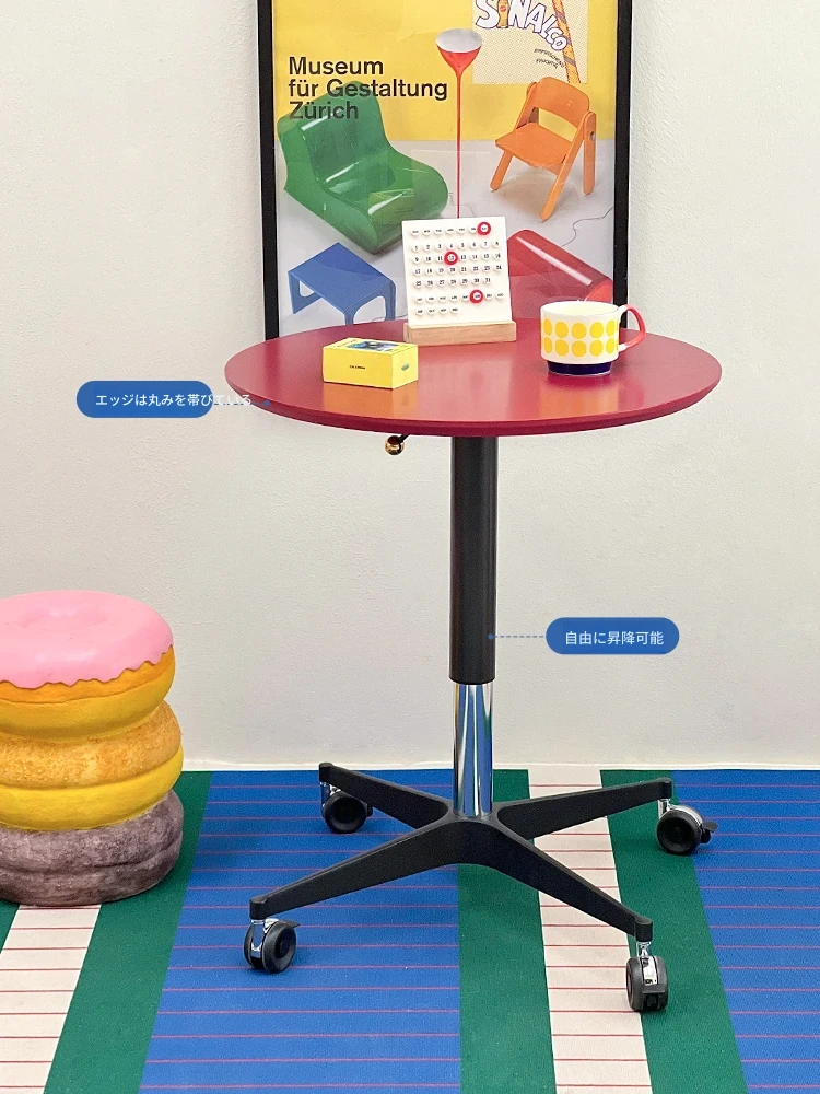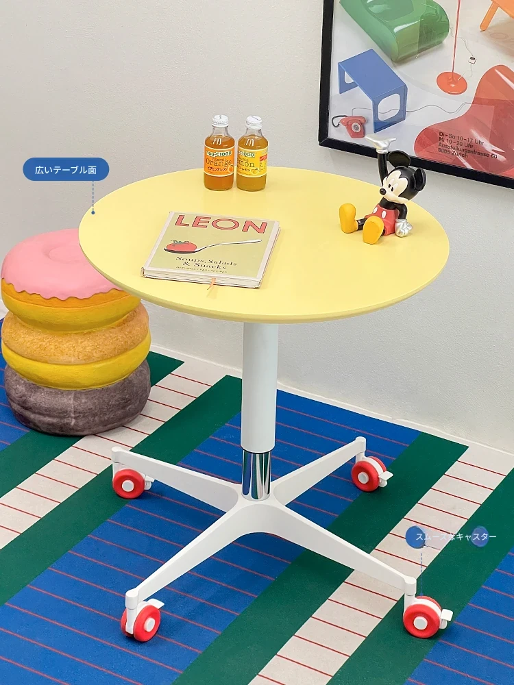 「シンプルでスタイリッシュな昇降式ダイニングテーブル - 小型住宅やバルコニーに最適!クリエイティブな移動可能な丸テーブルで、リラックスしたひとときをお楽しみください。」