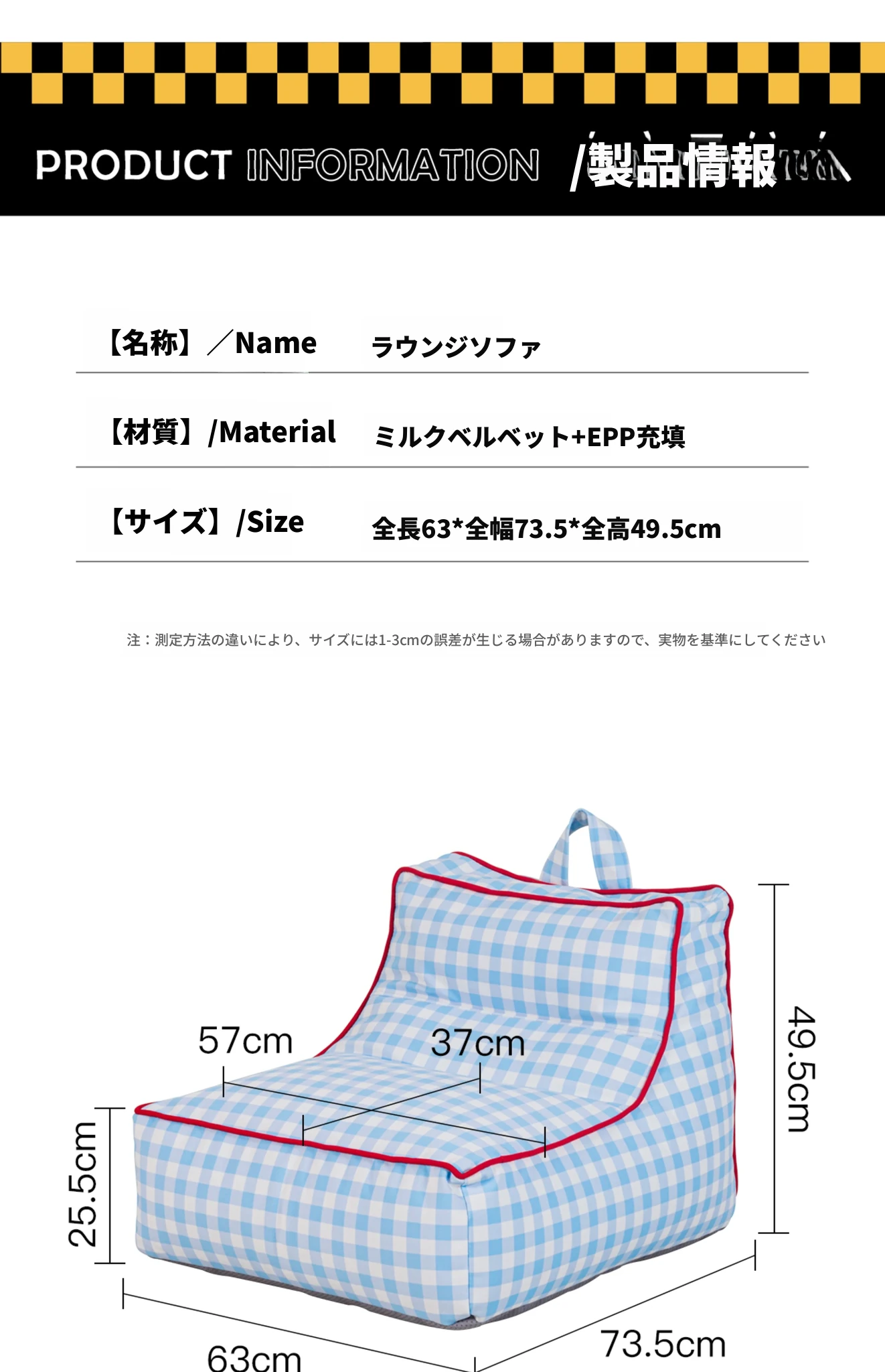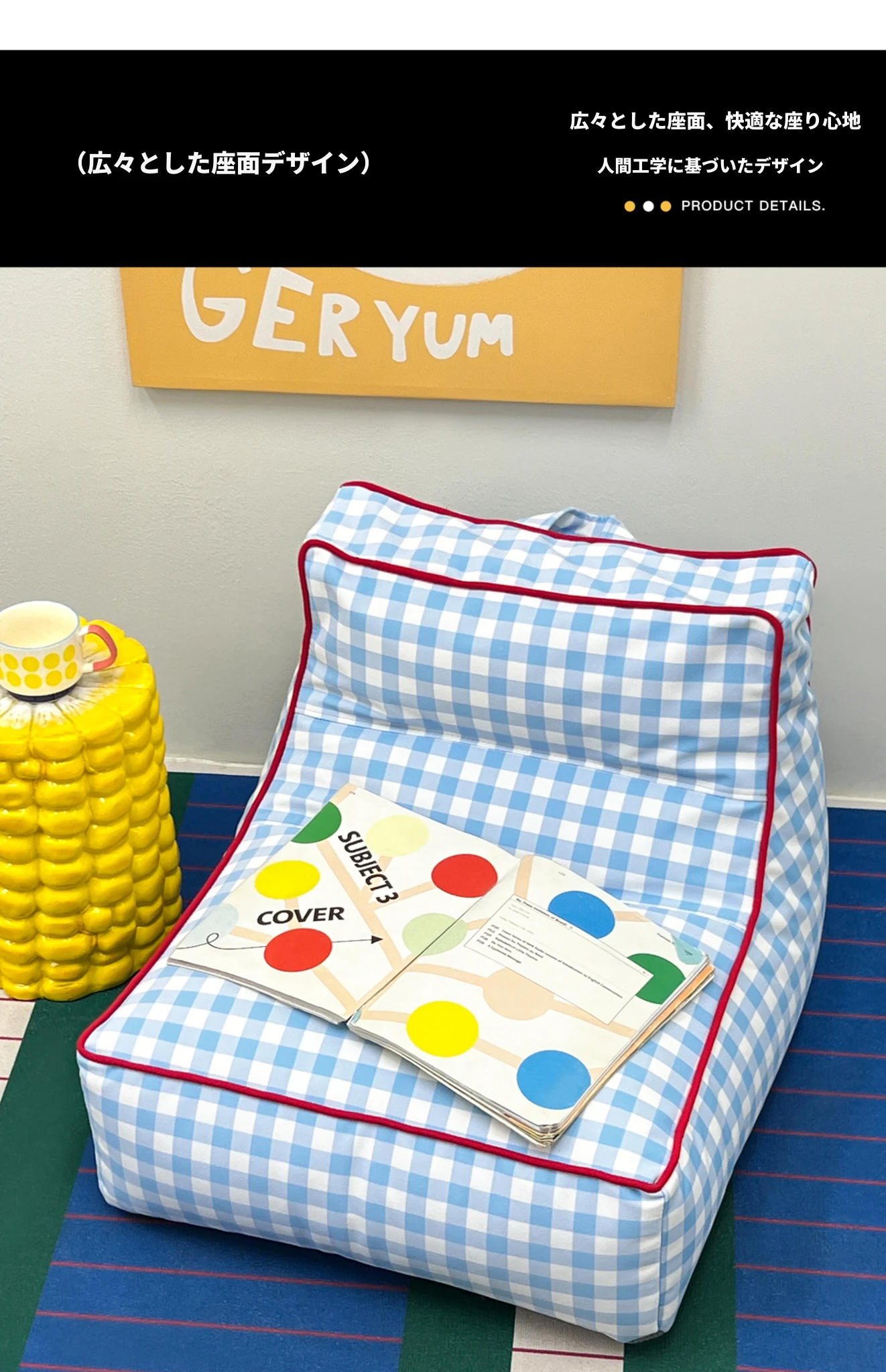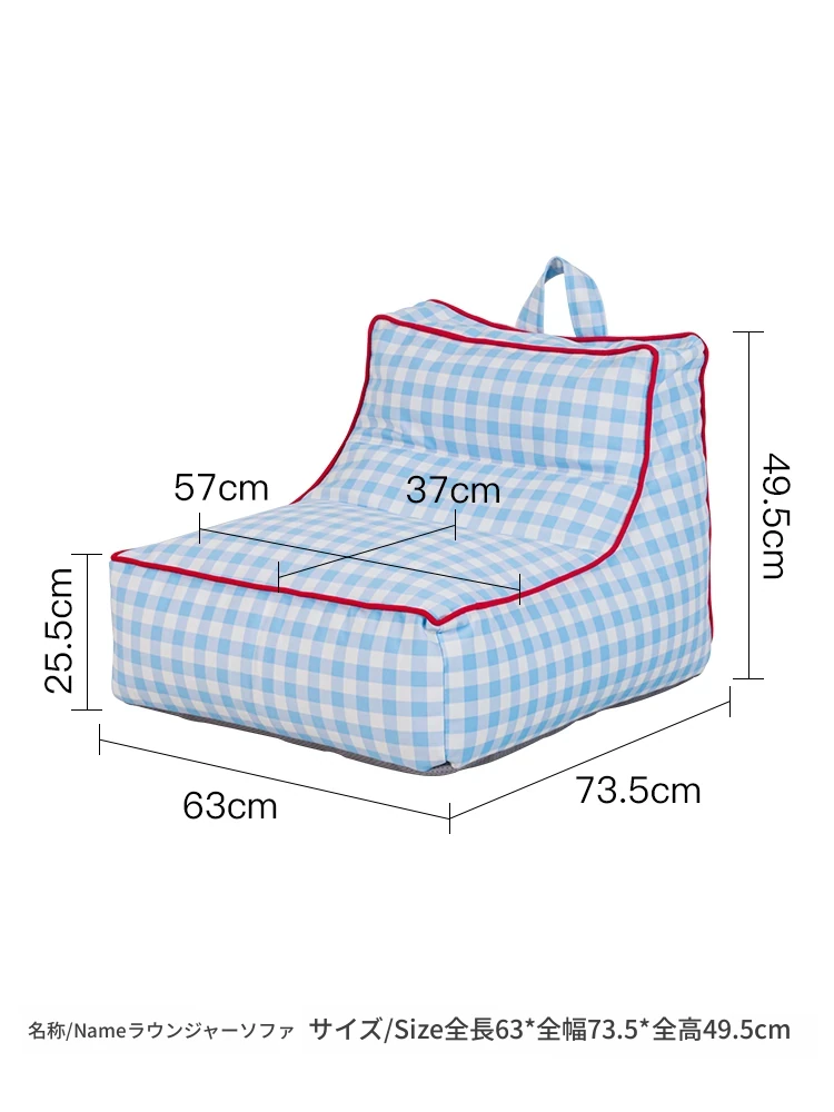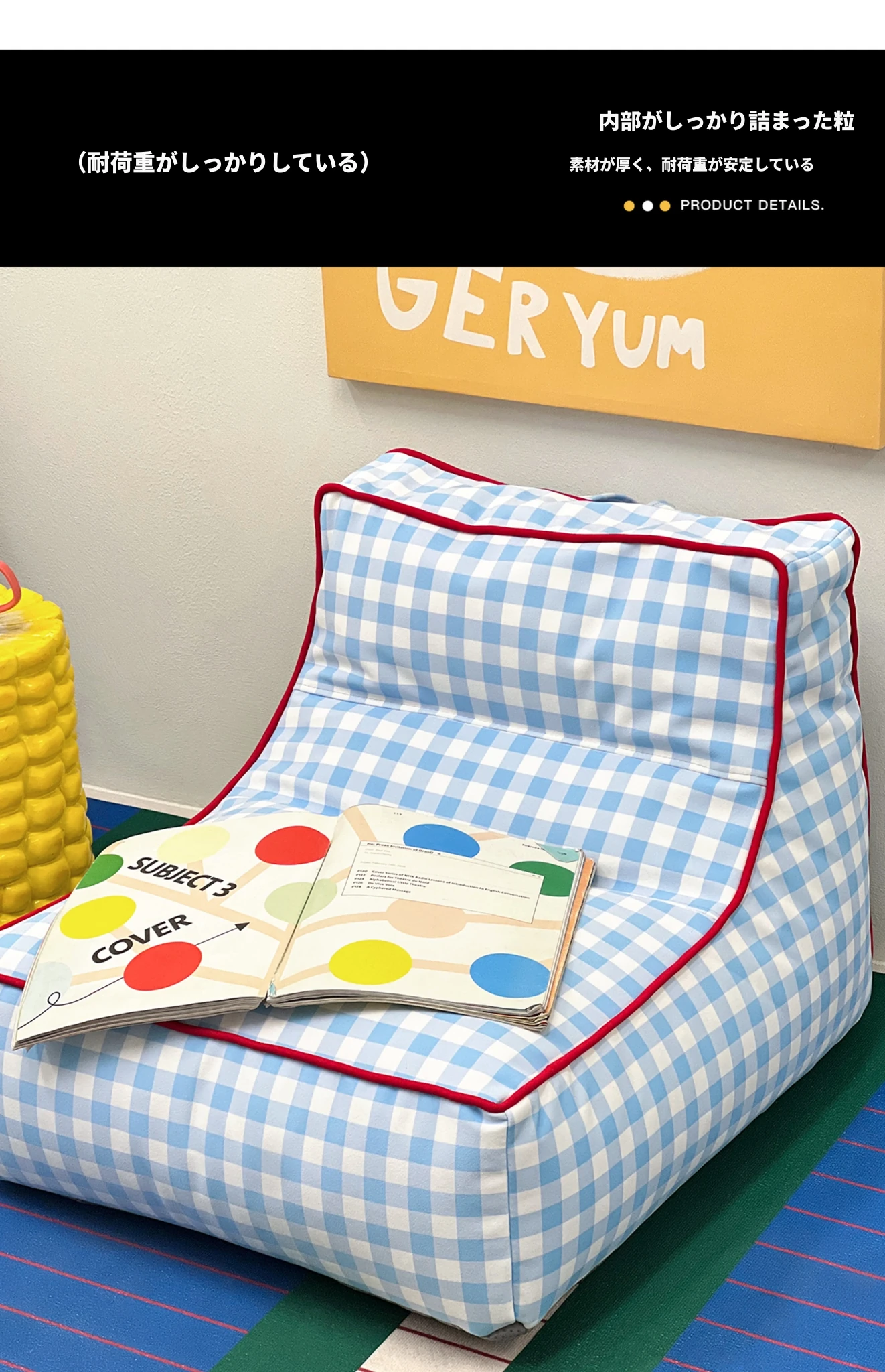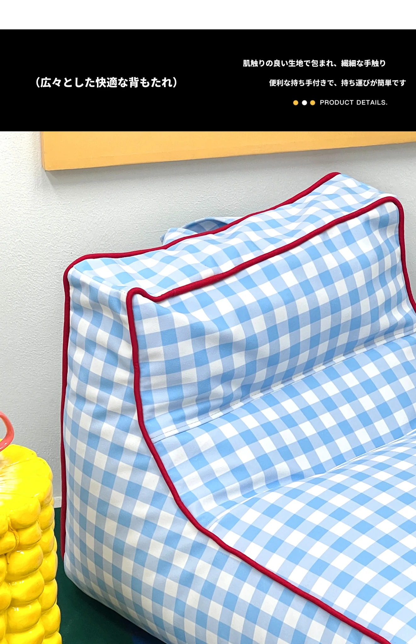 青と白のチェック柄ソファ 高さ25.5cm 15日以内に発送