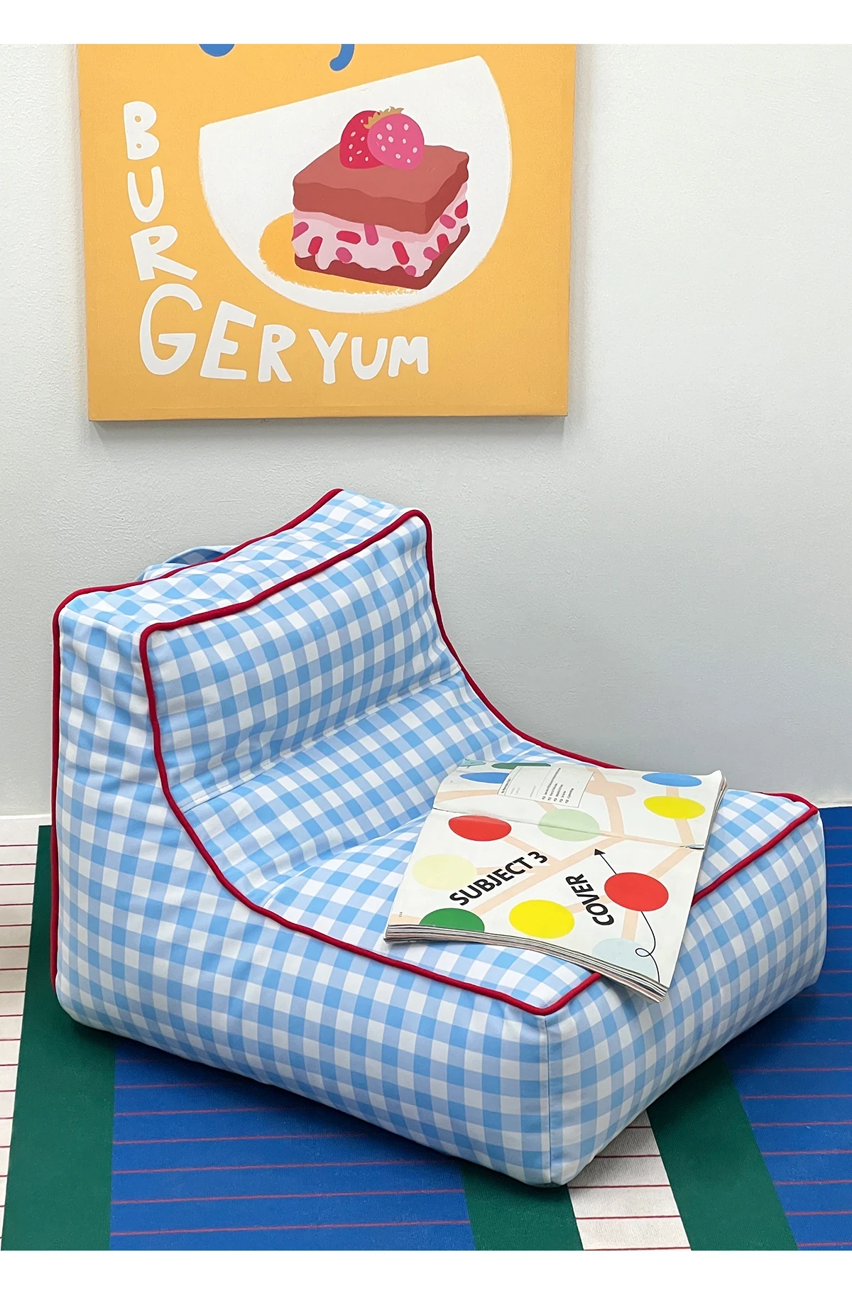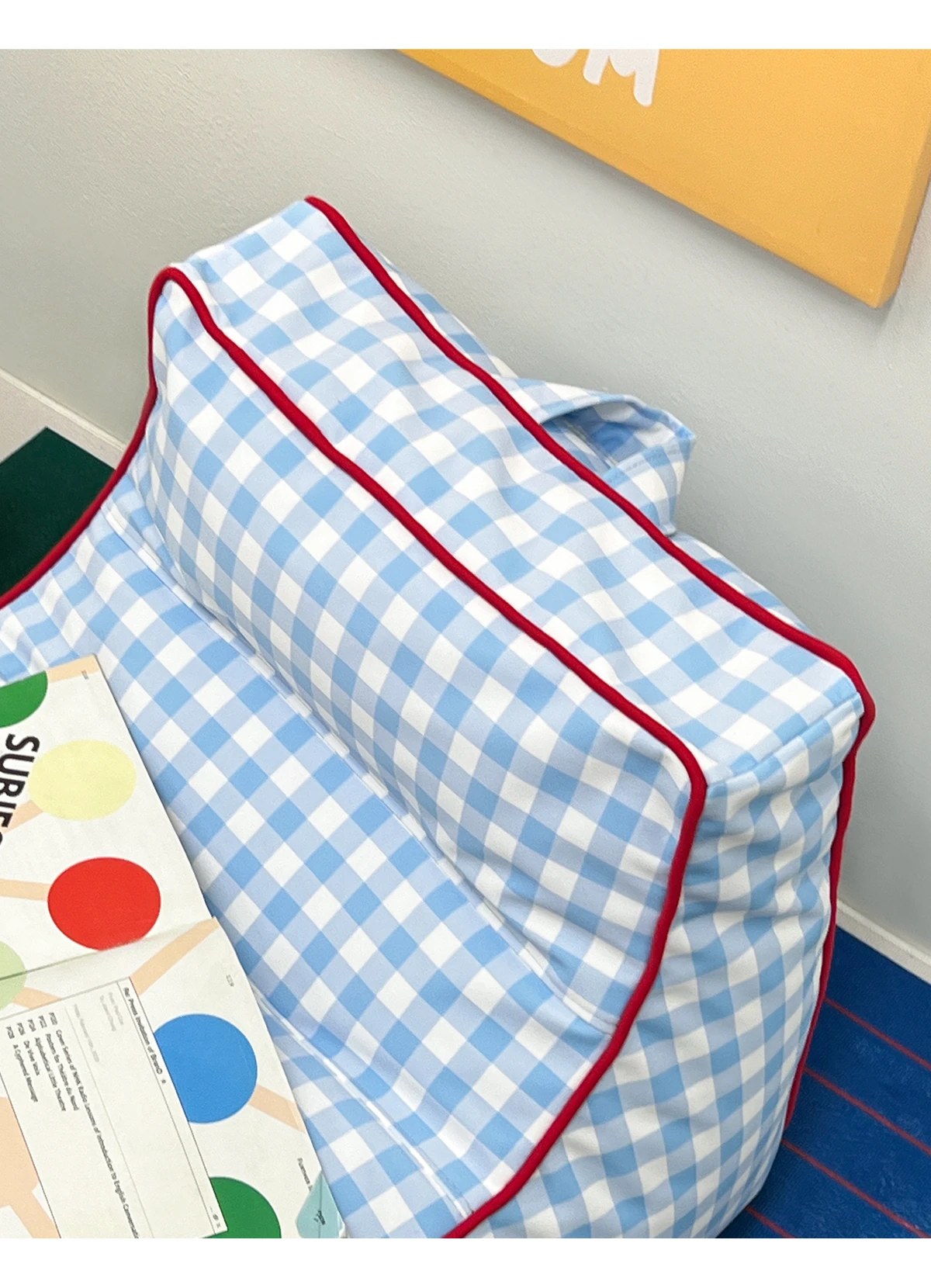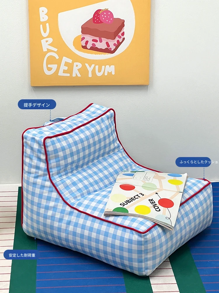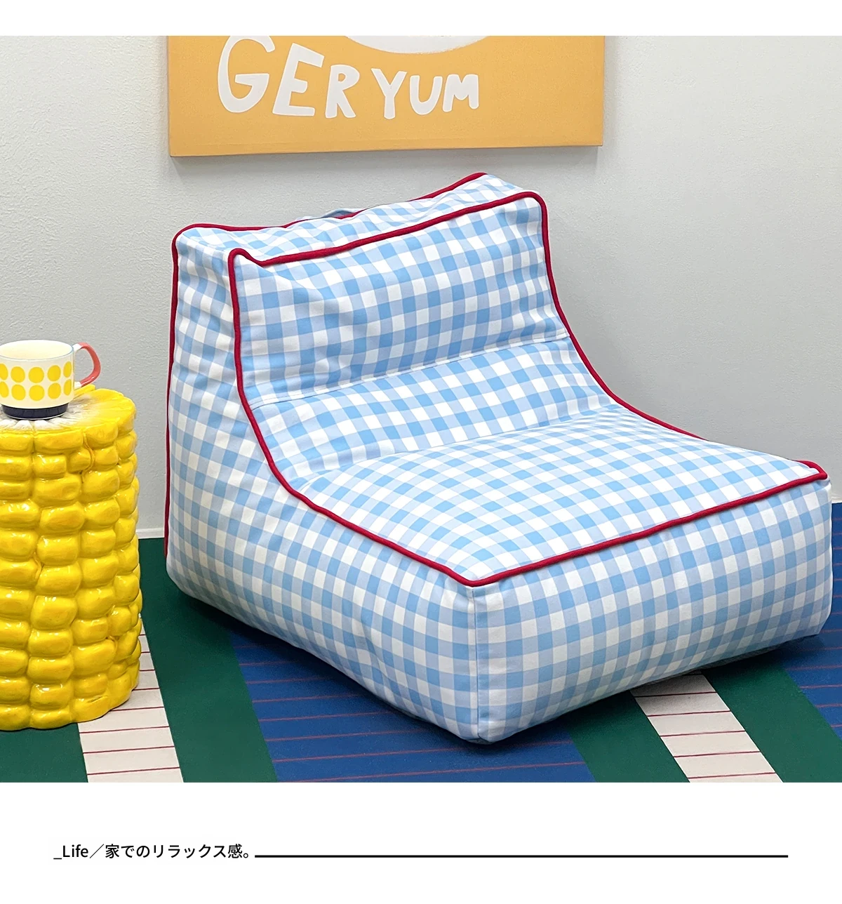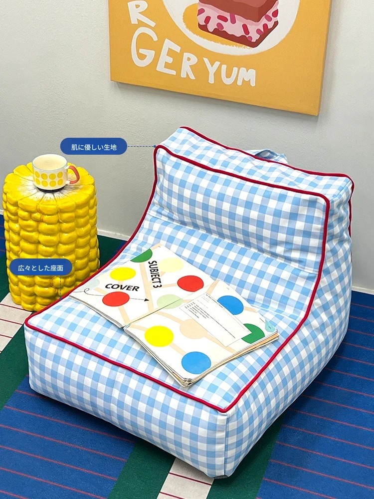 青と白のチェック柄ソファ 高さ25.5cm 15日以内に発送