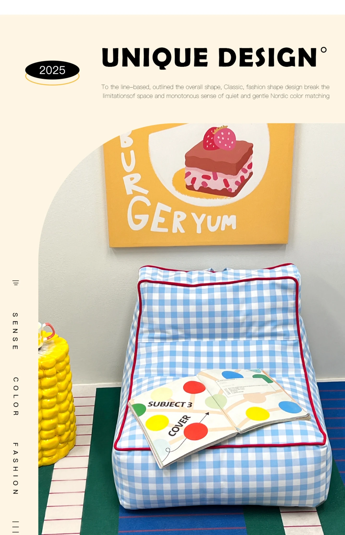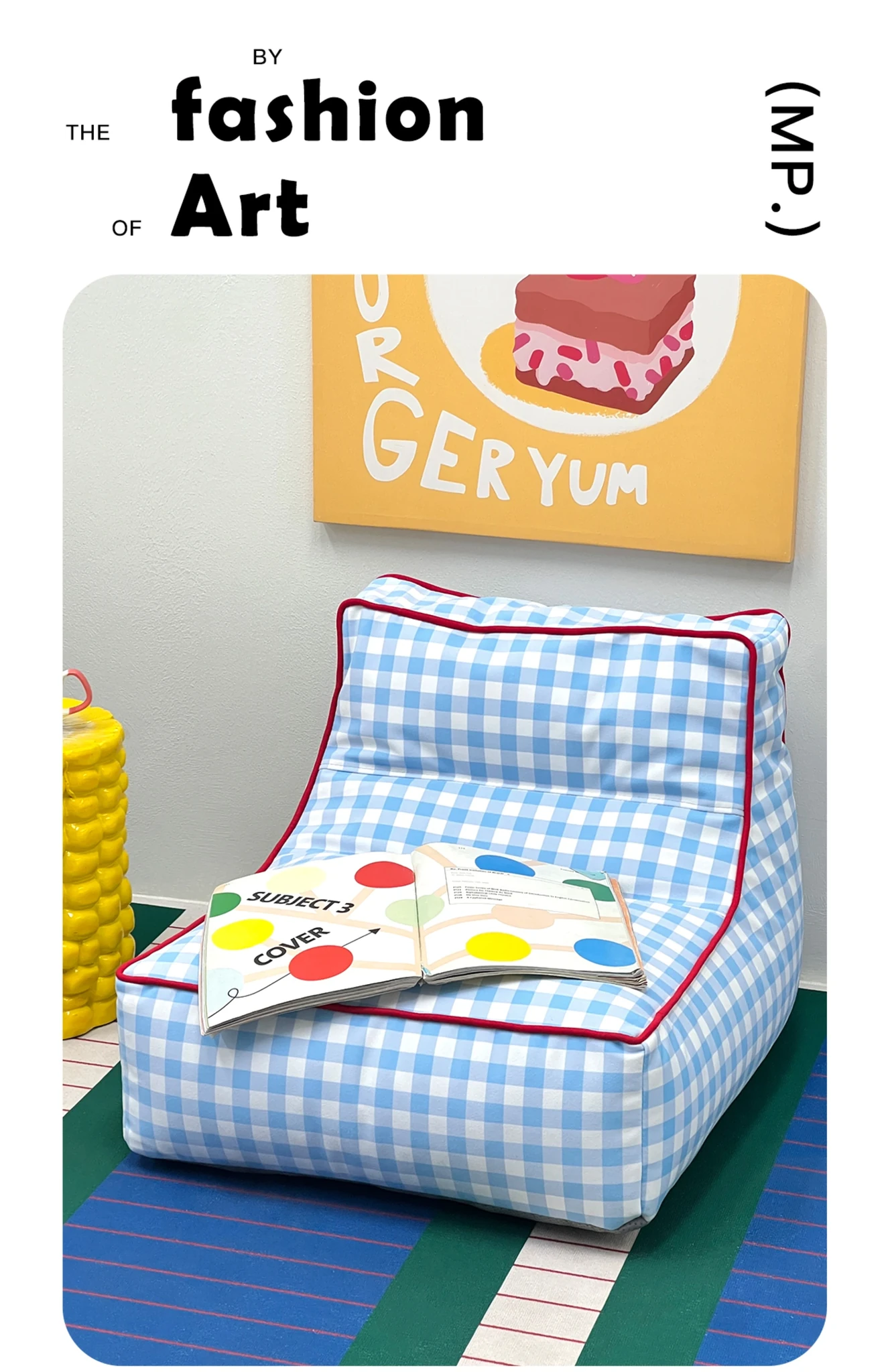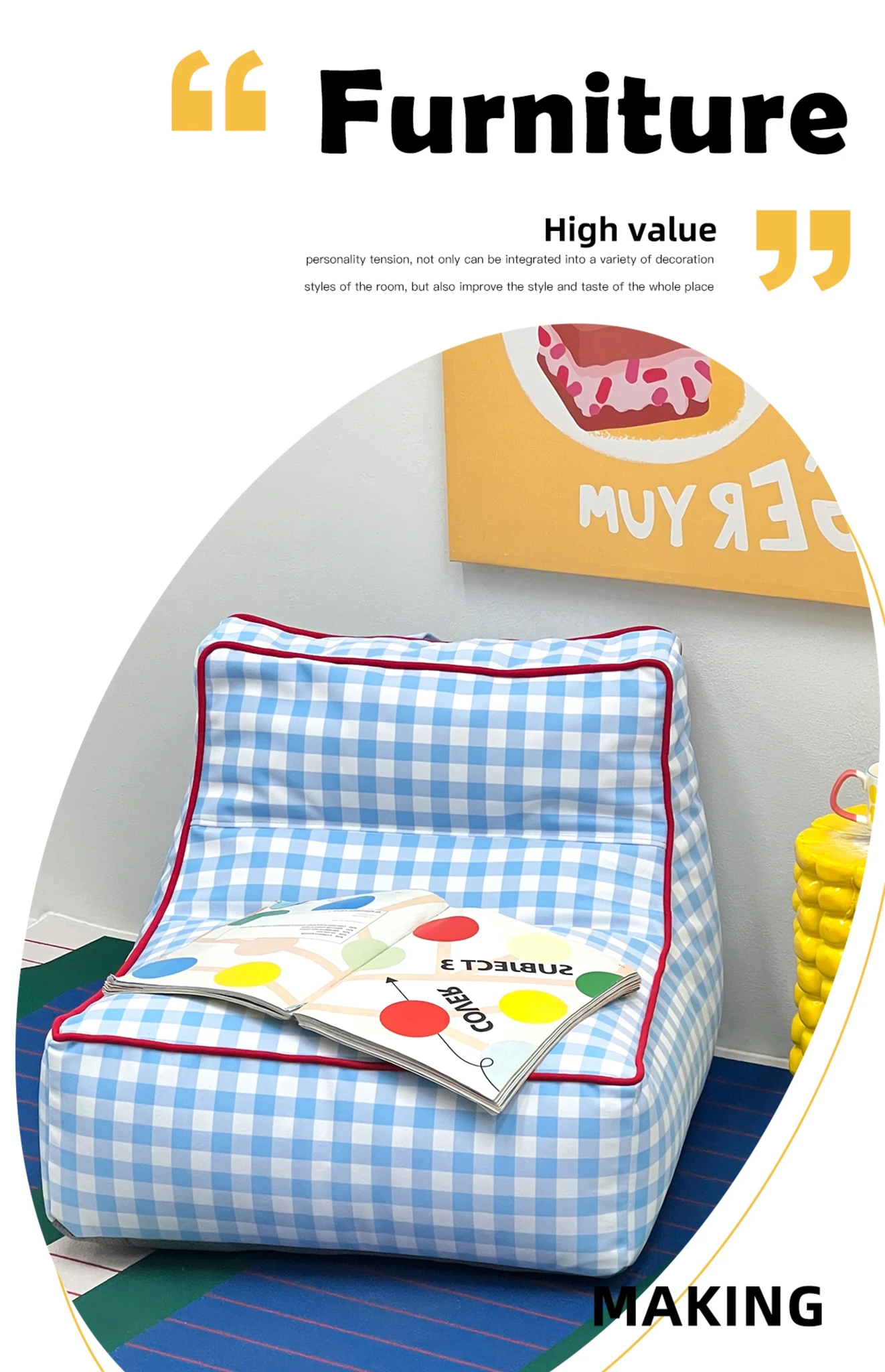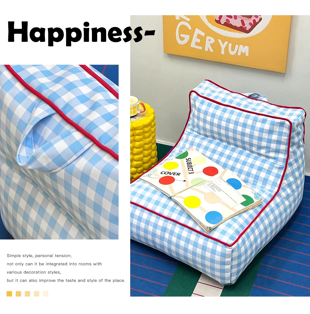 青と白のチェック柄ソファ 高さ25.5cm 15日以内に発送