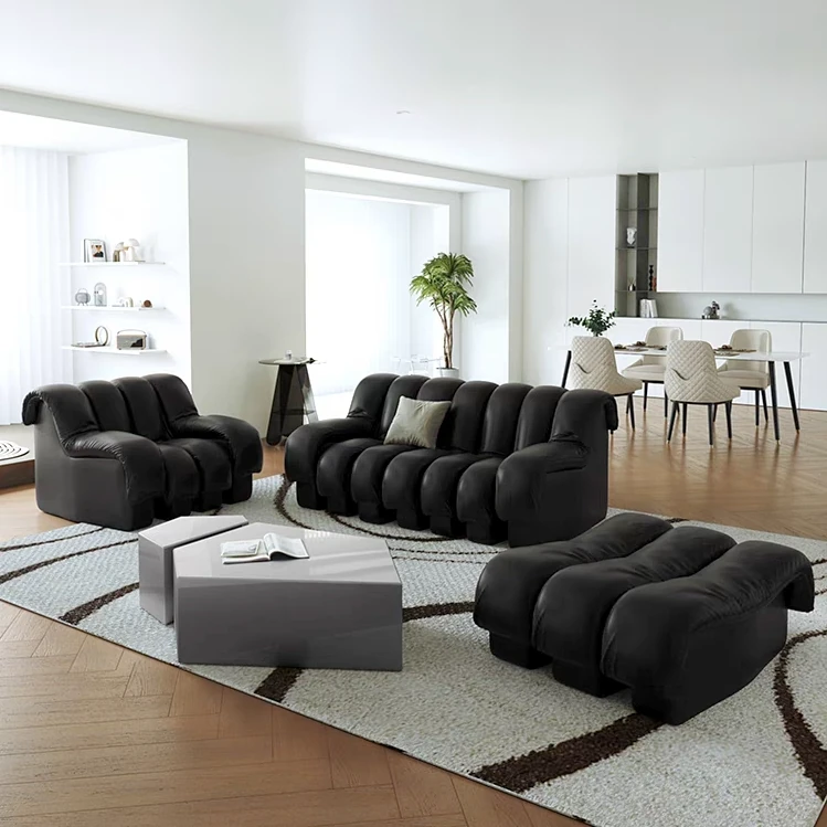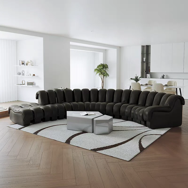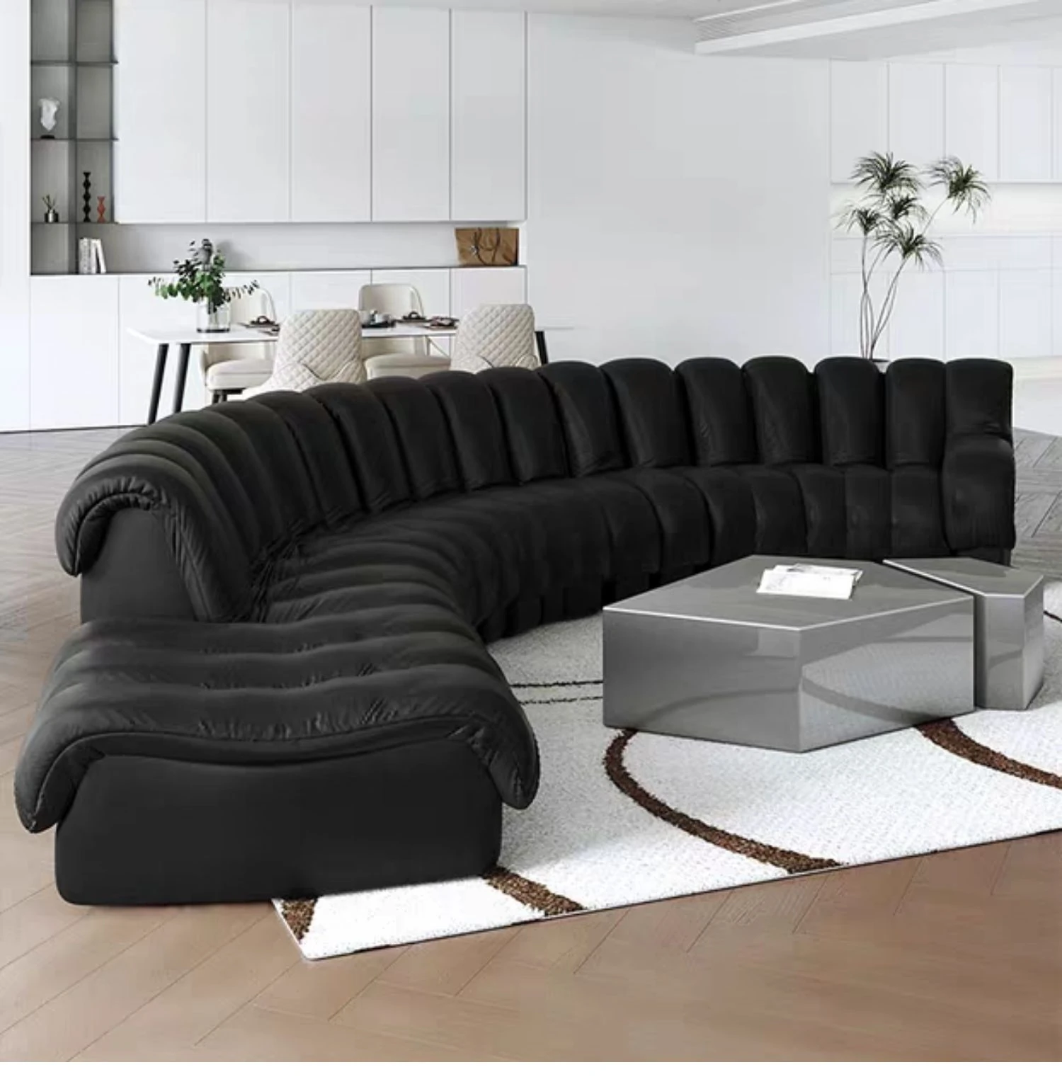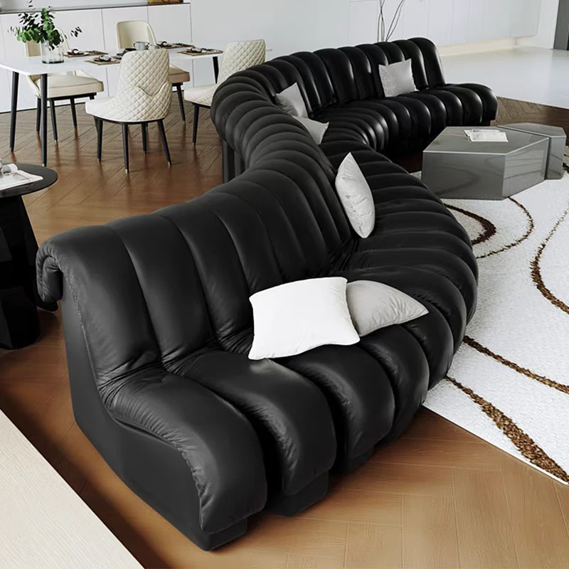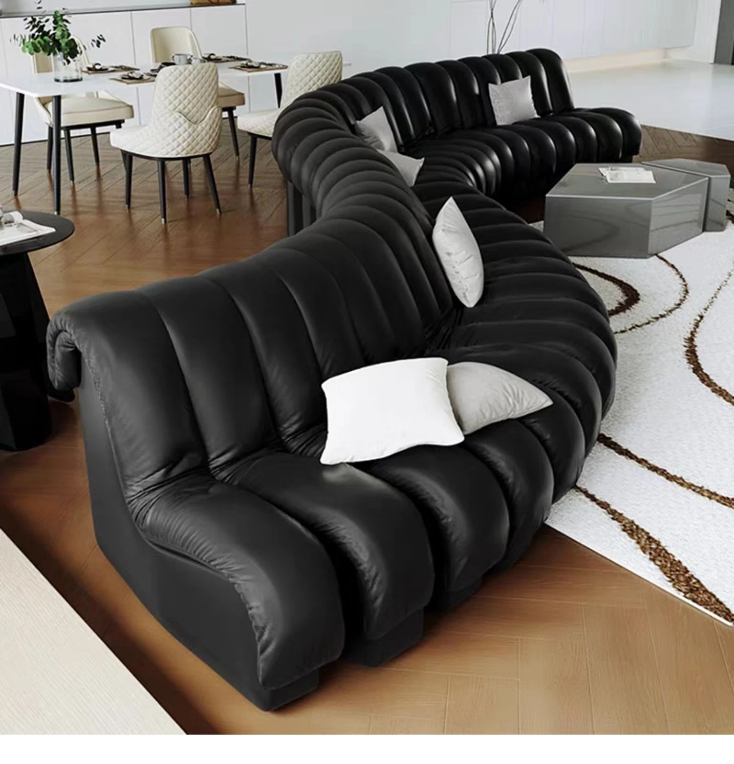 現代的なシンプルデザイン!本革製イタリアンスタイルのカーブソファ、S字型のモジュラーコンビネーション。広いリビングにぴったりの大容量ソファ。あなたの空間をスタイリッシュに彩ります!