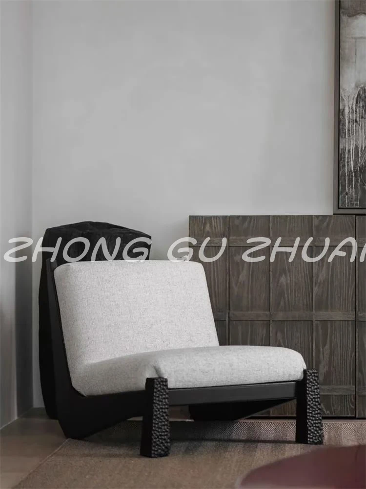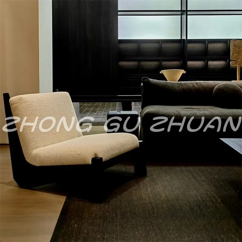 中古モダン無垢材ソファチェア|ミニマリストデザイン|モデルルームやホテル客室、クラブハウスに最適|リラックスしたひとときを提供するおしゃれな休憩椅子