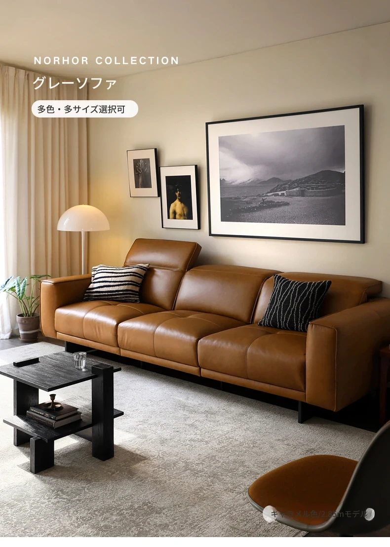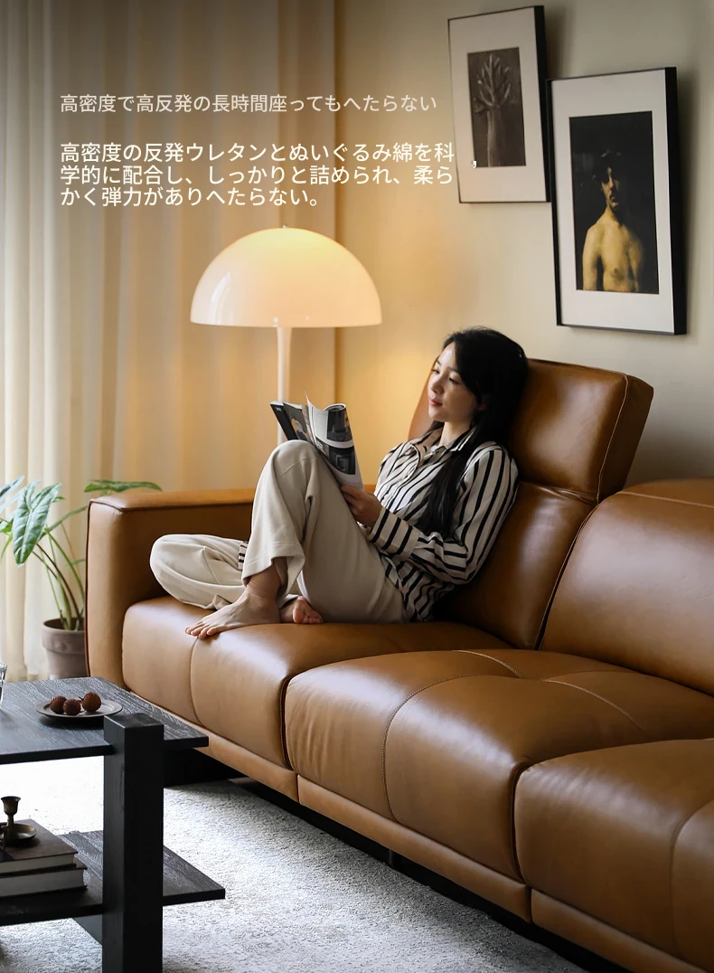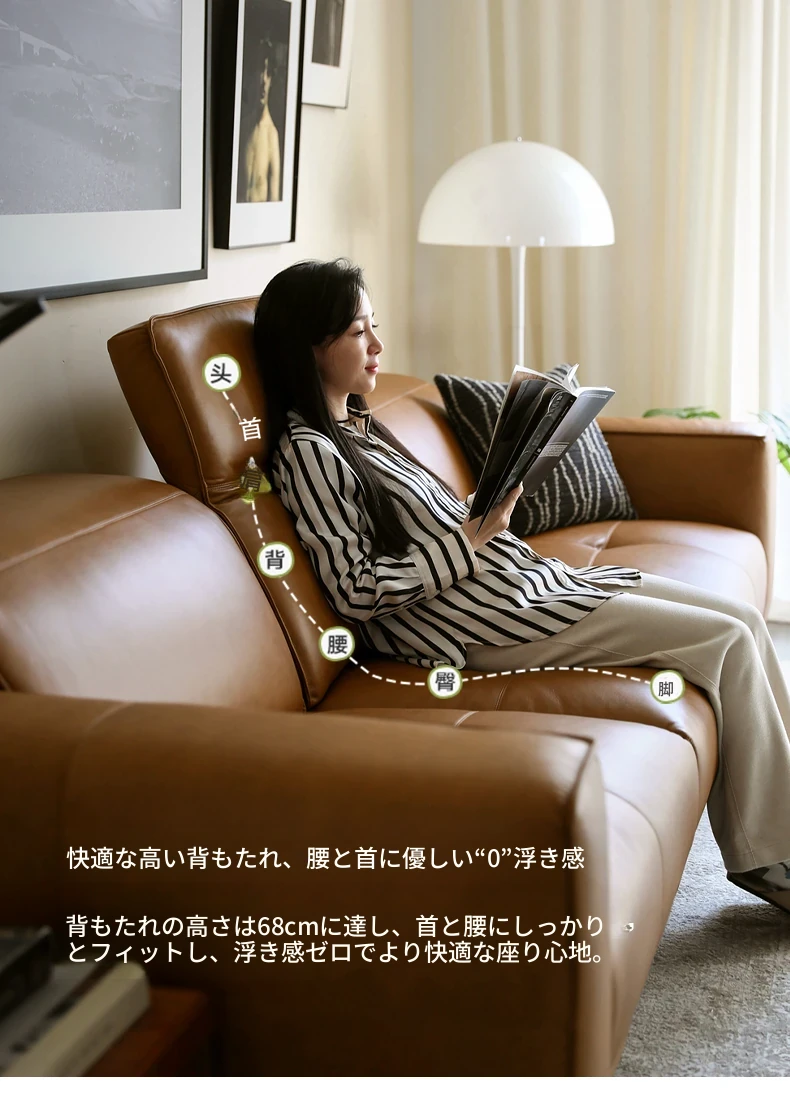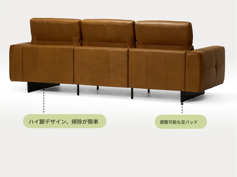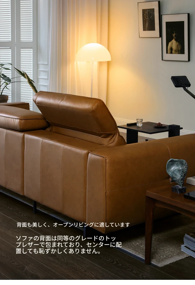 北欧風レトロスタイルの灰色バウハウス金属調整可能な高背もたれソファ - 信頼のオイルワックスレザー仕上げで、快適さとスタイルを兼ね備えた一品!