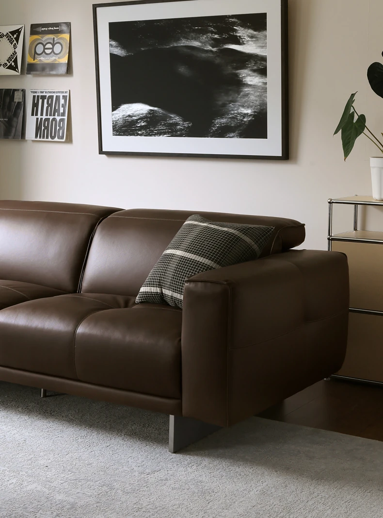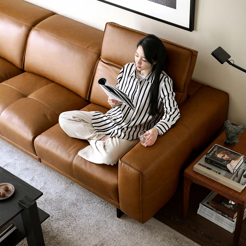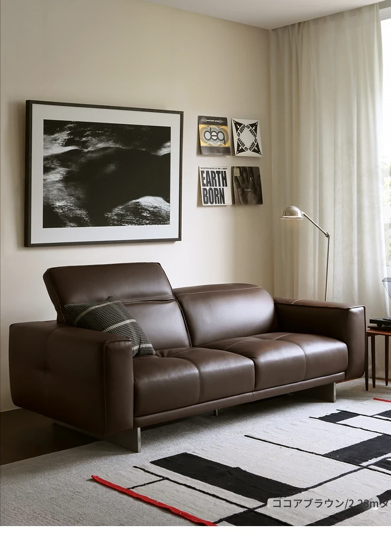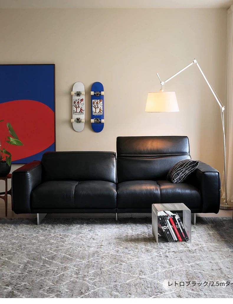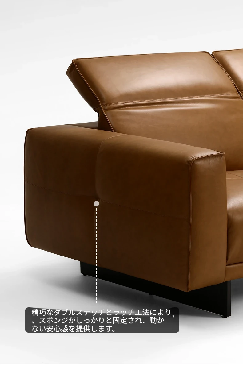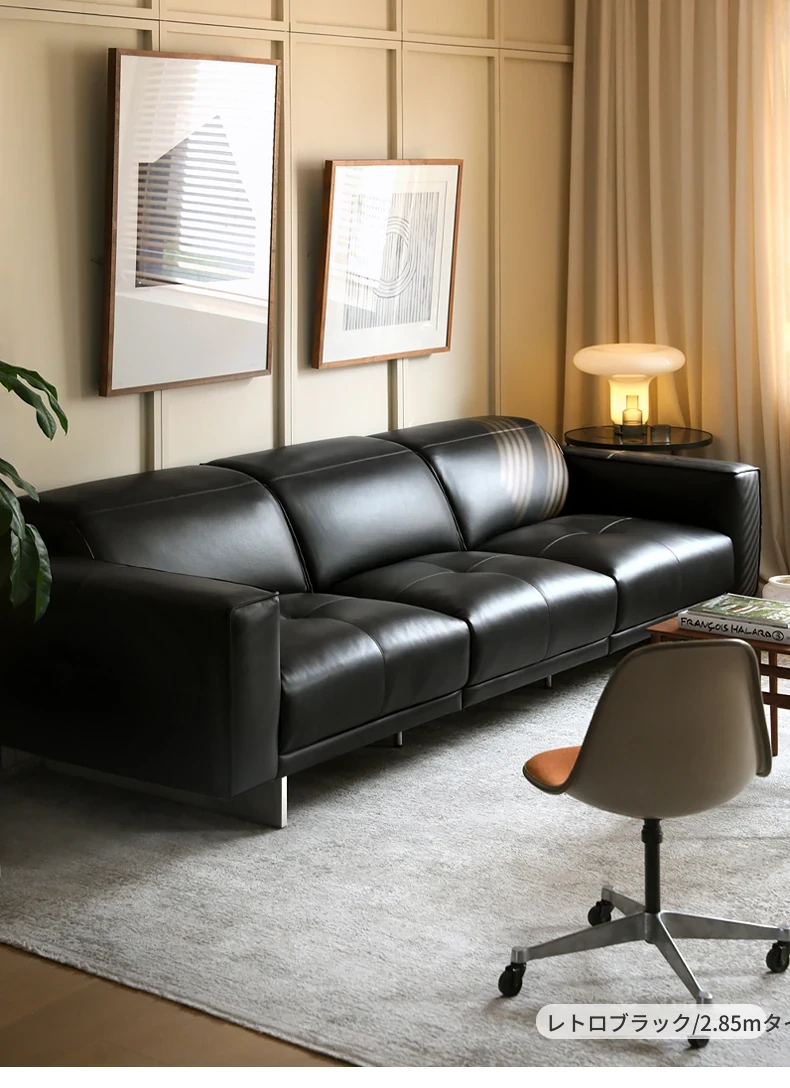 北欧風レトロスタイルの灰色バウハウス金属調整可能な高背もたれソファ - 信頼のオイルワックスレザー仕上げで、快適さとスタイルを兼ね備えた一品!