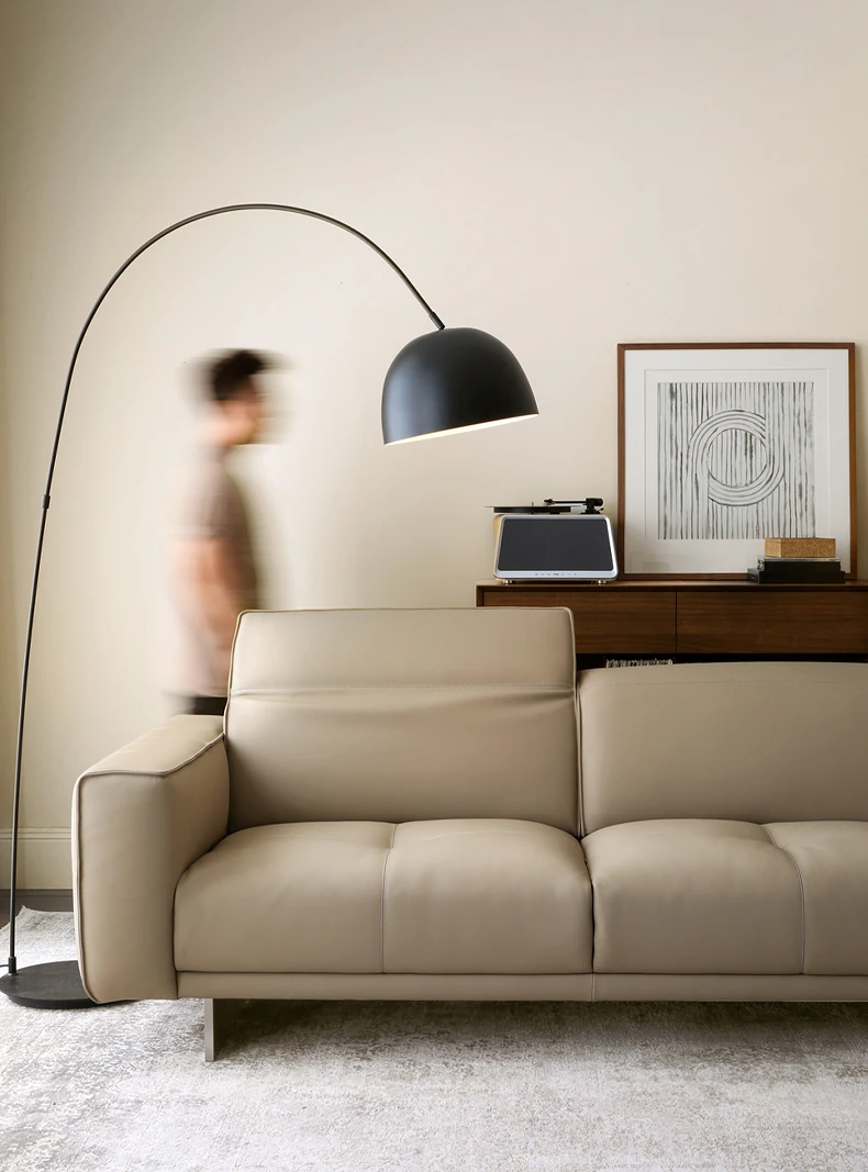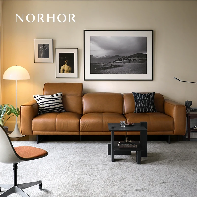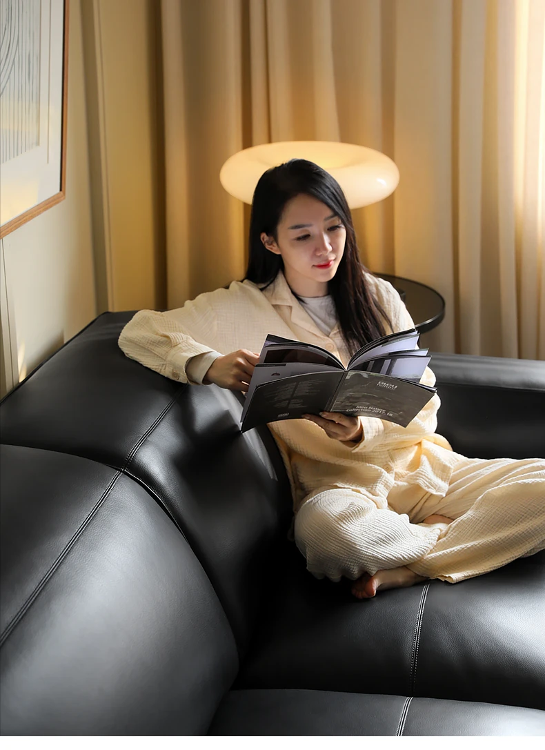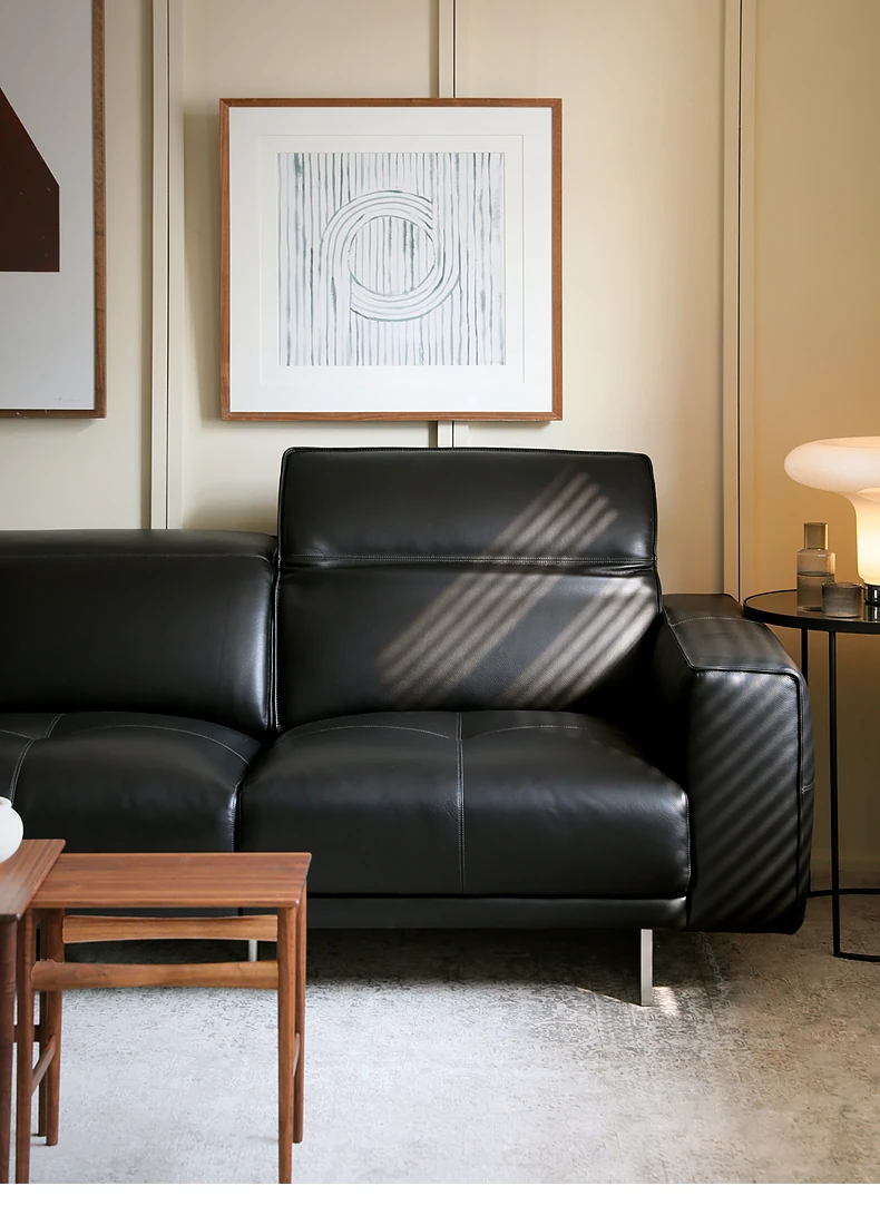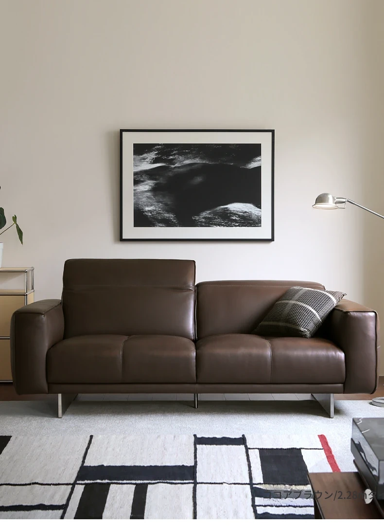 北欧風レトロスタイルの灰色バウハウス金属調整可能な高背もたれソファ - 信頼のオイルワックスレザー仕上げで、快適さとスタイルを兼ね備えた一品!