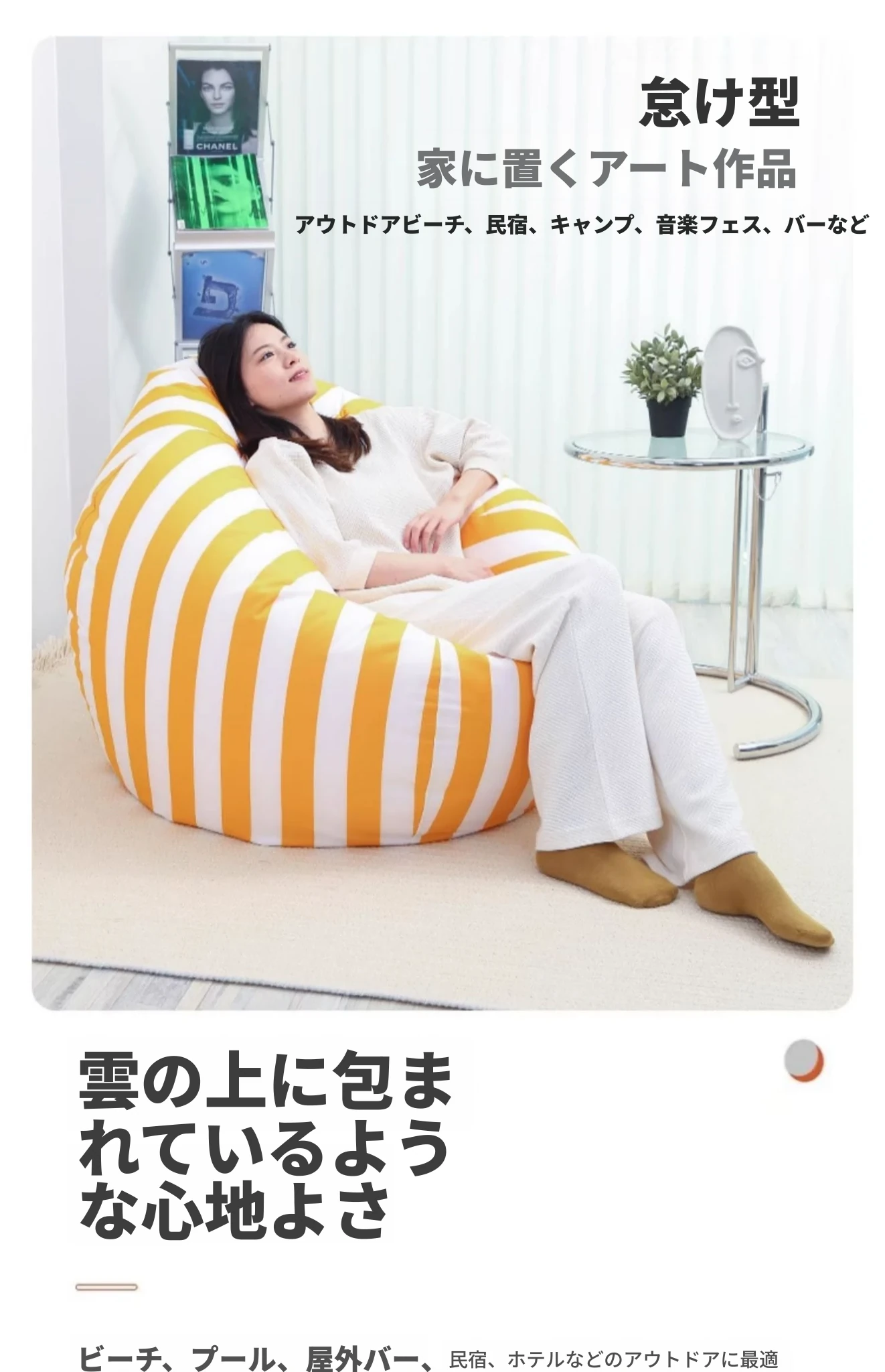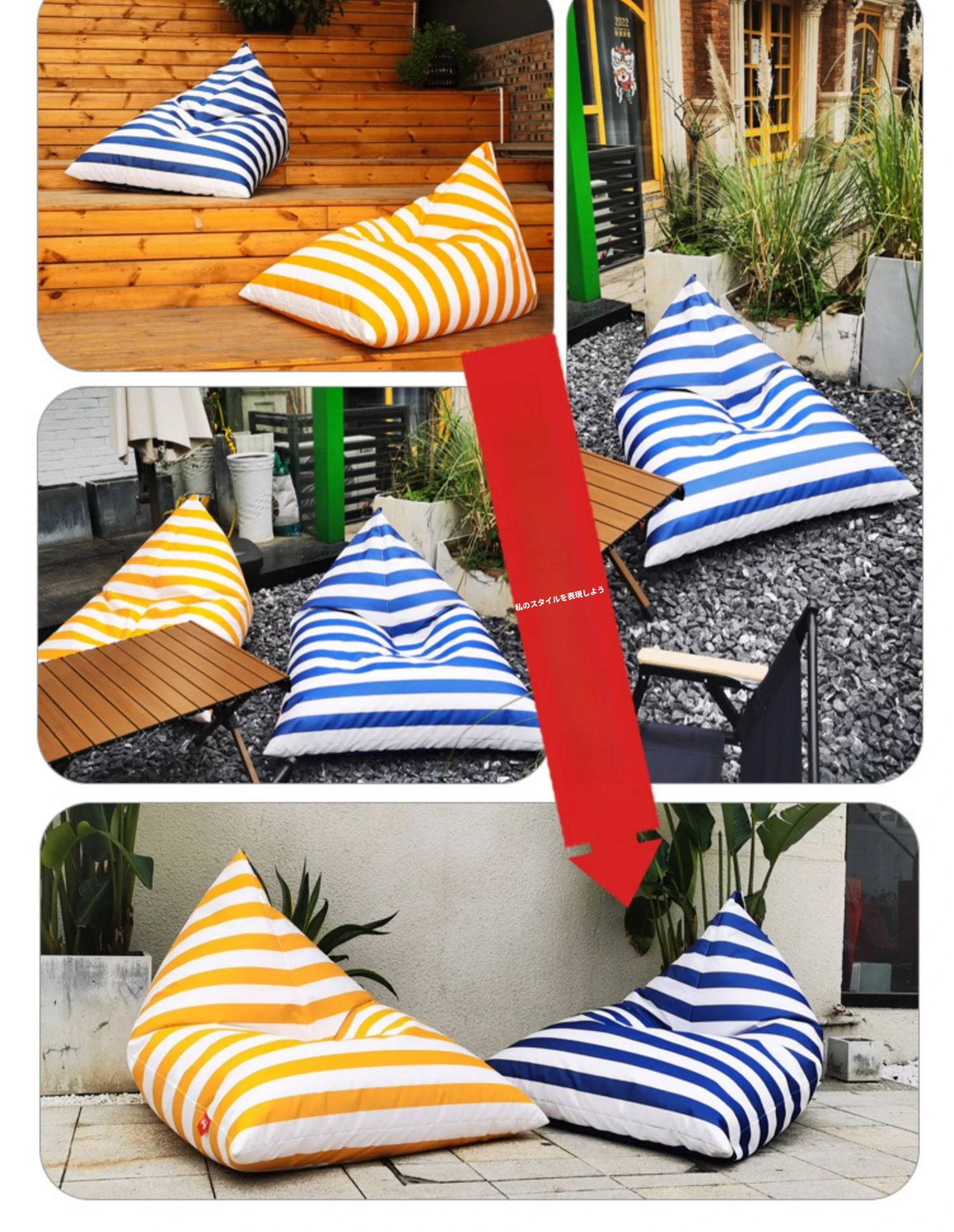 アウトドア防水ネットで話題のリラックスソファ!ビーズクッションカバー、キャンプや音楽フェスに最適。中身は含まれていませんので、お好きな素材で自分だけのソファを楽しめます!