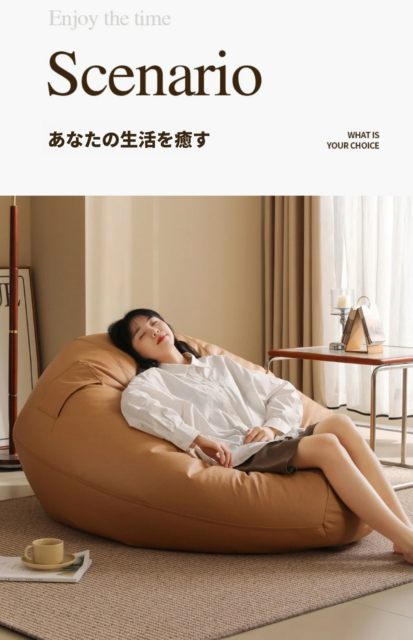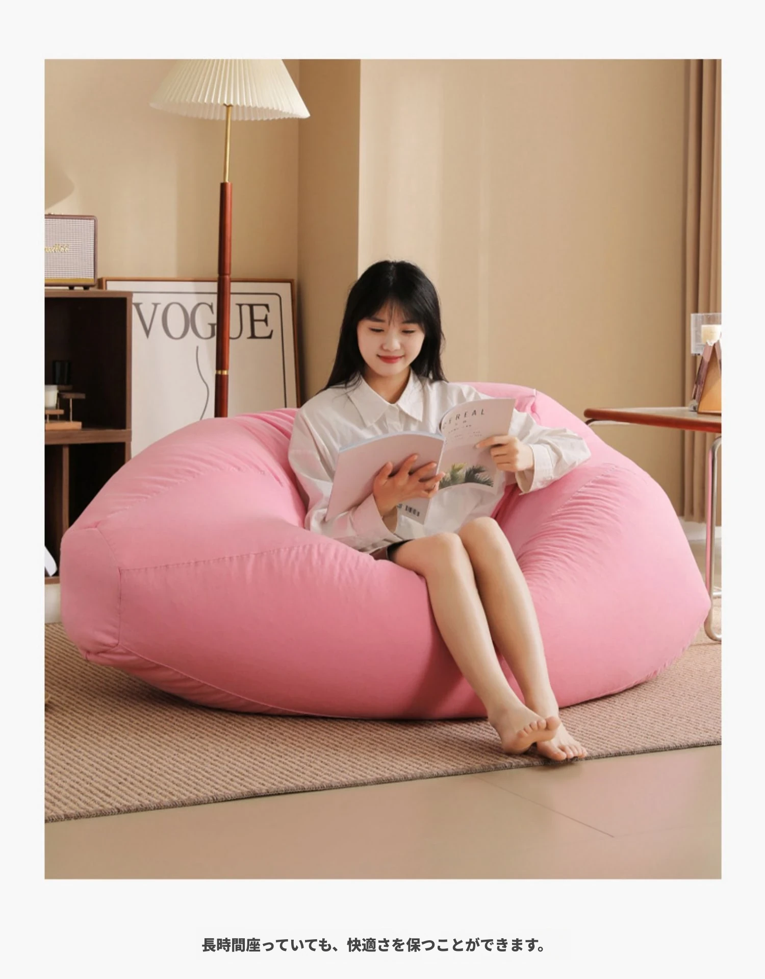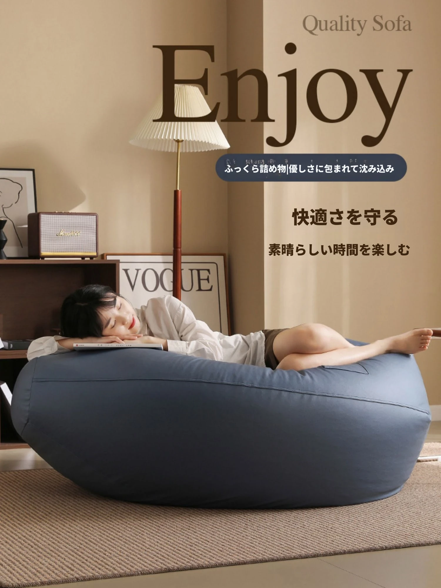 超大サイズの人気のラウンジソファー!寝ても座っても楽しめるビーズクッション。畳やバルコニー、寝室、民宿に最適なリラックスアイテム!快適さとスタイルを兼ね備えたビーンバッグで、あなたの空間を彩りましょう!