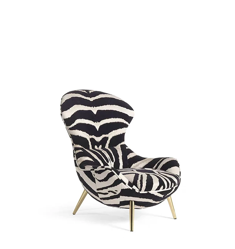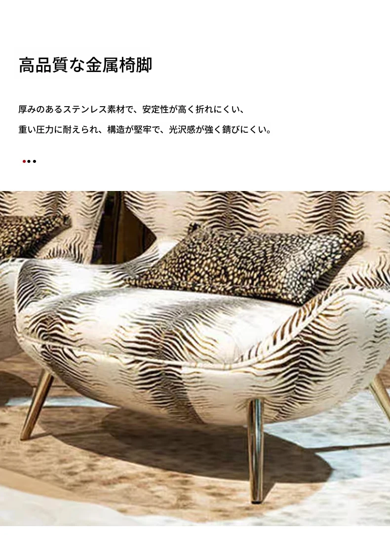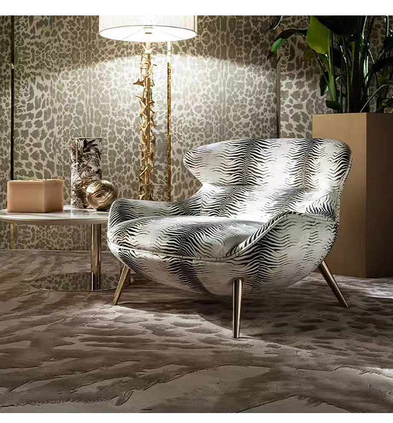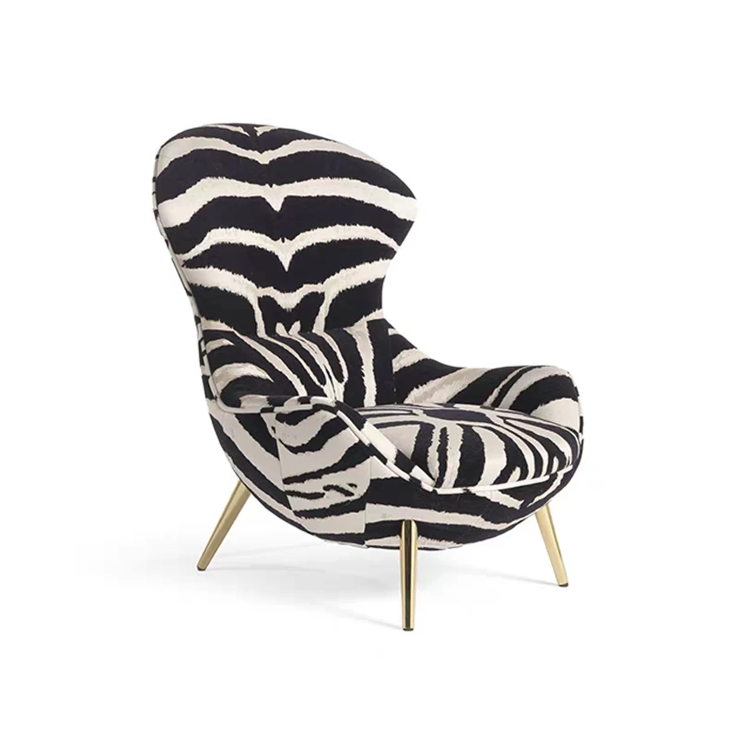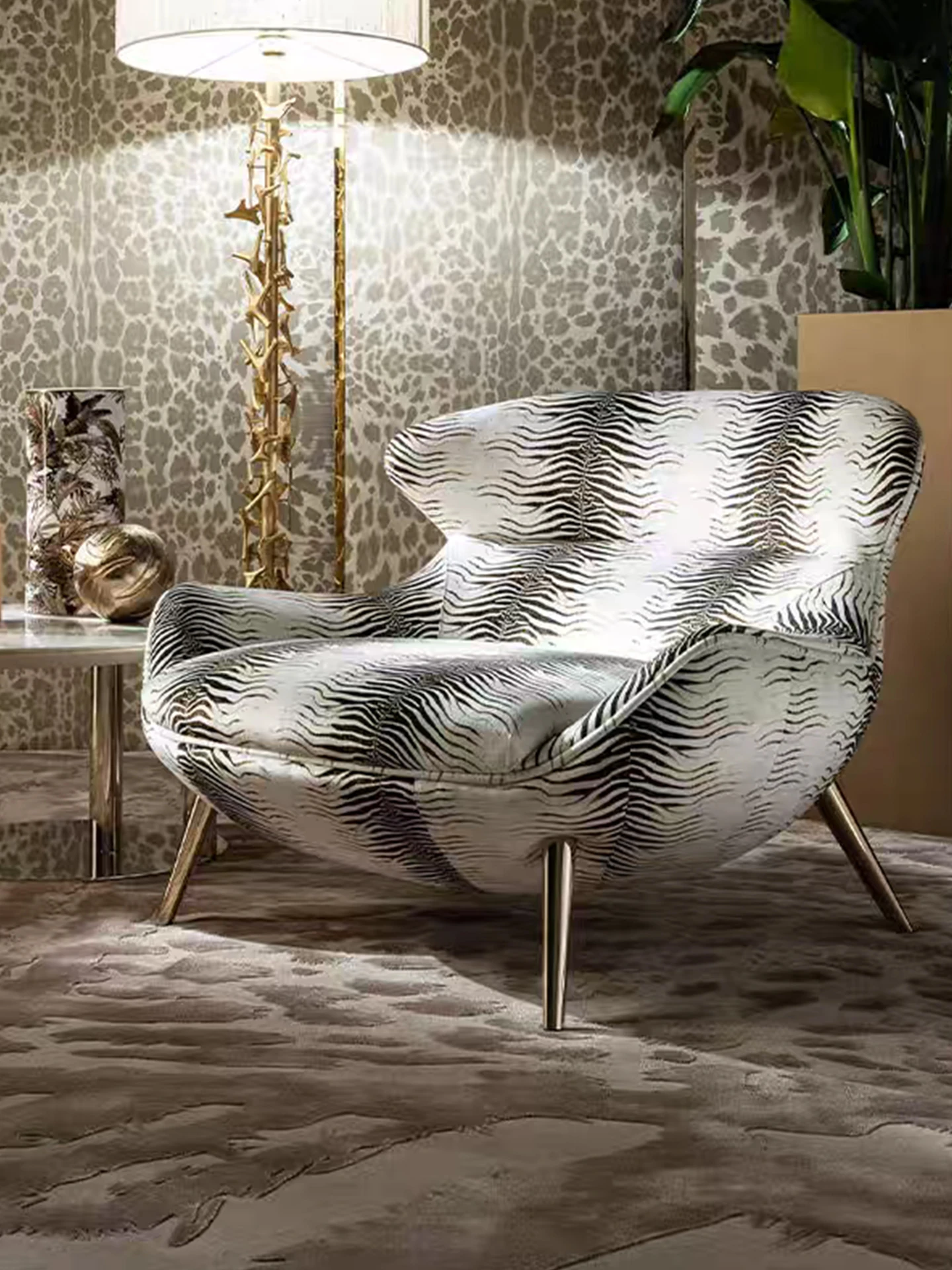 ロバート・ラグジュアリー・トラ柄ソファチェア|デザイナー特選のヴィラ・豪邸向けハイエンドな個性的アームチェア|一人用会話用椅子として最適!