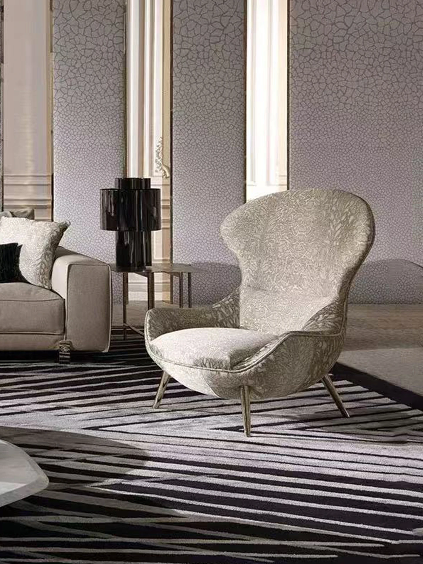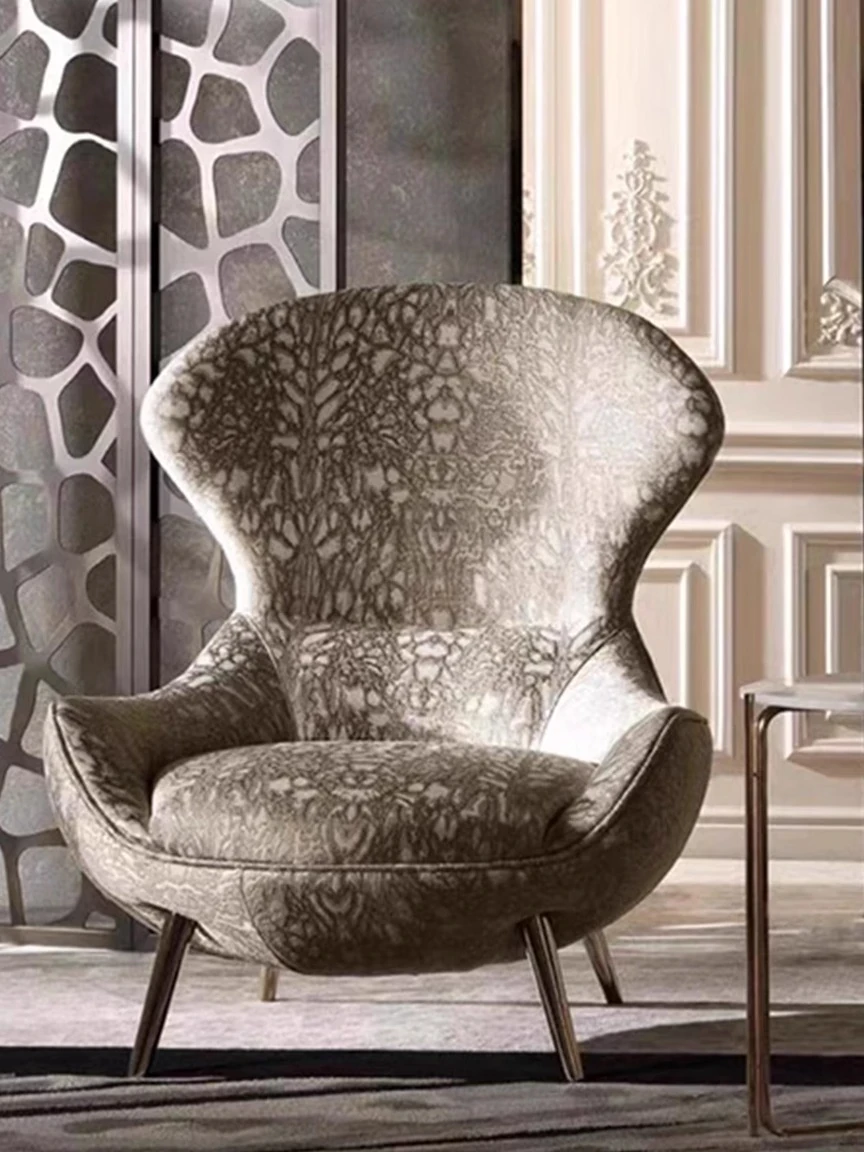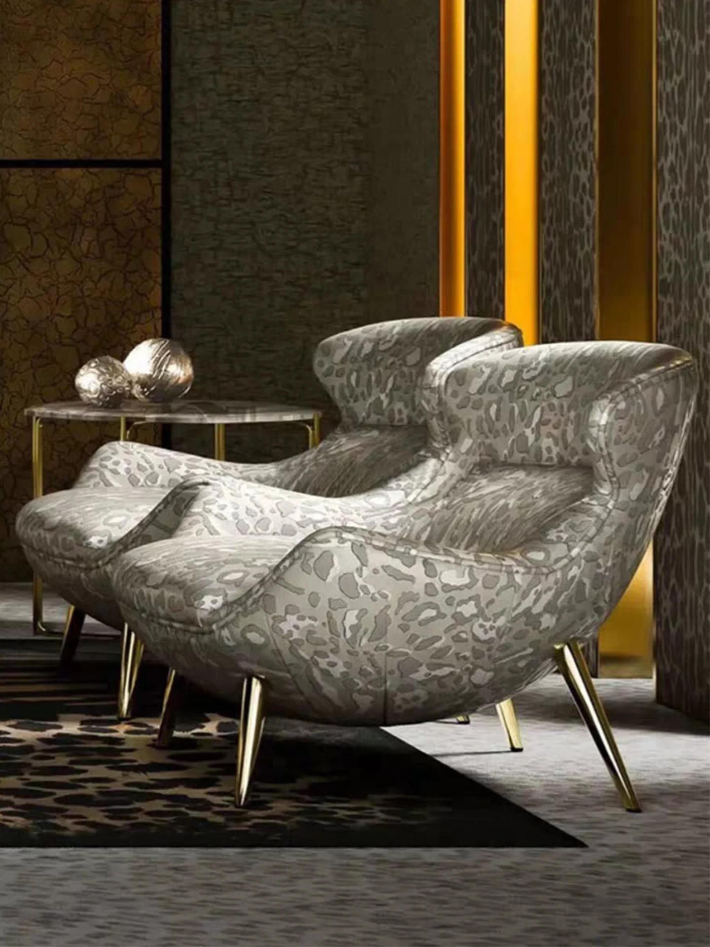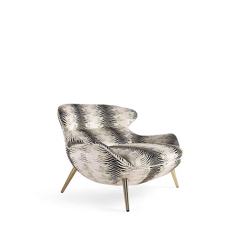 ロバート・ラグジュアリー・トラ柄ソファチェア|デザイナー特選のヴィラ・豪邸向けハイエンドな個性的アームチェア|一人用会話用椅子として最適!