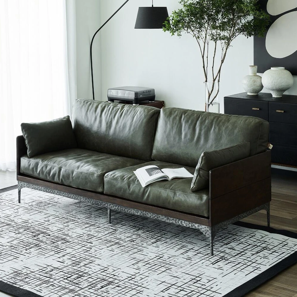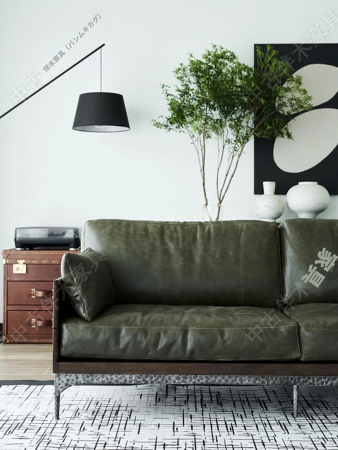 リゾートスタイルの本革ソファー ブラジル産トップグレイン牛革使用!実木フレームで小型リビングにぴったりなロハンソファー。レトロ&ヴィンテージデザインの3人掛けソファで、くつろぎの空間を演出します。