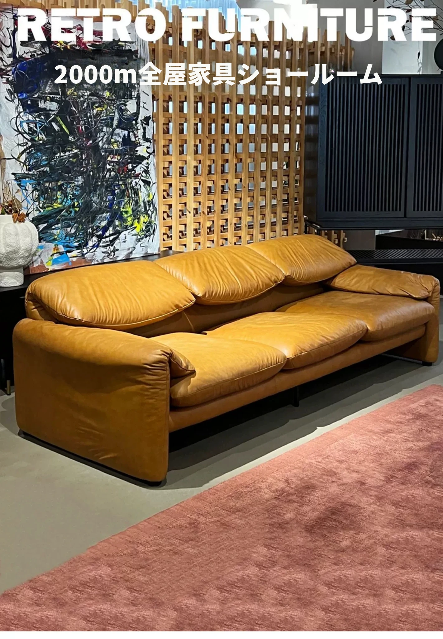 中古風のカッシーナデザイン、マラレンガ製の本革ソファ。リビングにぴったりなレトロオイルワックスレザー、多機能で快適なひとときをお届けします!