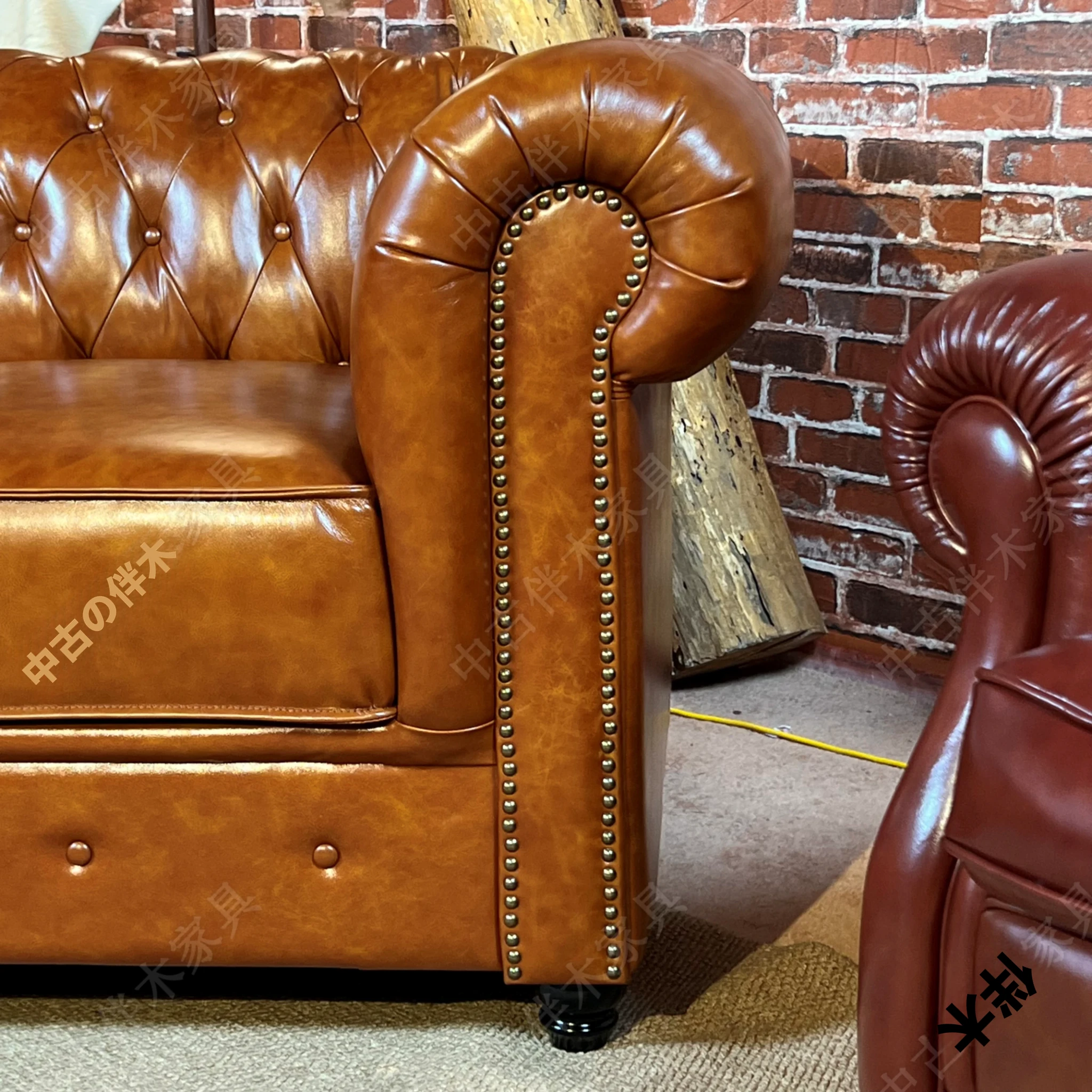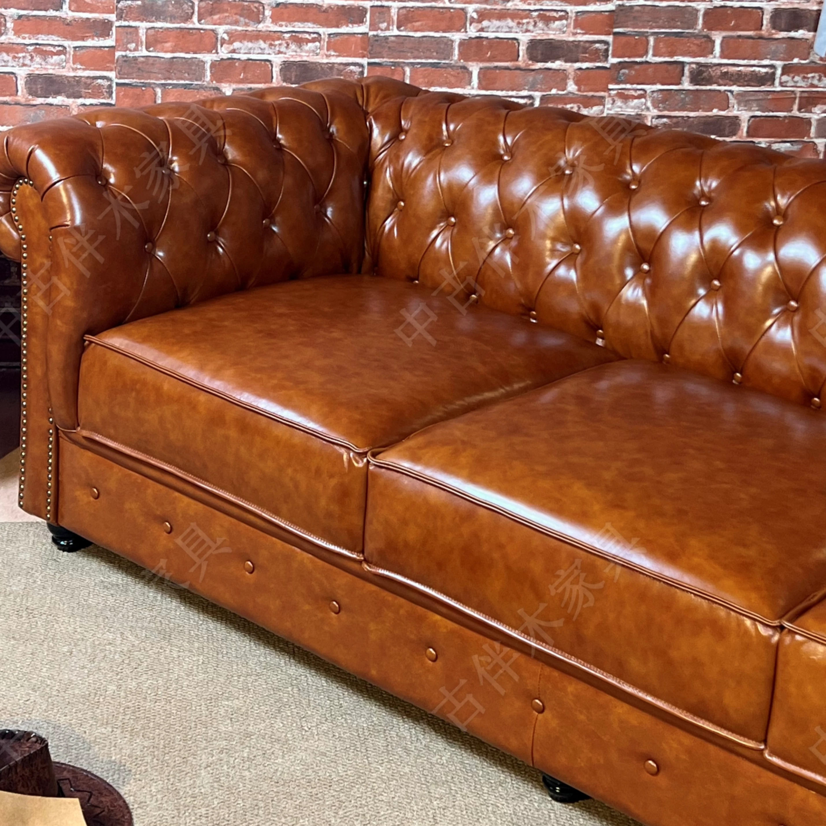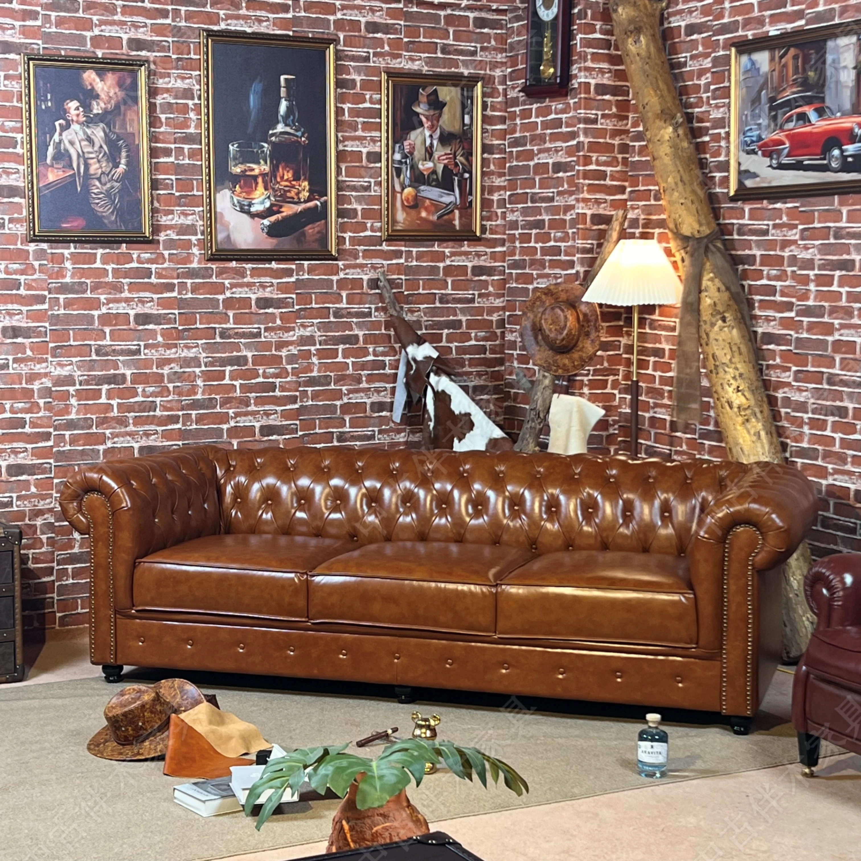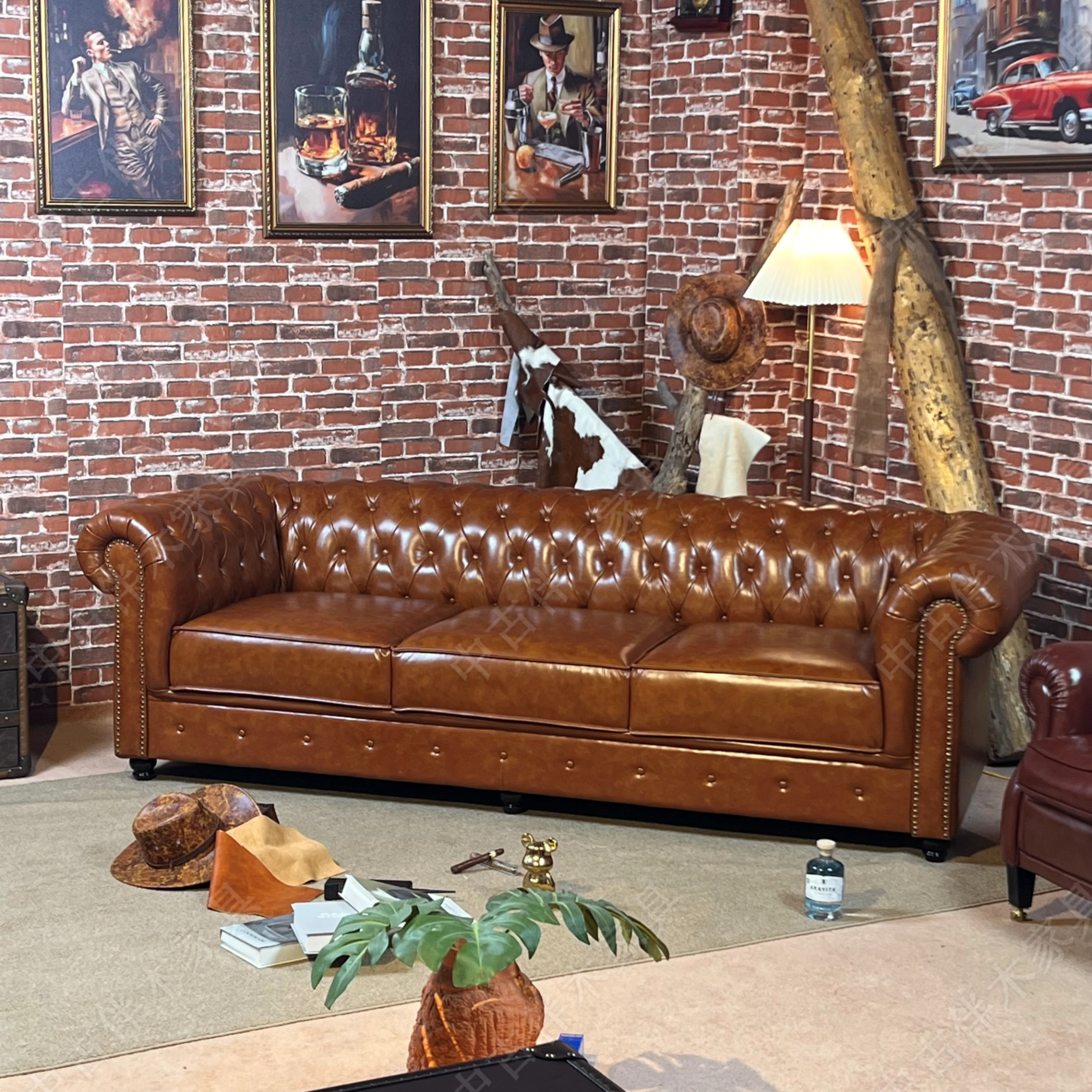 ヴィンテージ風本革ソファ 中小型住宅に最適な3人掛けアメリカンスタイル コンビネーションオイルワックス牛革 使用感抜群で、あなたのリビングをおしゃれに演出します!