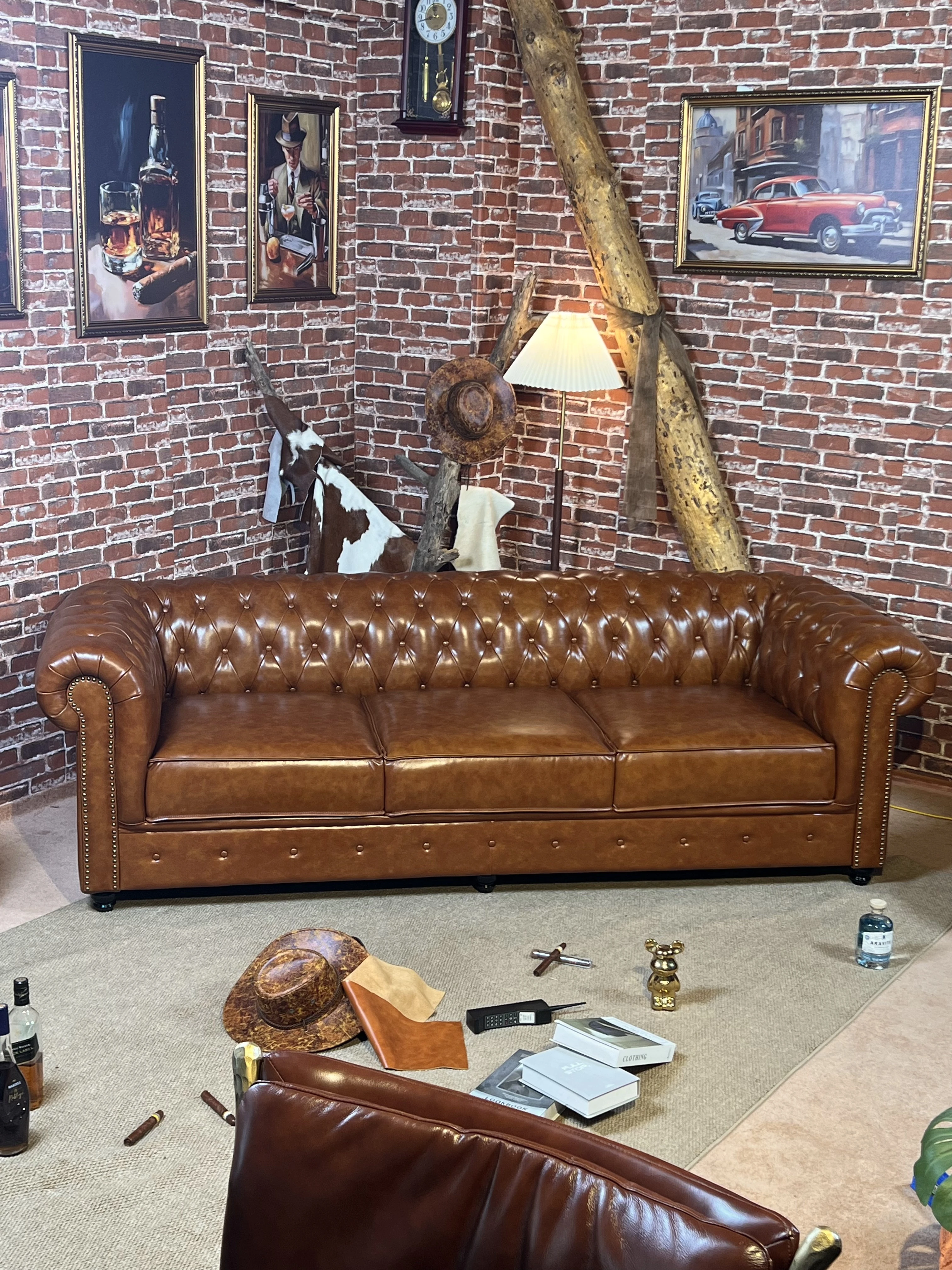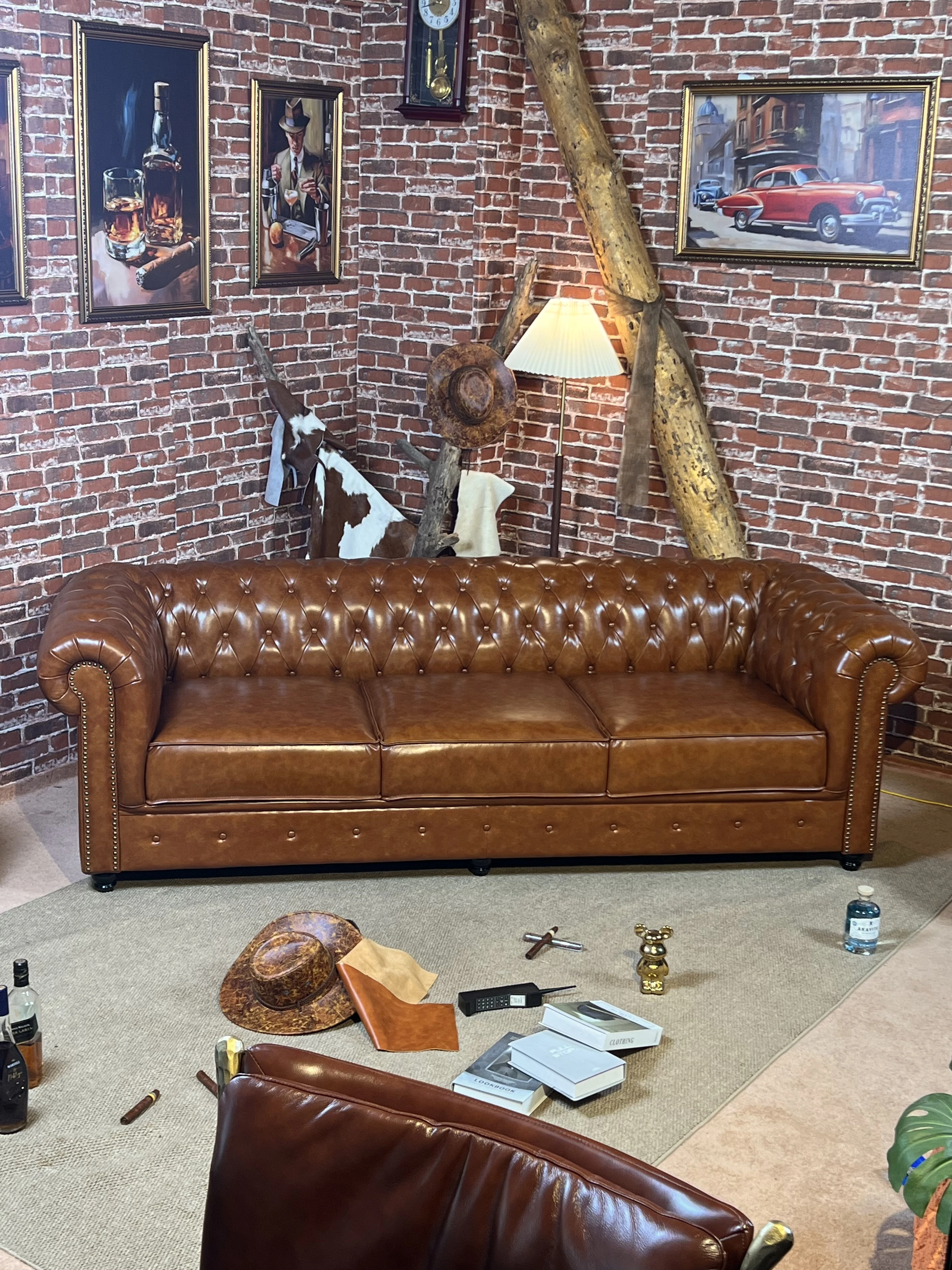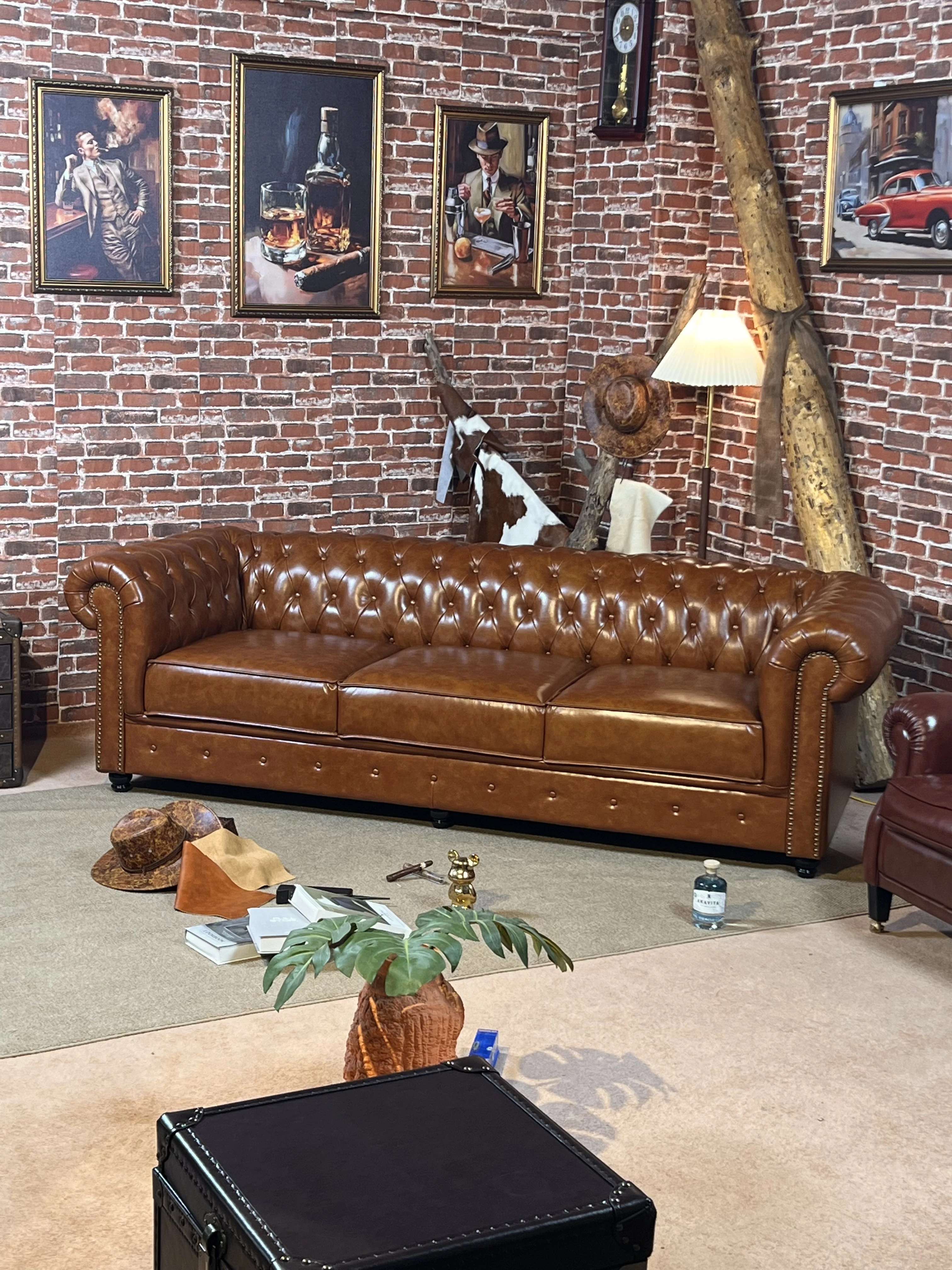 ヴィンテージ風本革ソファ 中小型住宅に最適な3人掛けアメリカンスタイル コンビネーションオイルワックス牛革 使用感抜群で、あなたのリビングをおしゃれに演出します!