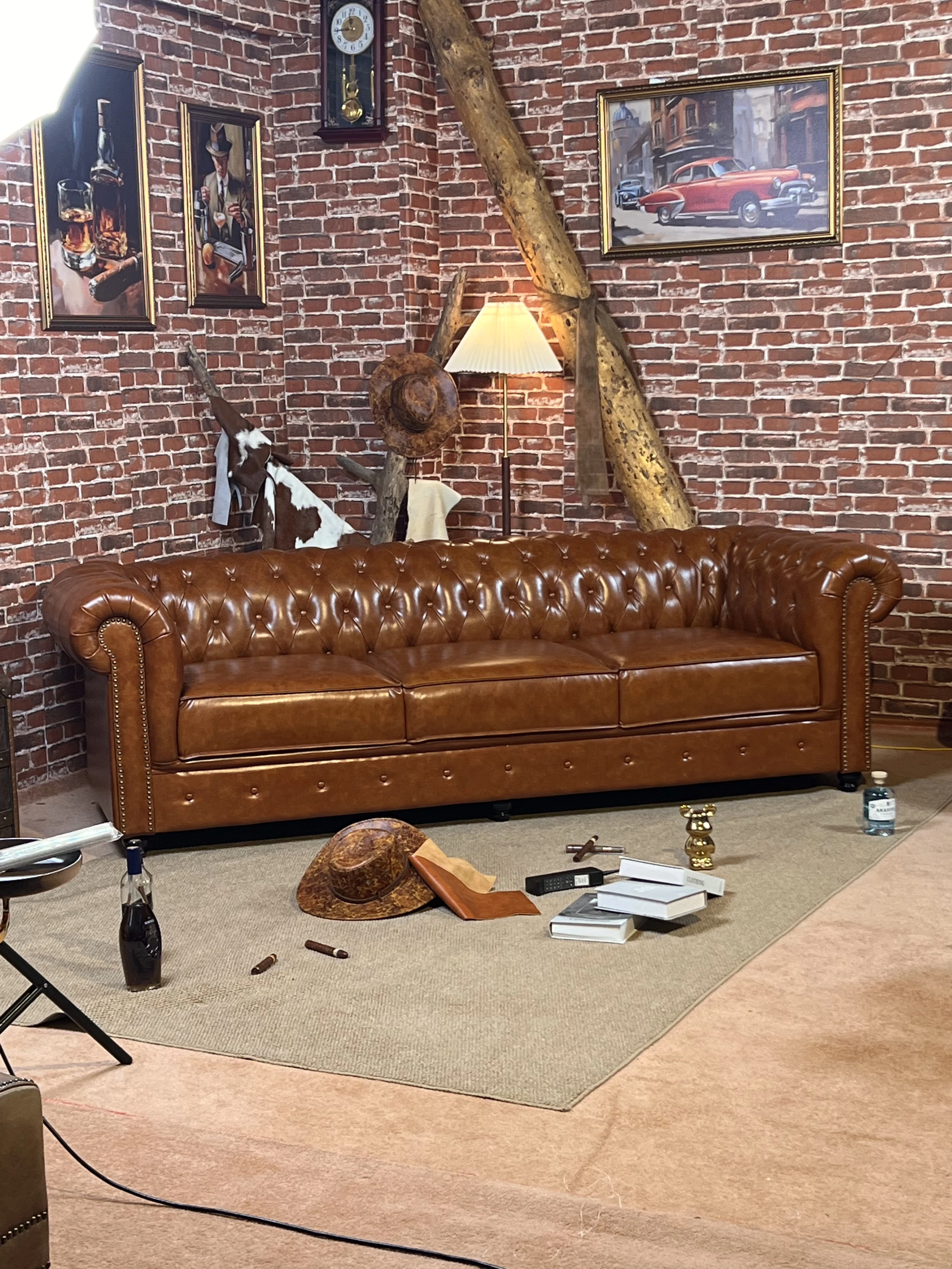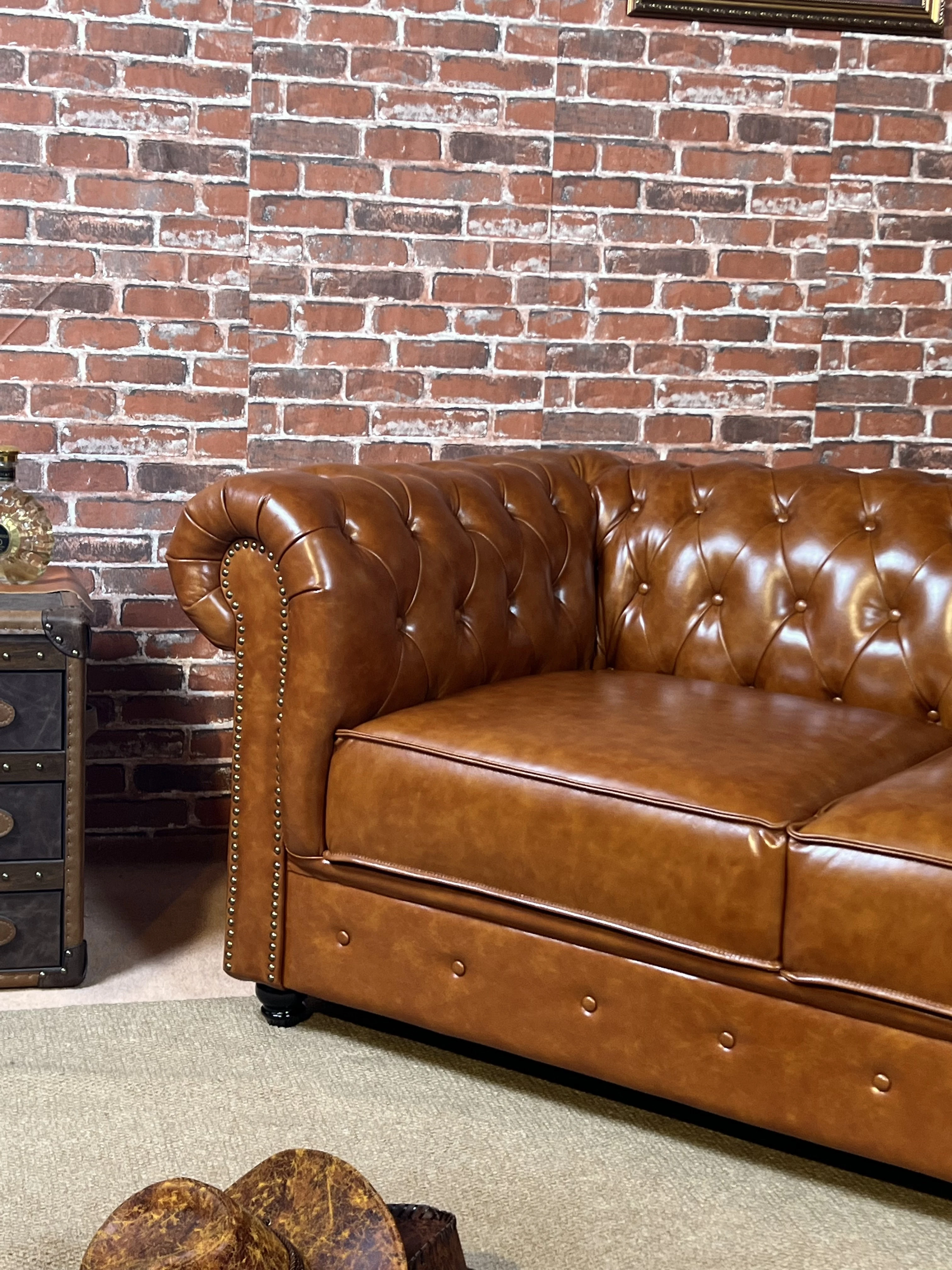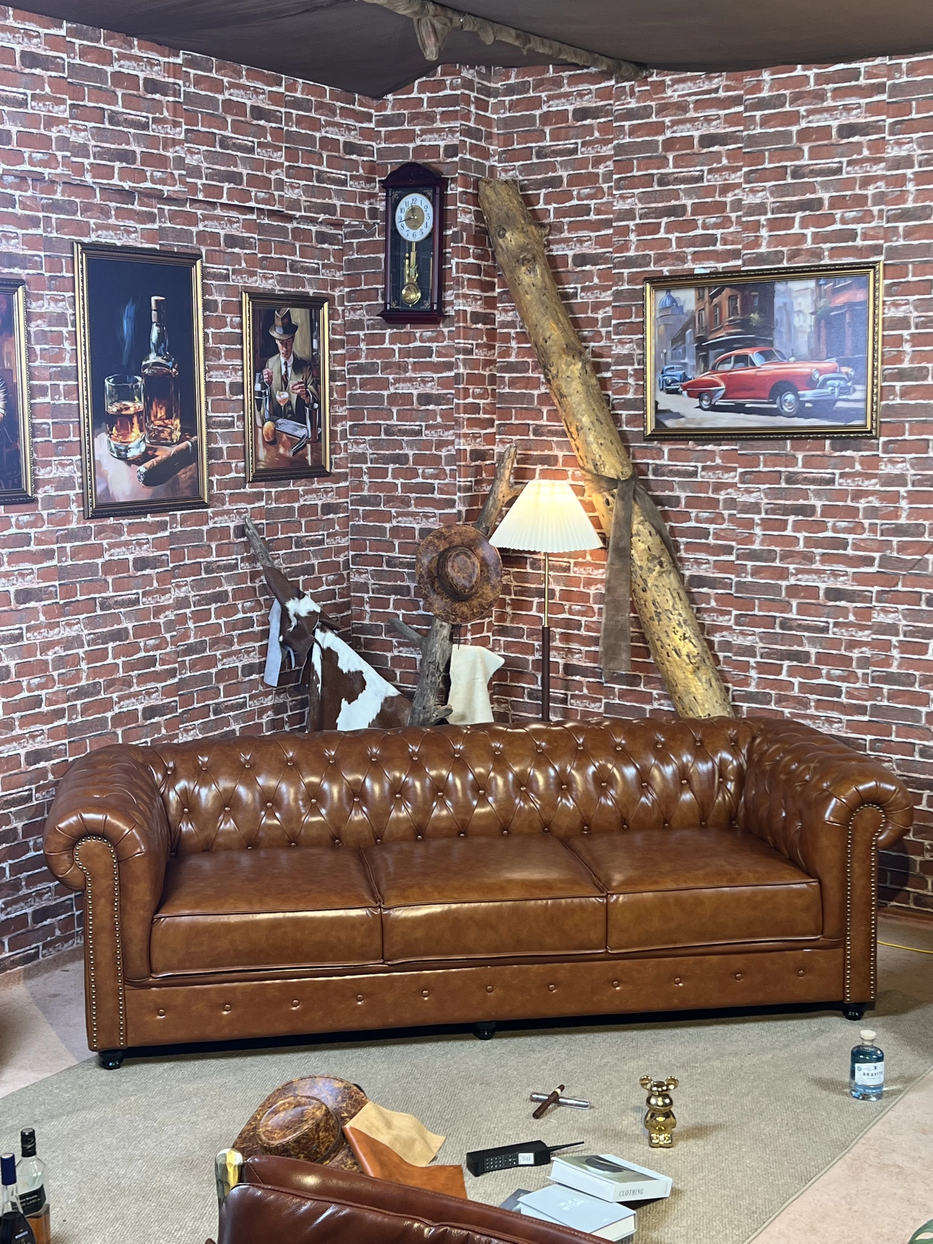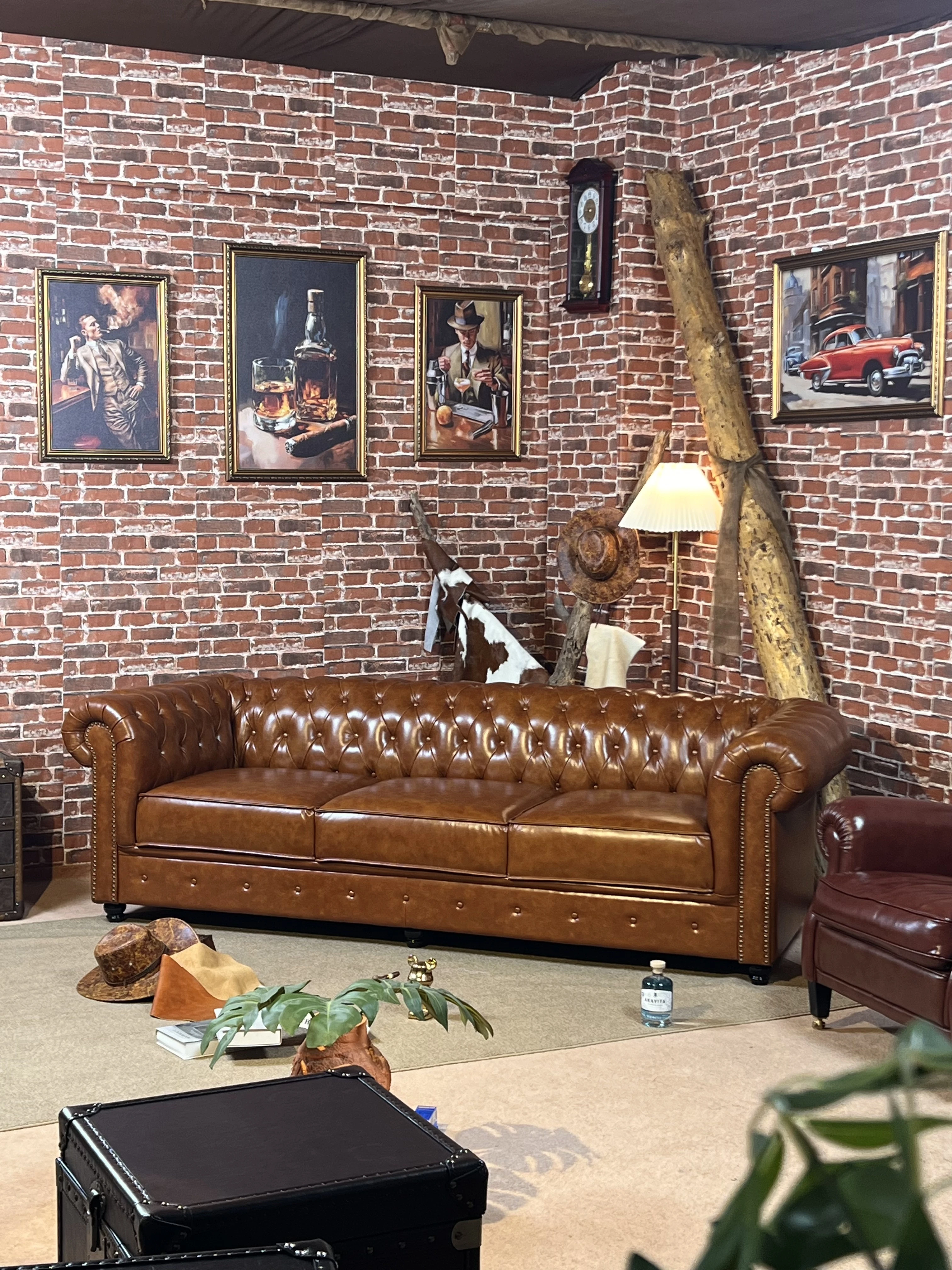 ヴィンテージ風本革ソファ 中小型住宅に最適な3人掛けアメリカンスタイル コンビネーションオイルワックス牛革 使用感抜群で、あなたのリビングをおしゃれに演出します!