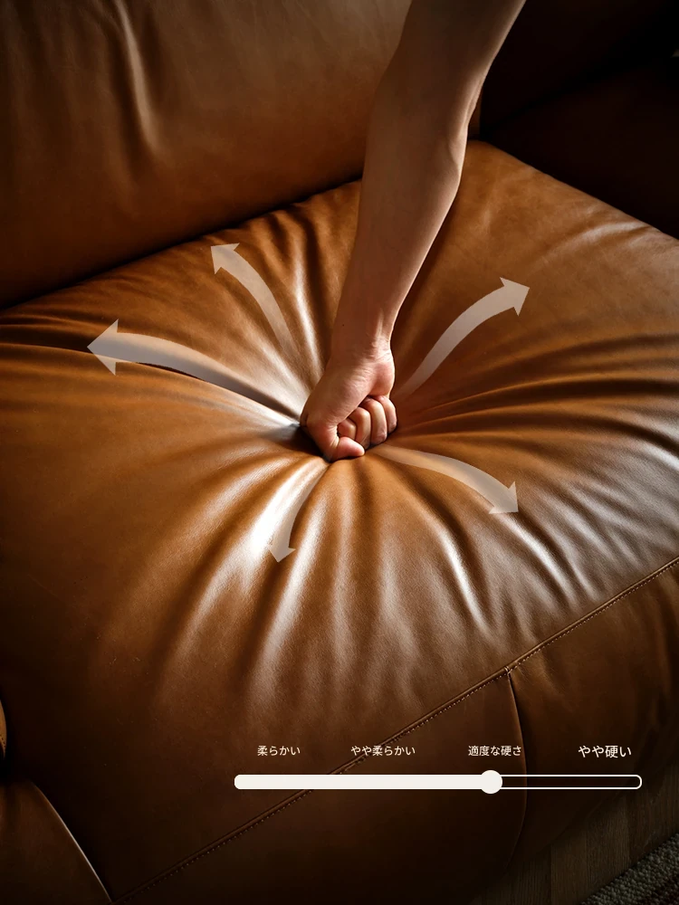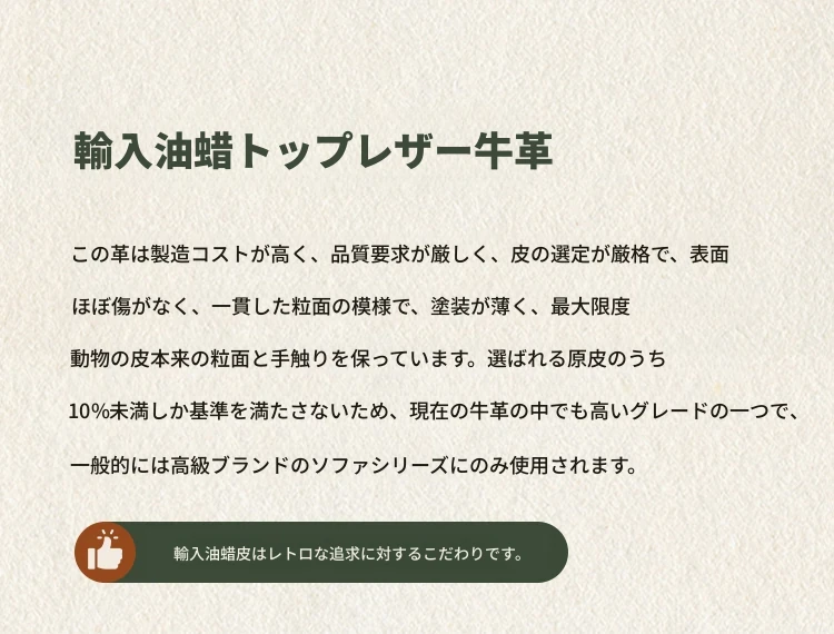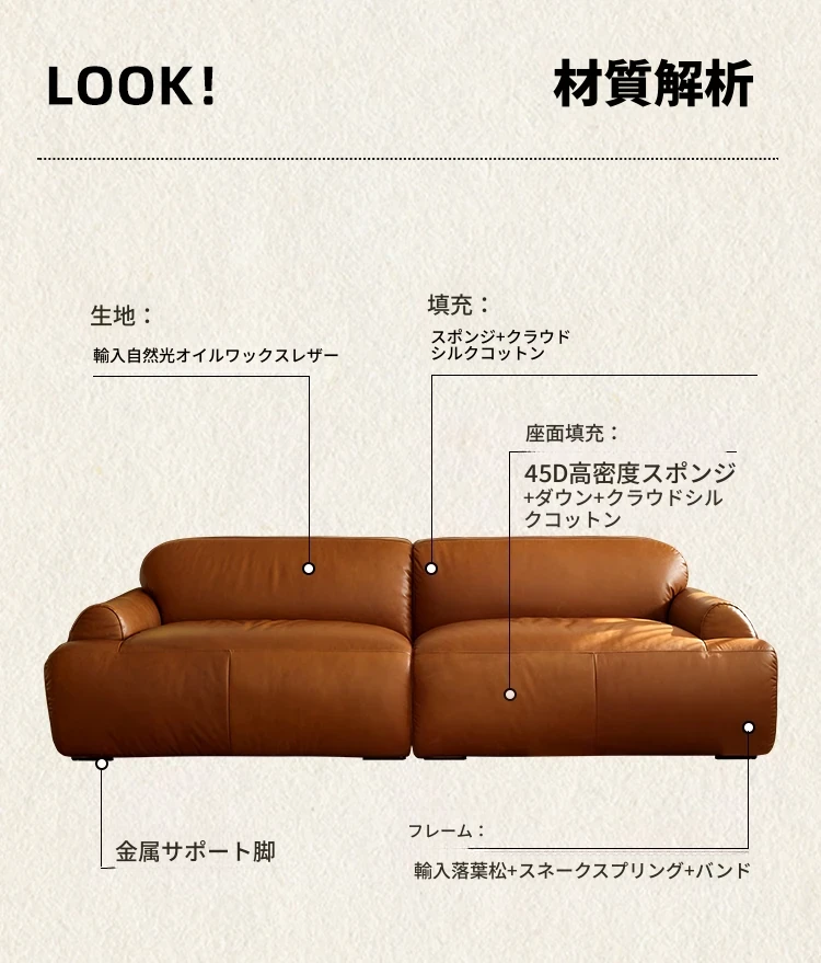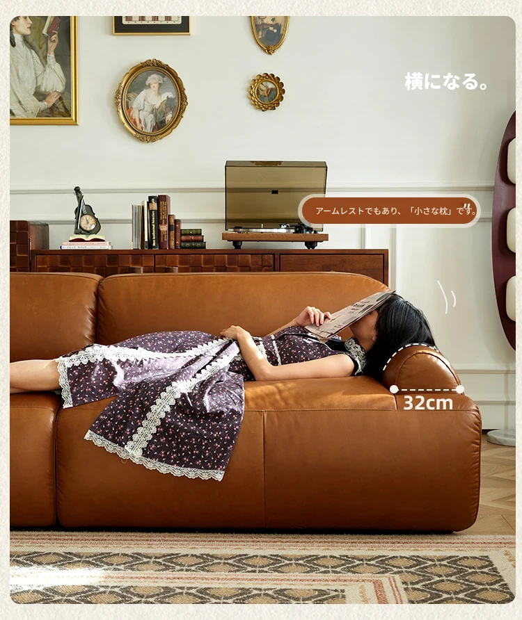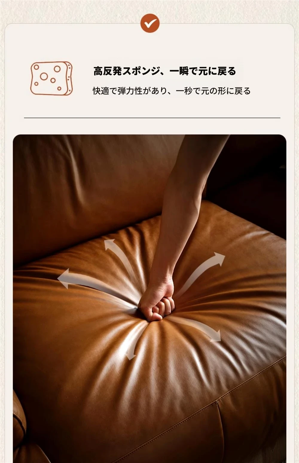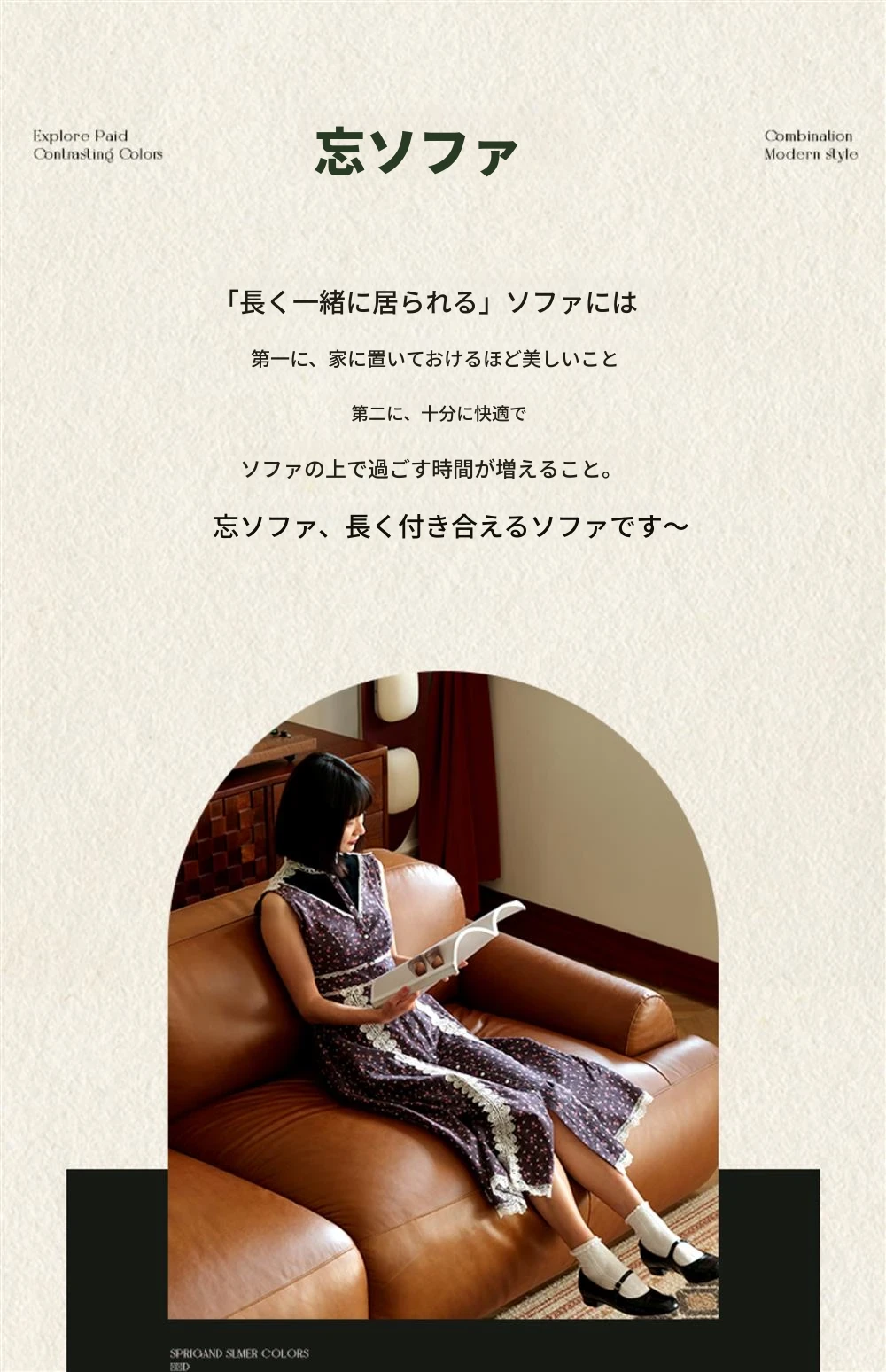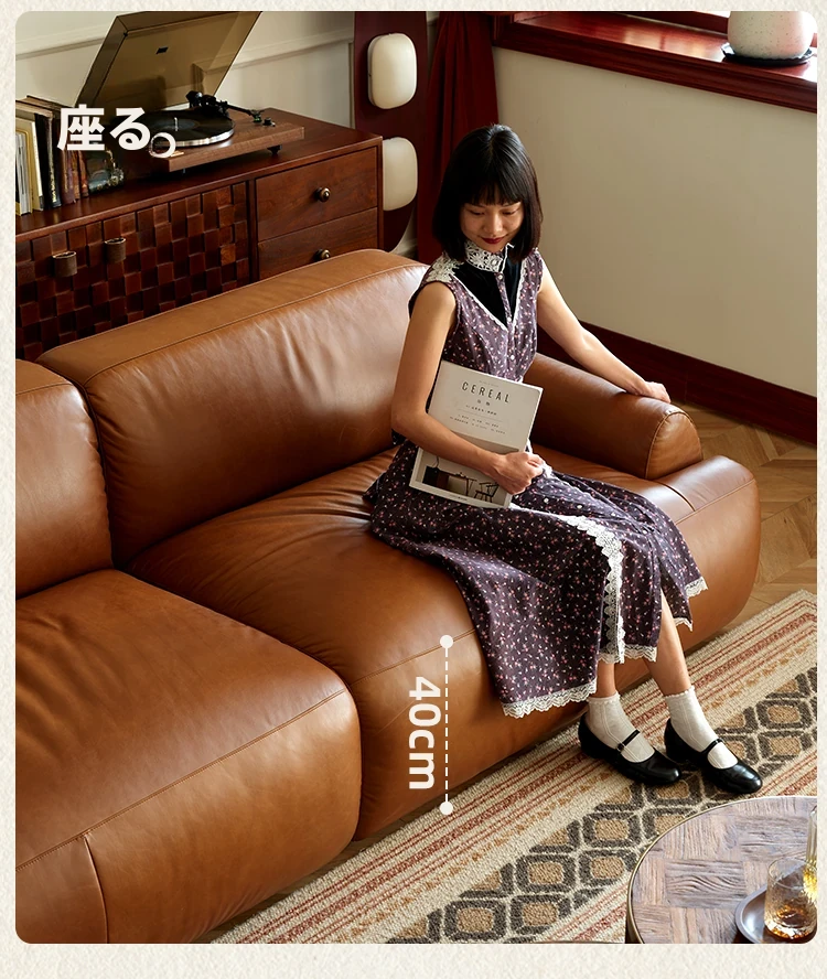ヴィンテージ風オールレザーソファー - レトロブラウンの豆腐ブロック、オイルワックスレザー使用。小型・中型リビングに最適なストレート型パンソファ。お部屋に温かみとスタイルをプラス!