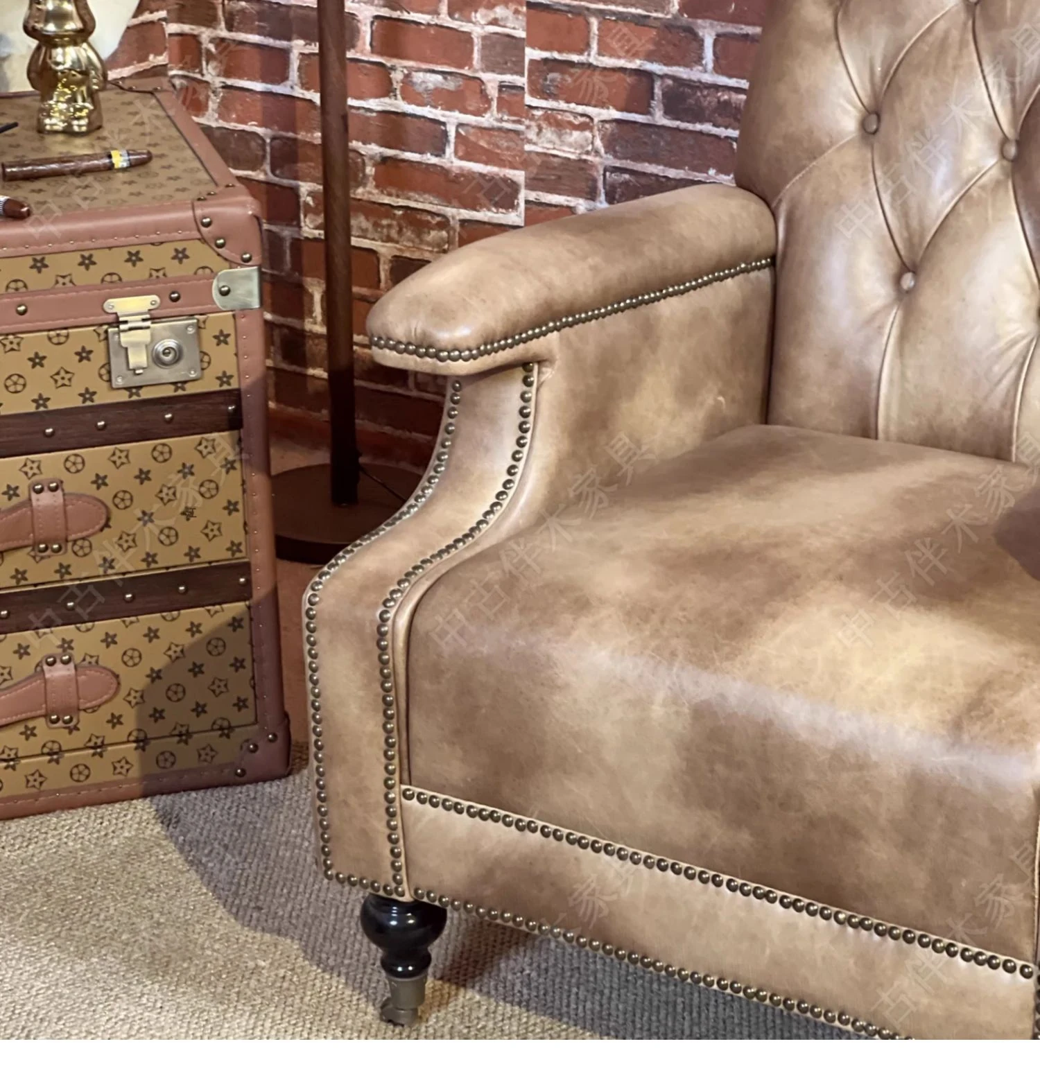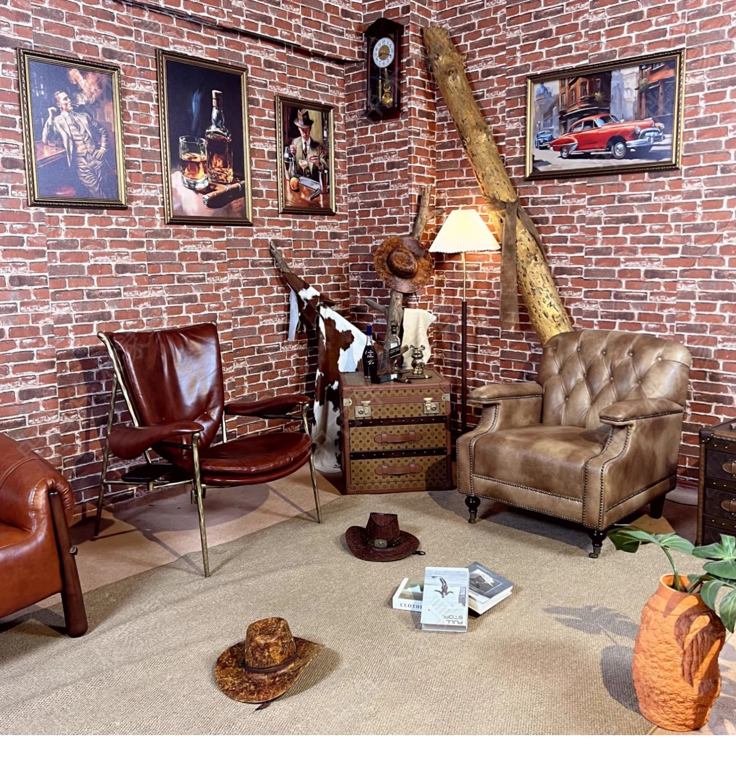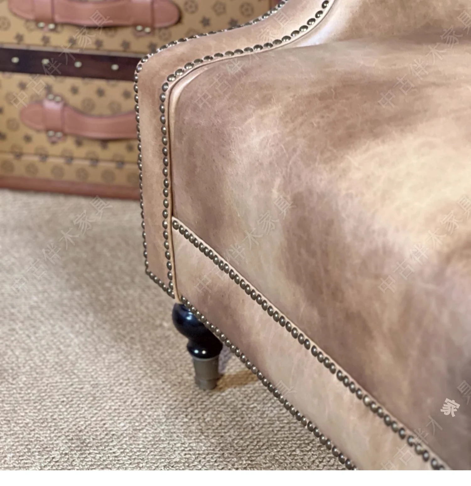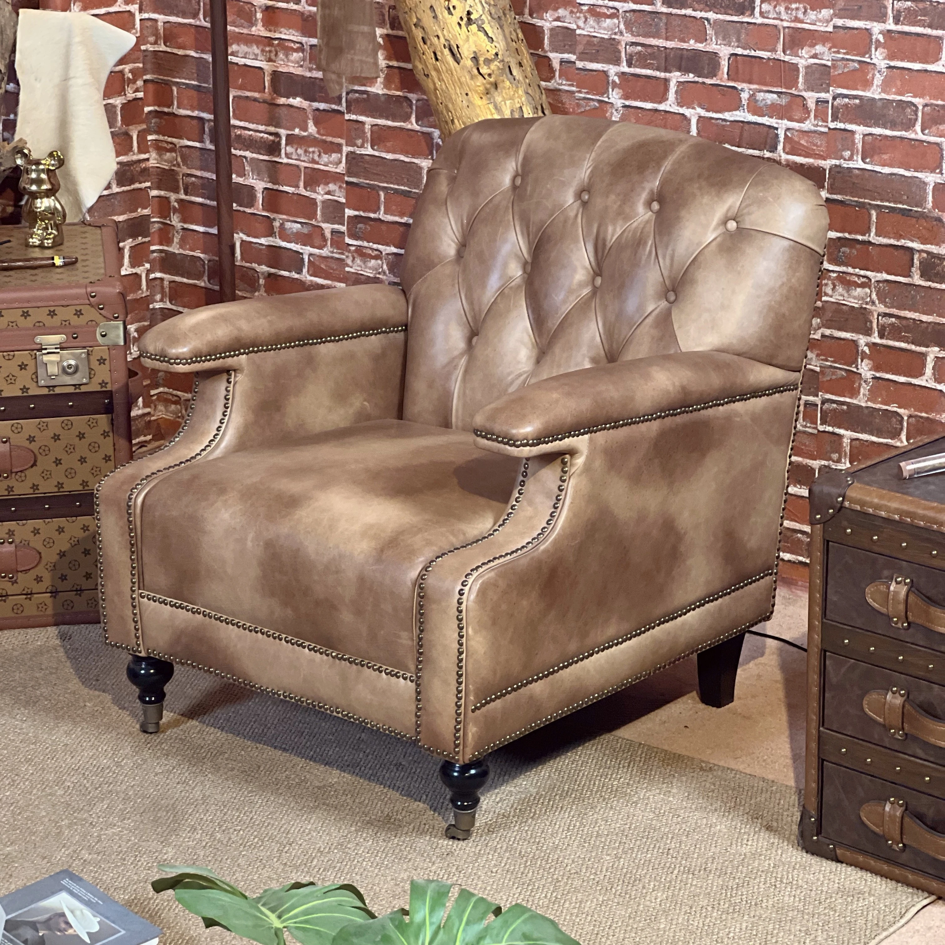 アメリカンヴィンテージの一人掛けソファチェア - 本革タッセルデザイン、リラックスできるレトロスタイル。リビングやバルコニー、民宿にも最適なシガーチェア。おしゃれで快適な空間を演出します!