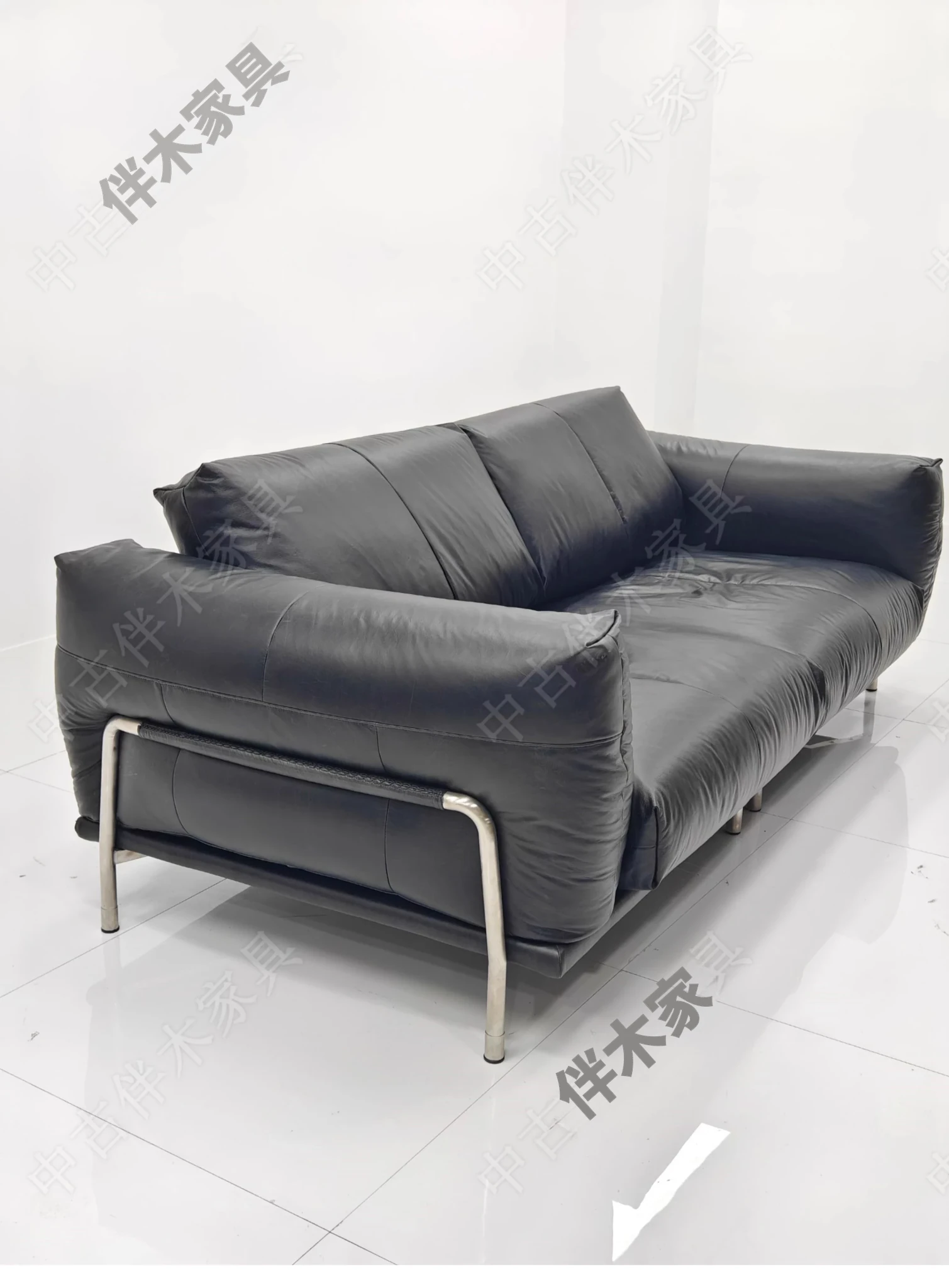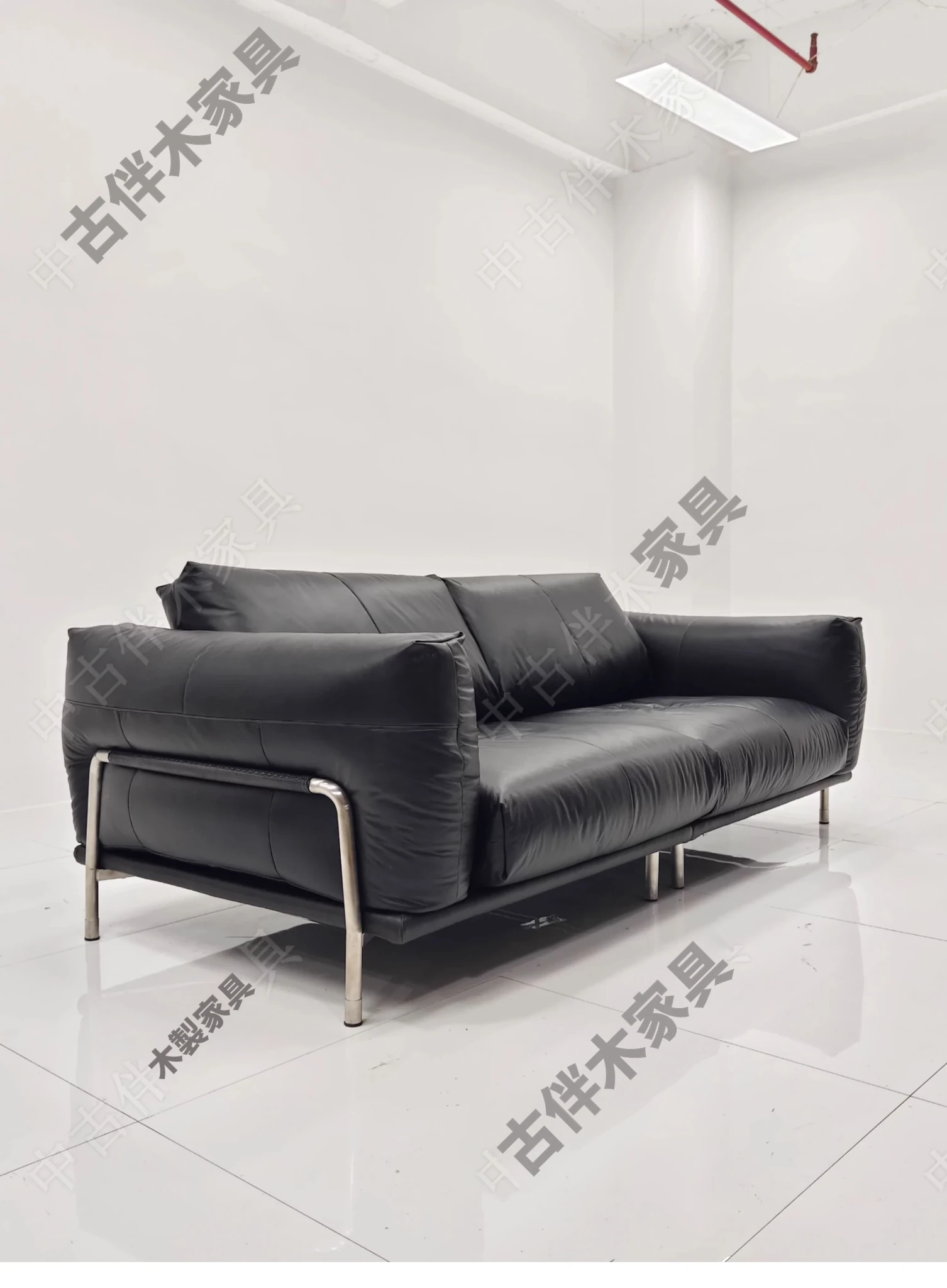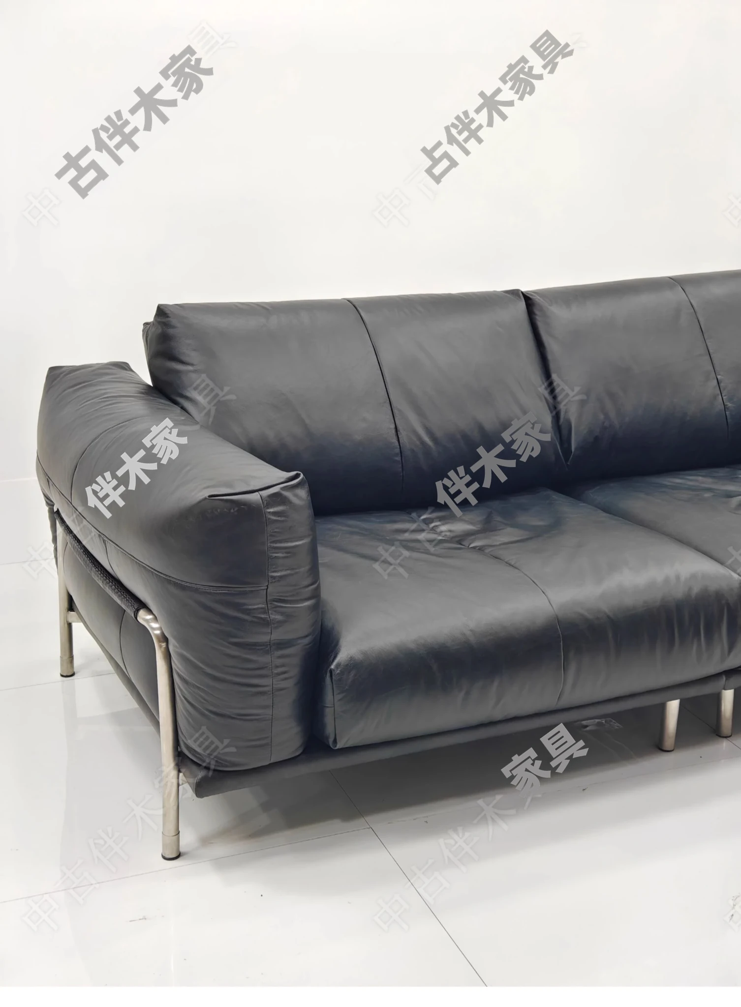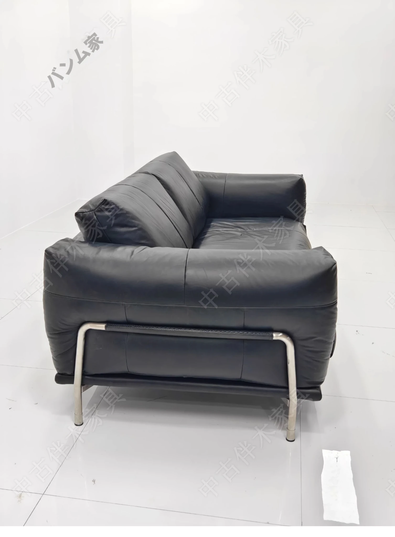 アンティーク風ハマーソファ ブラックアメリカンオイルワックスレザー リビング用フレンチステンレス製3人掛けビンテージストレートソファ