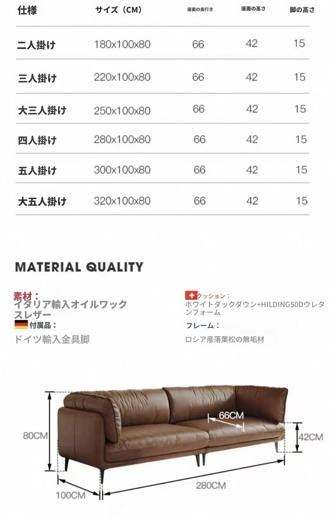 四人用/280*100*80cm/輸入接触面/オイルワックス牛革
