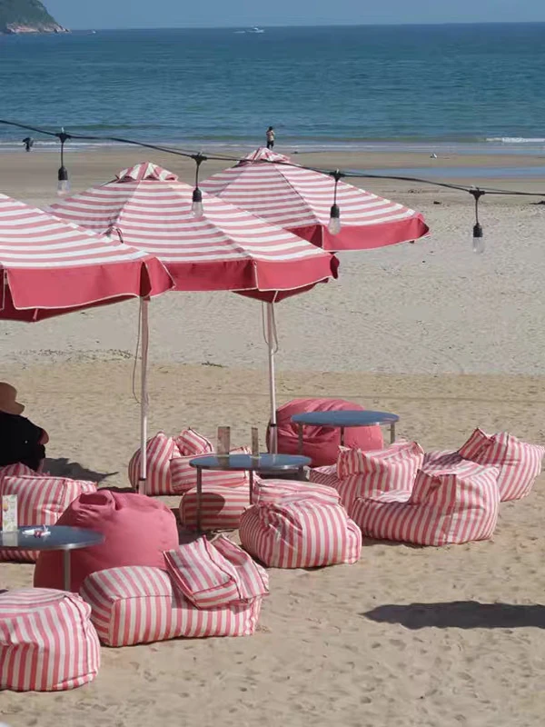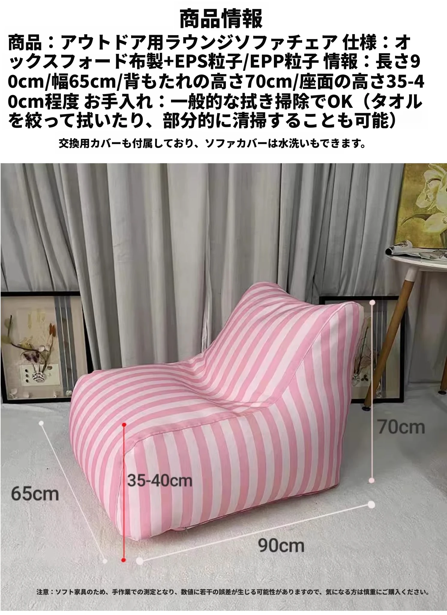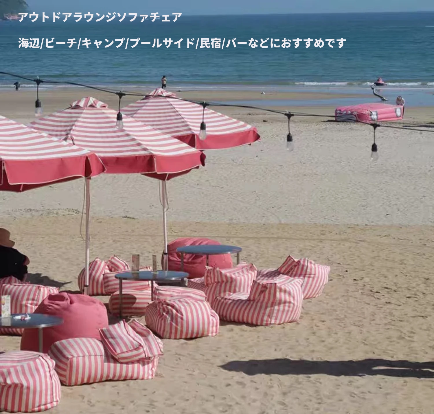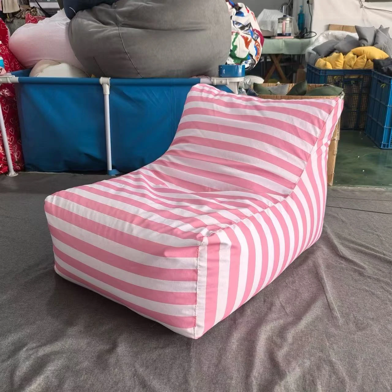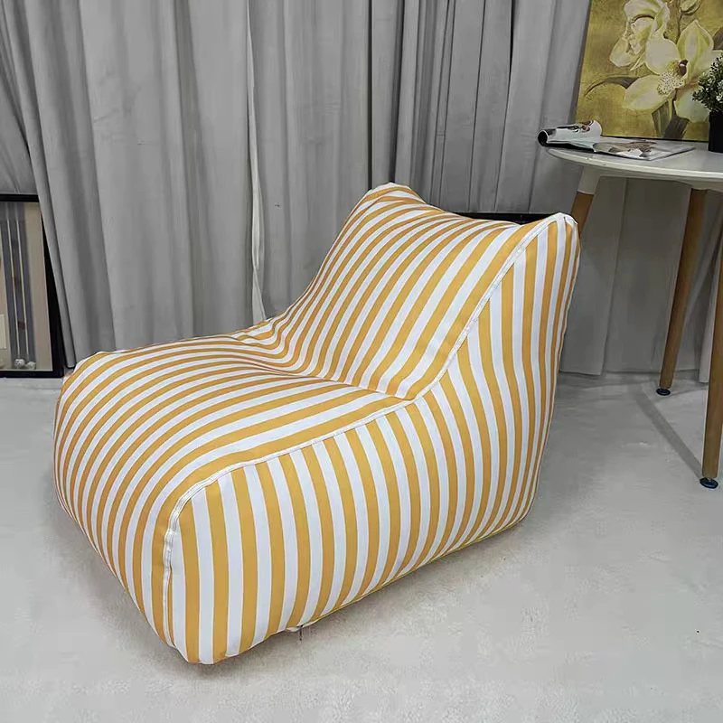 アウトドア防水ストライプラウンジソファ、洗えるビーンバッグ!ビーチやキャンプ、バーベキューにも最適なリラックスチェア。民宿やバーでも大活躍!快適でスタイリッシュなひとときをお楽しみください。