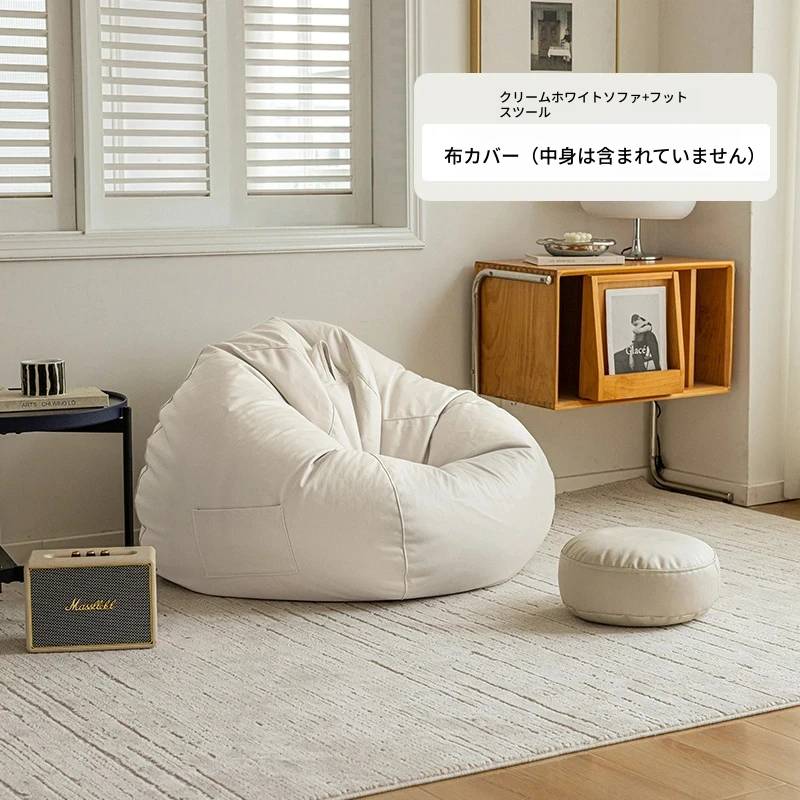 クリームホワイトソファ+フットスツールカバー(中身なし)