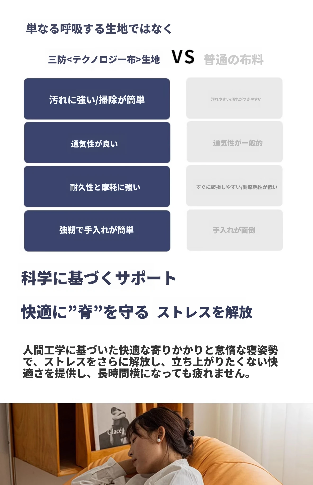 【テクノロジー布製・洗濯不要カバー】オフィスやリビングに最適!防水・シンプルデザインの楽々ソファカバー&ビーンバッグカバーで、快適な空間を演出。